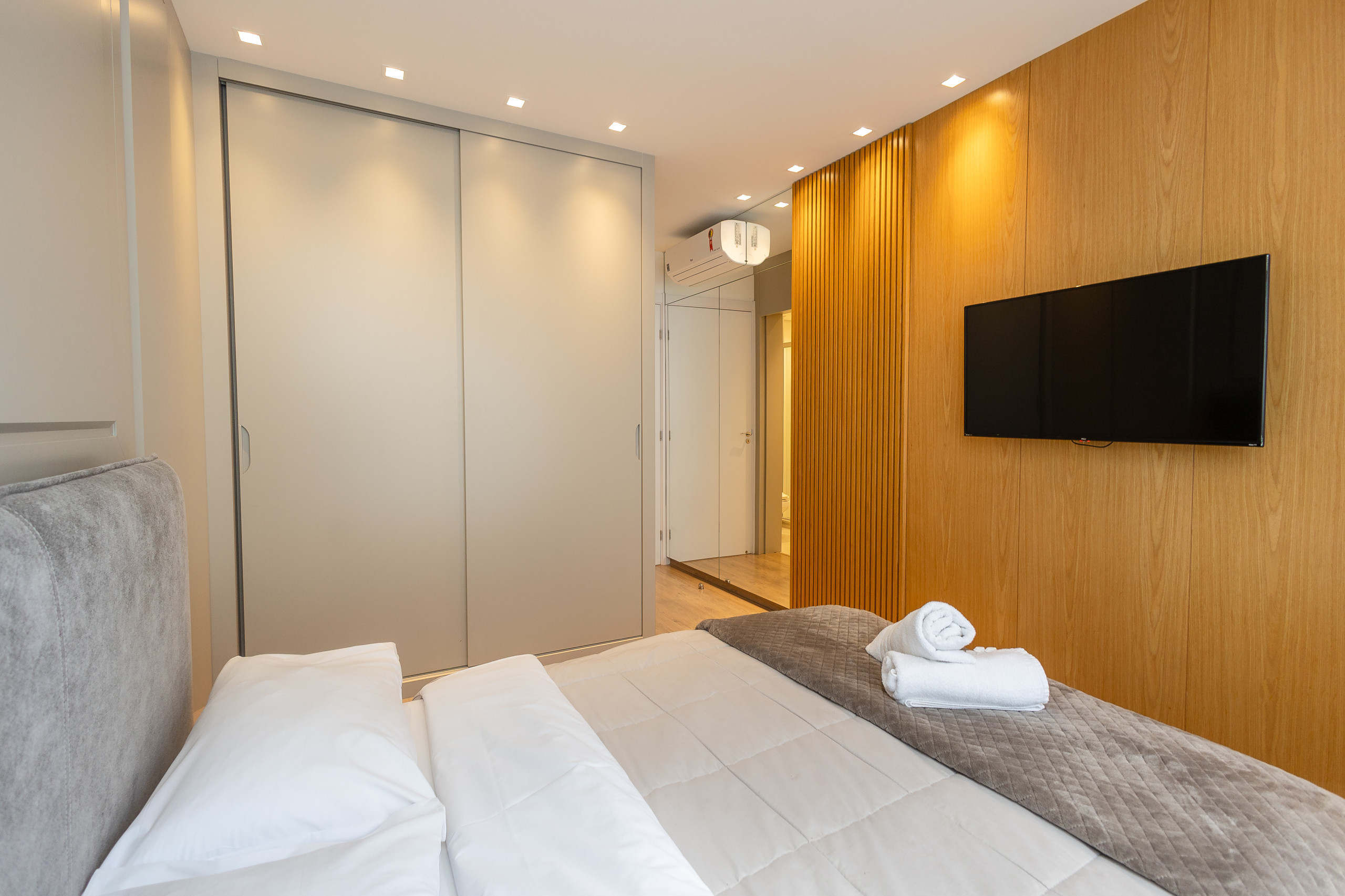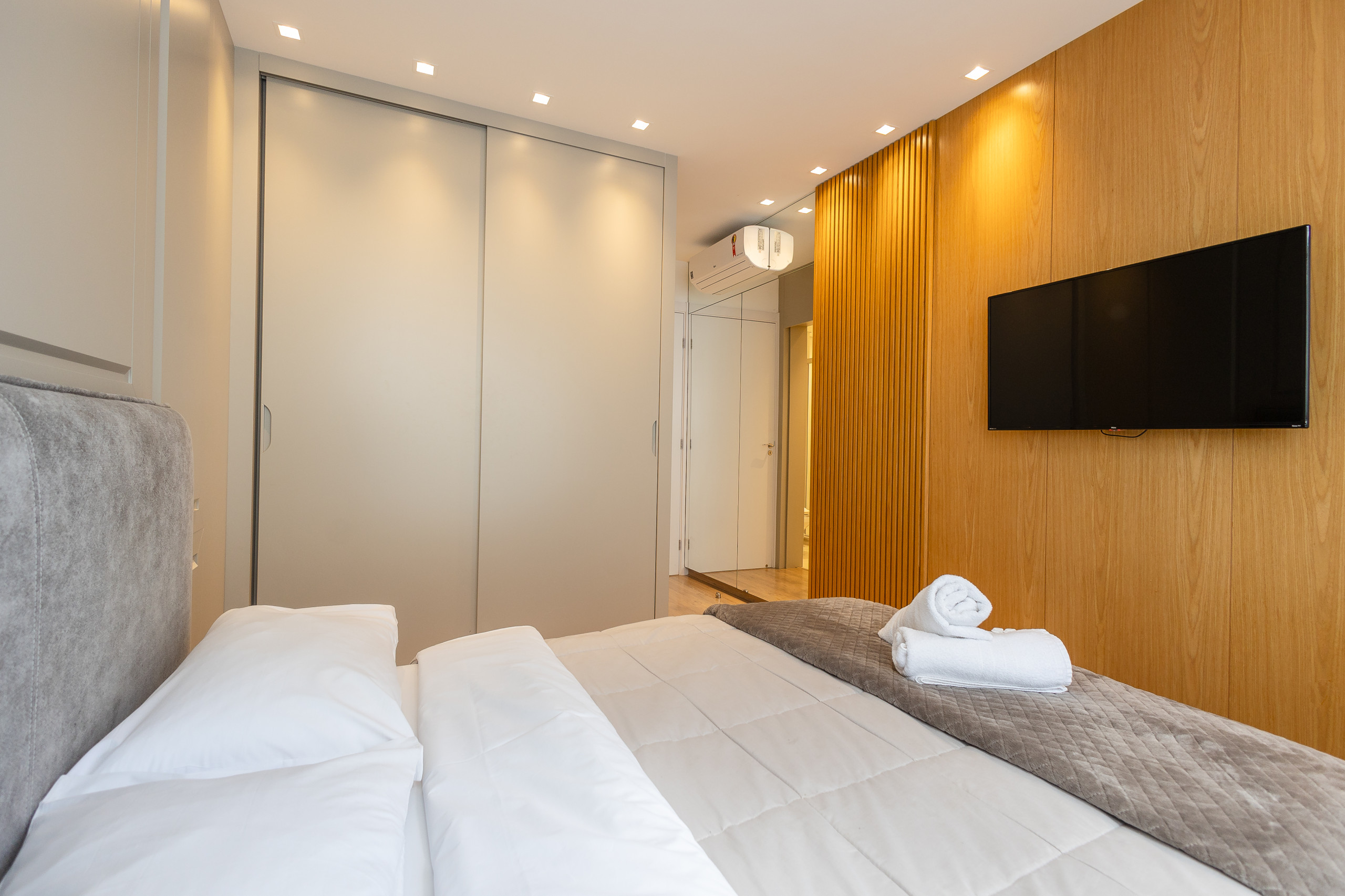 Modern apartment, decorated with great taste and care, features a living room with 2 integrated environments and a fireplace, complete kitchen with dishwasher, 2 suites, powder room. All environments are equipped with smart TV and hot/cold air conditioning. One garage space. Very beautiful and comfortable property!