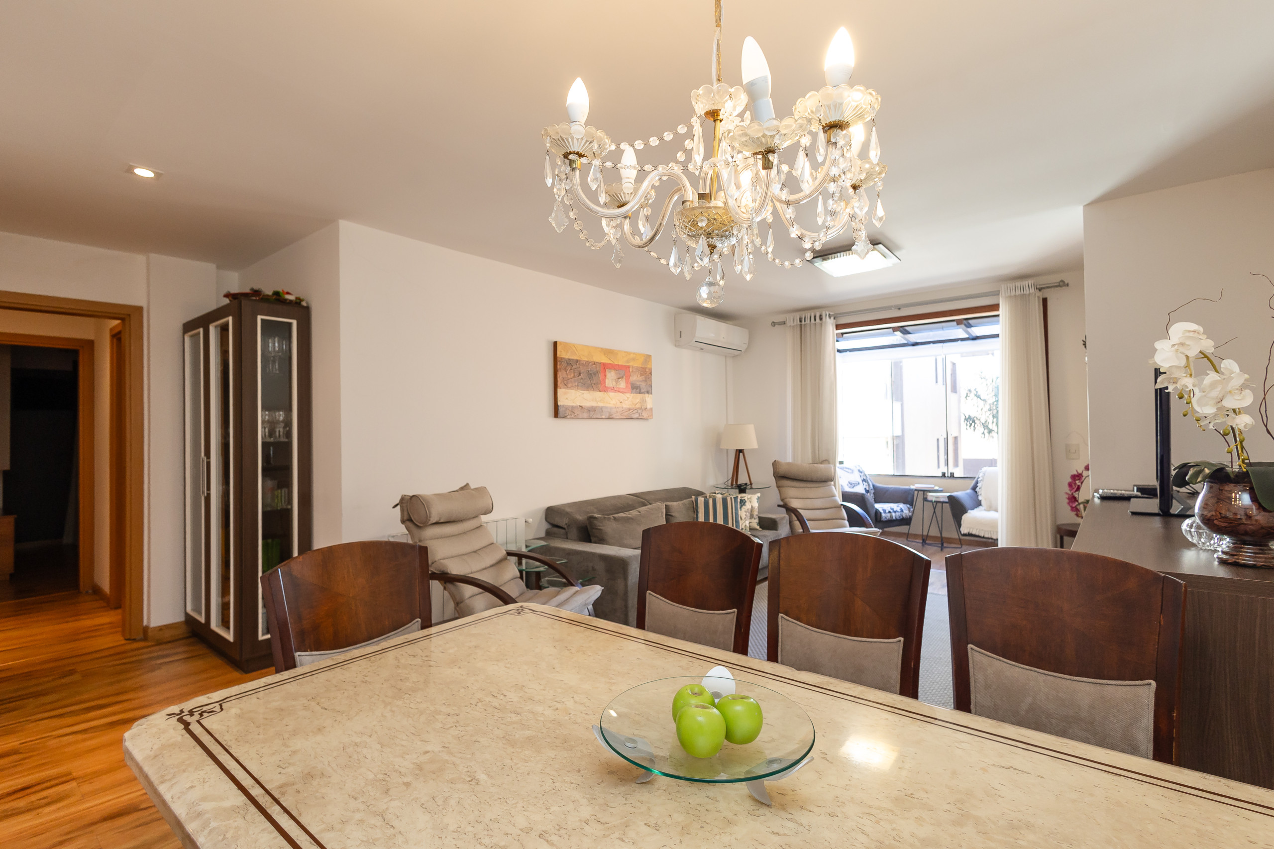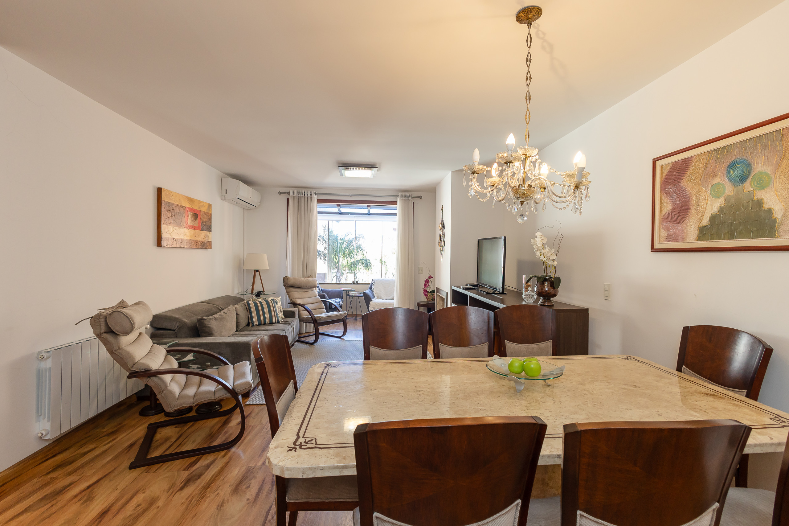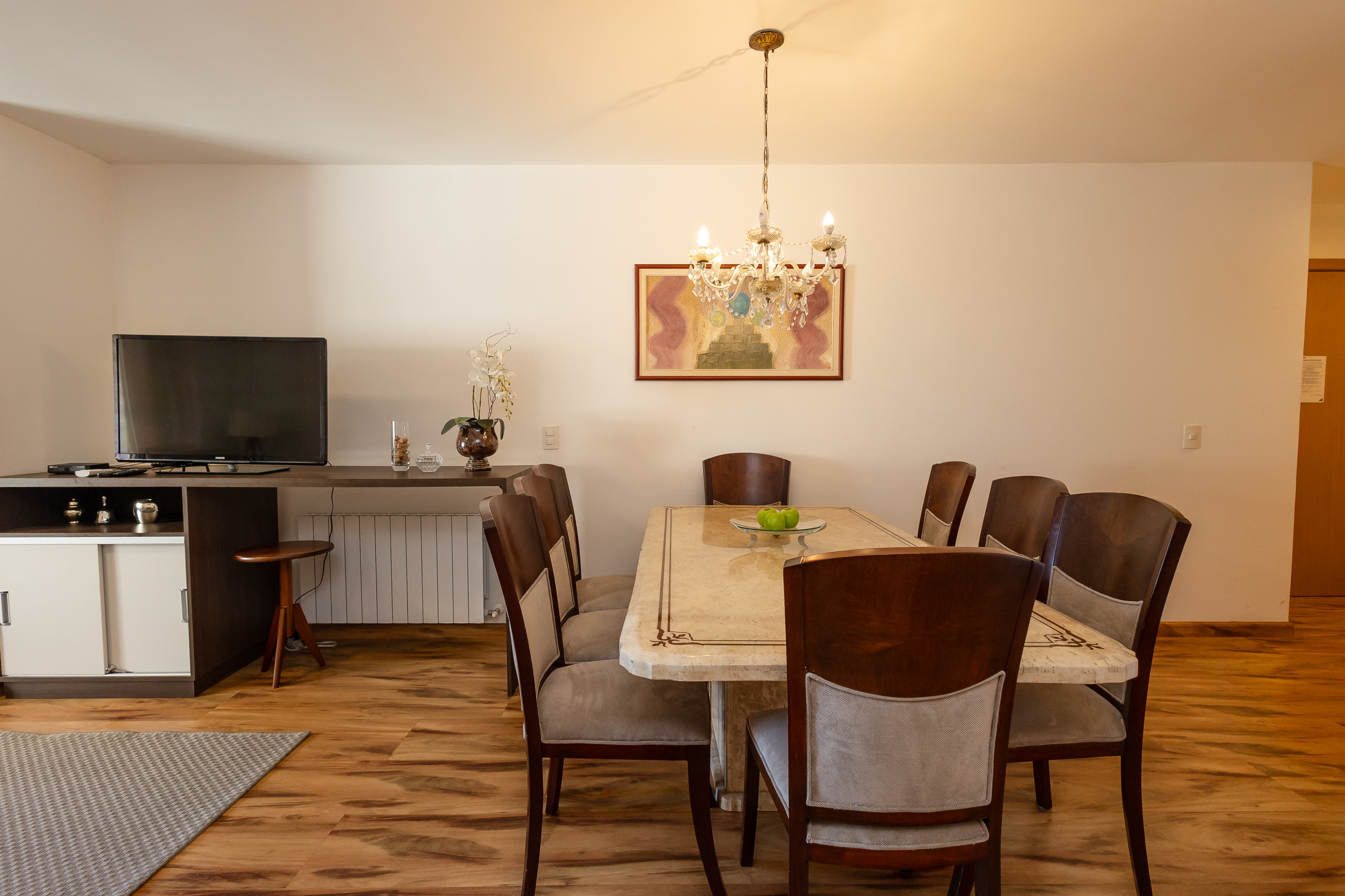 It is 110m², with spacious and bright rooms, with two suites with split C/H, living room (with barbecue, fireplace, Split C/H, television) equipped kitchen, washroom, laundry and 3 balconies. The apartment also has high-speed Wi-Fi, hot water at all points and other household appliances.