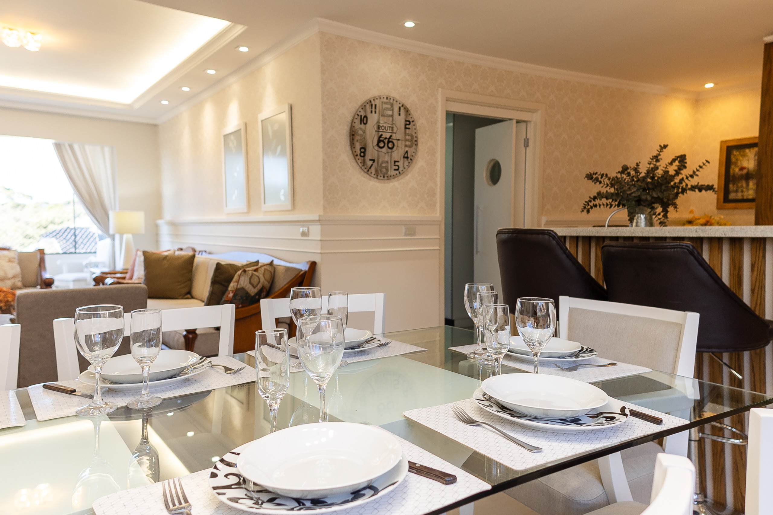 There are 3 suites (two with balcony) prepared with bedding for your stay. It also features a spacious integrated living and dining area with a bar, gourmet barbecue, hot/cold split, fireplace and social bathroom. It has an intimate dining area, kitchen and laundry, all ready for you.