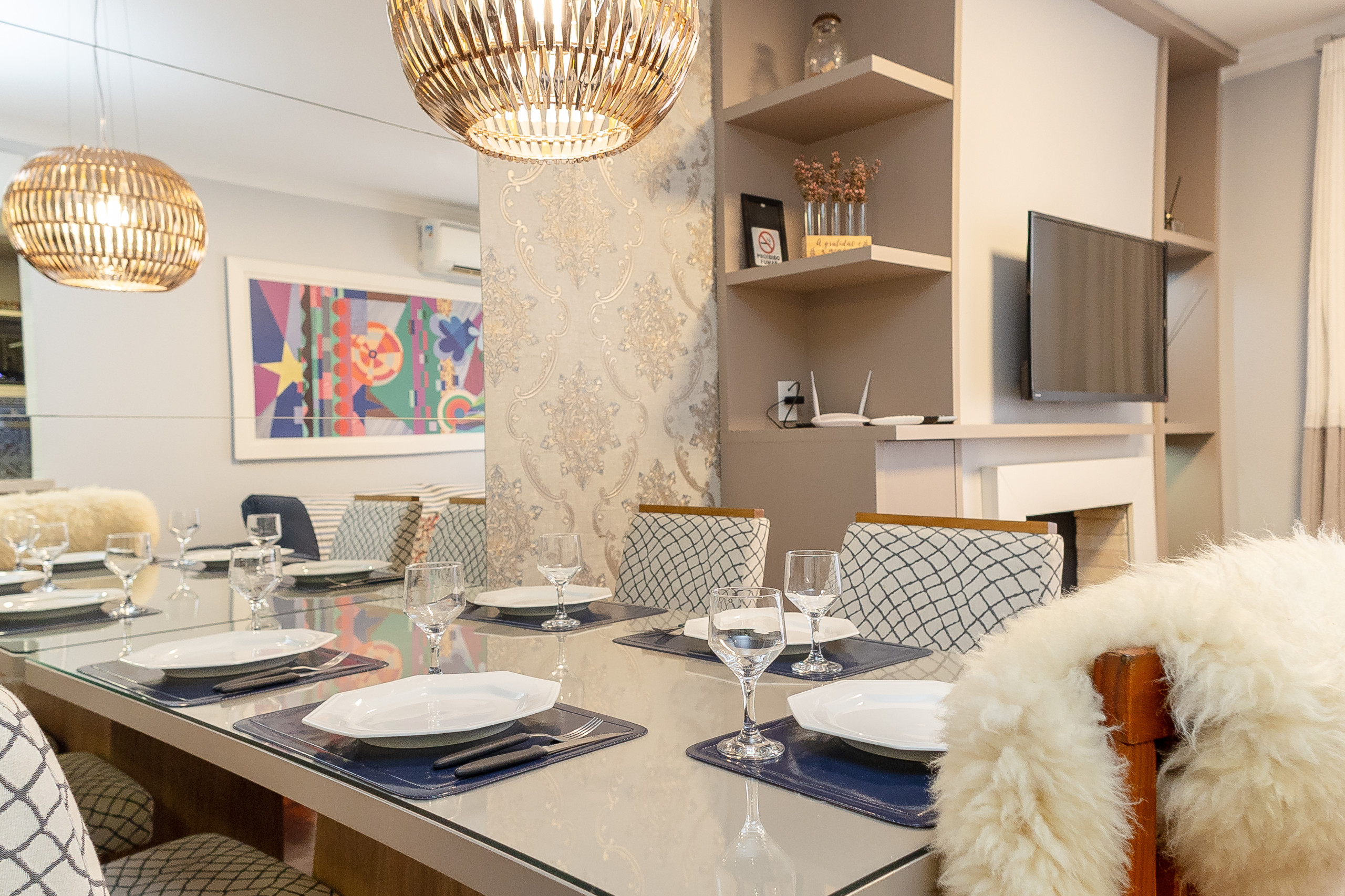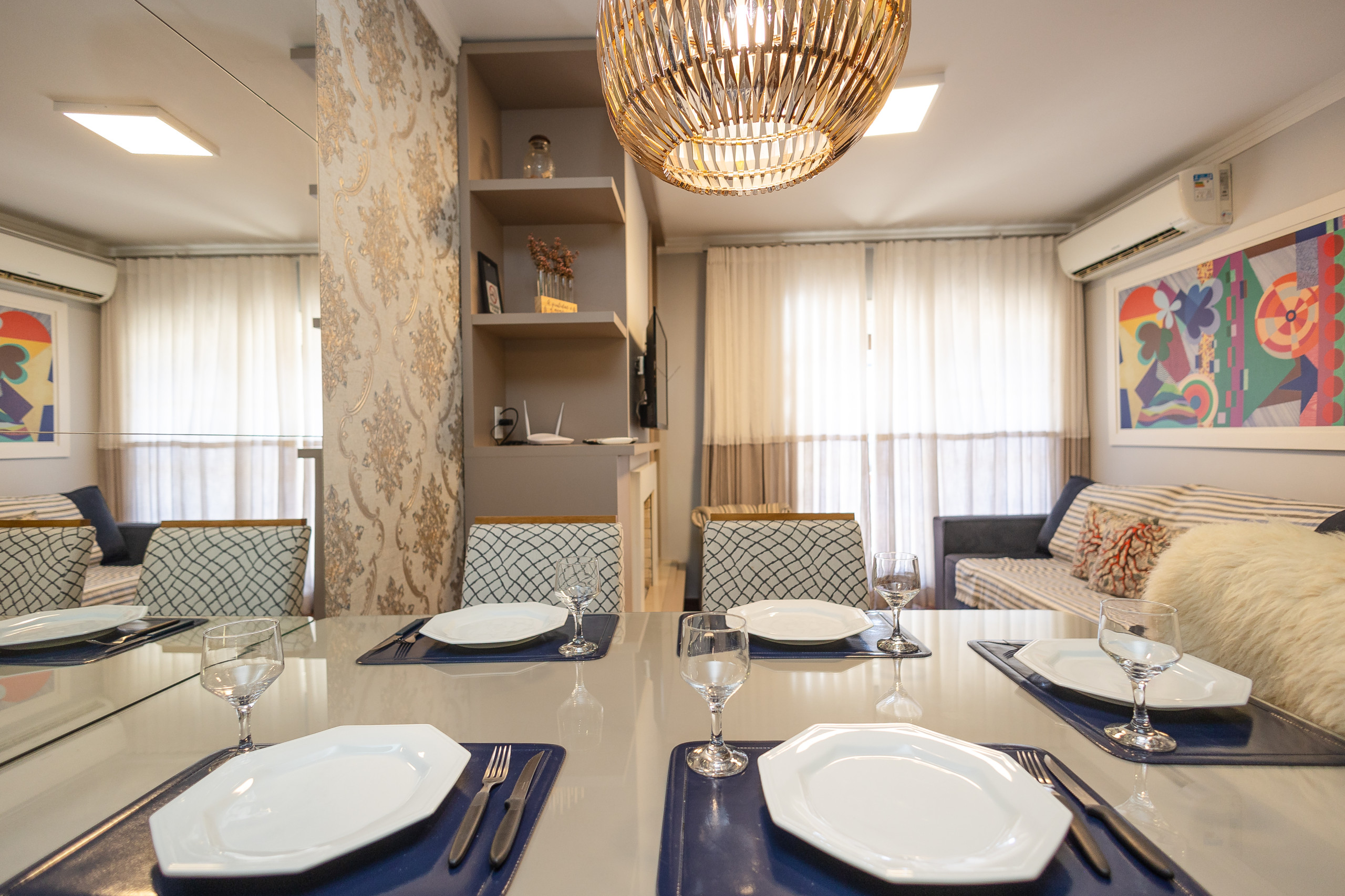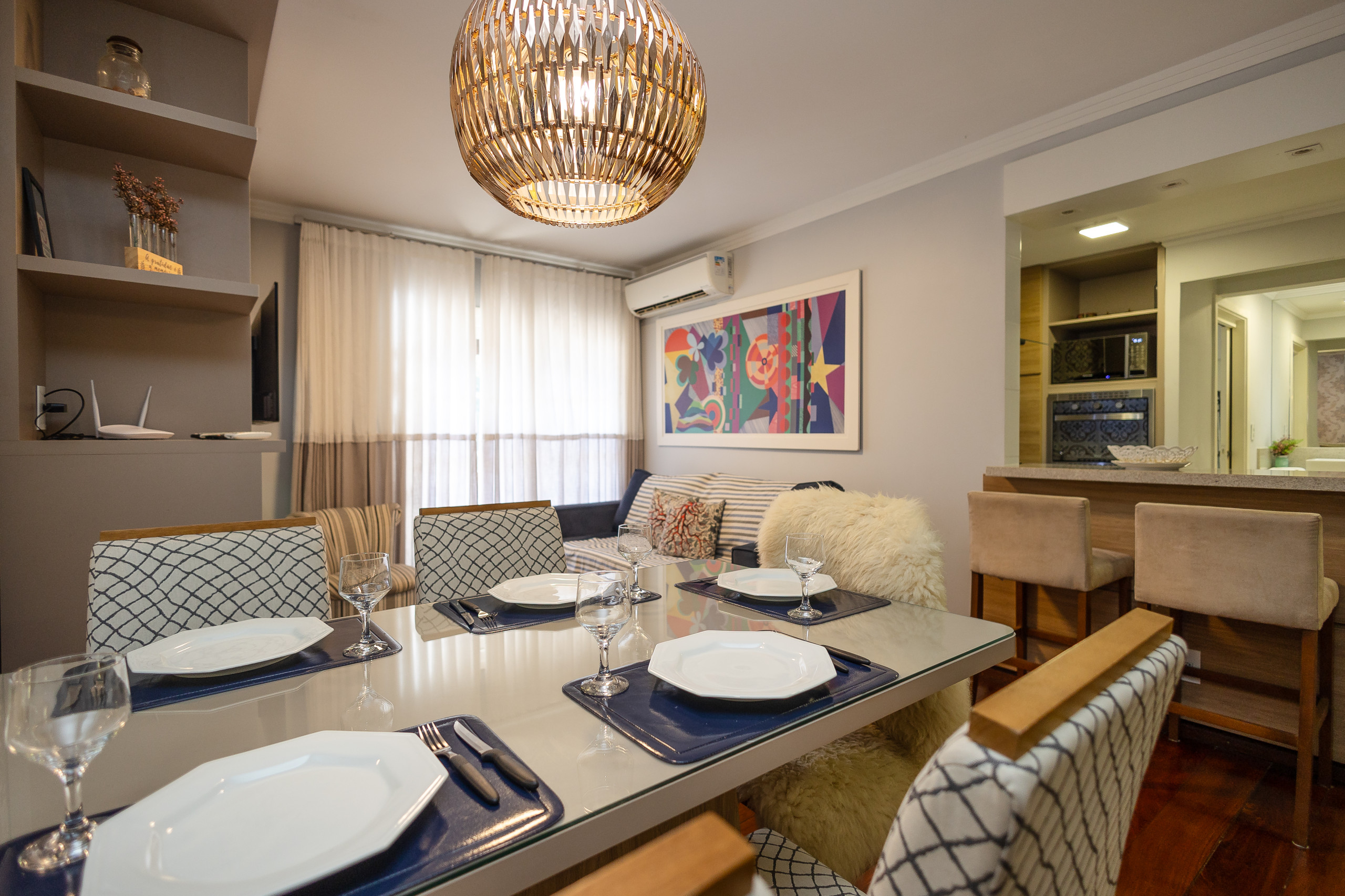 The apartment is a duplex and features 3 bedrooms, 2 complete social bathrooms, living room with 2 environments with balcony and ecological fireplace, fully equipped American kitchen, washer and dryer, high-speed internet, one parking space. The living room and two bedrooms have hot/cold air conditioning and we will provide a complete linen set for your stay.