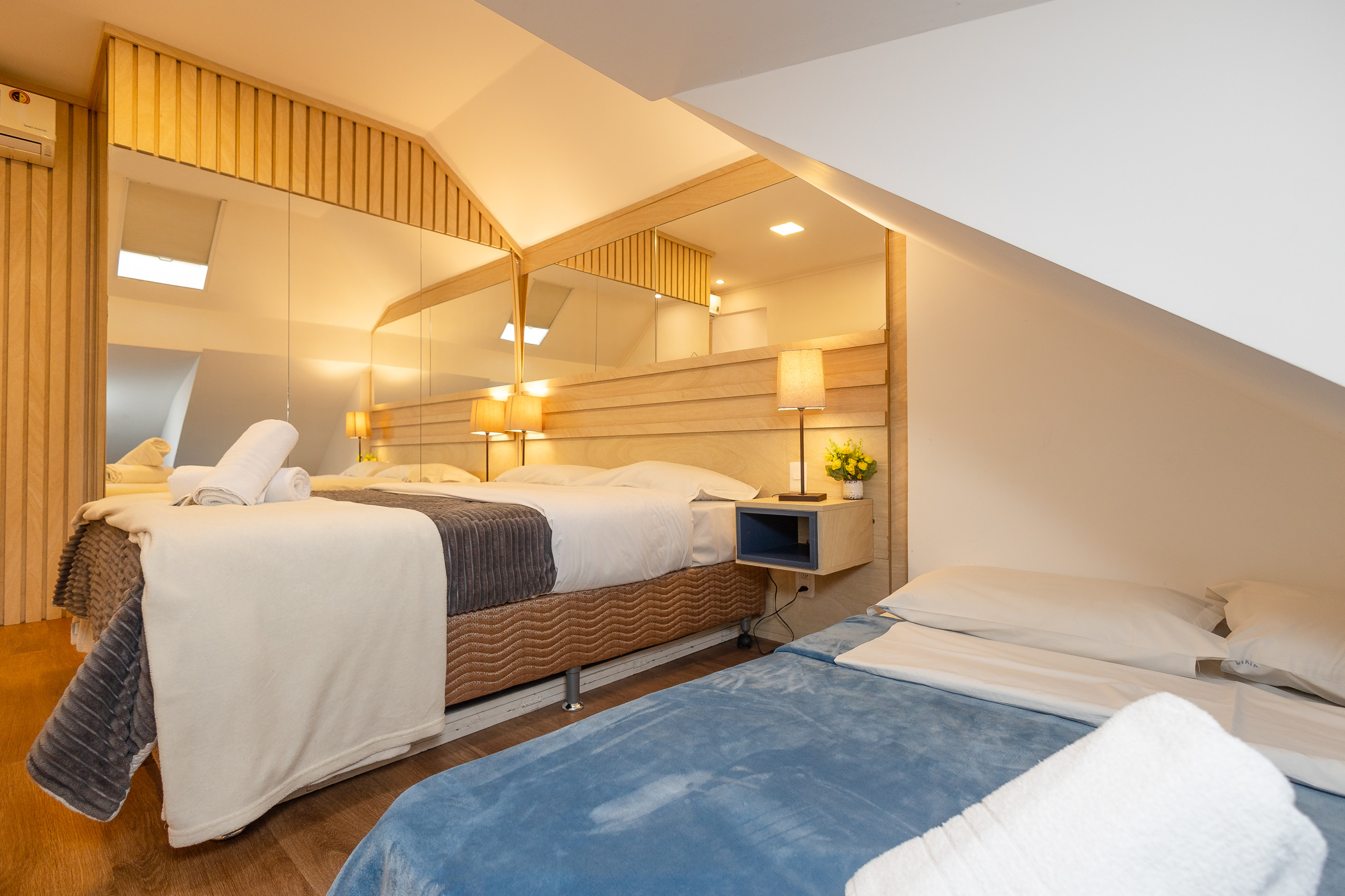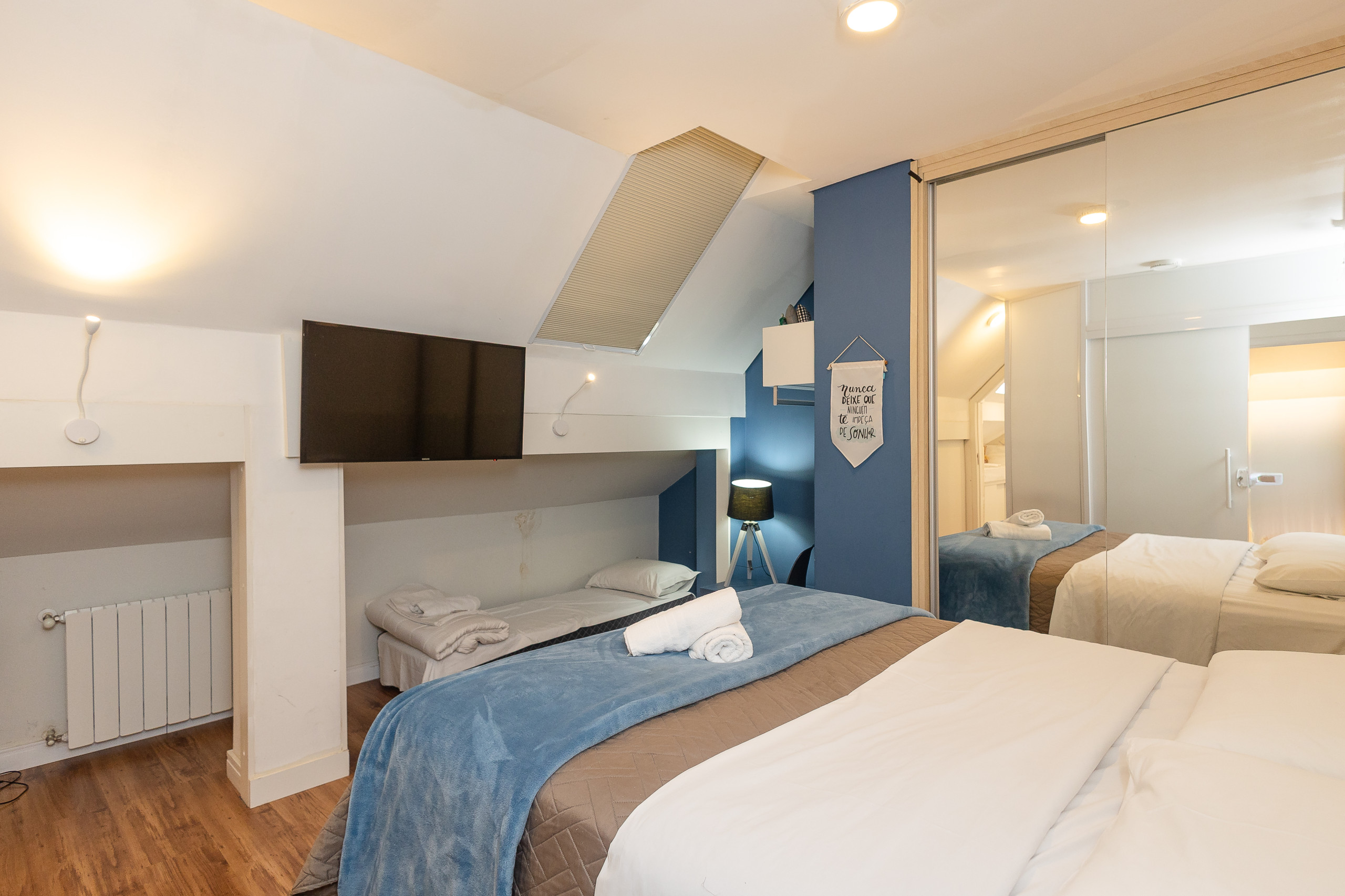 With 140m² of built area, this space comfortably accommodates up to 12 people, offering 4 rooms equipped with 9 beds - with 4 double beds and 5 auxiliary single beds. The distribution of spaces ensures privacy and comfort for all guests.