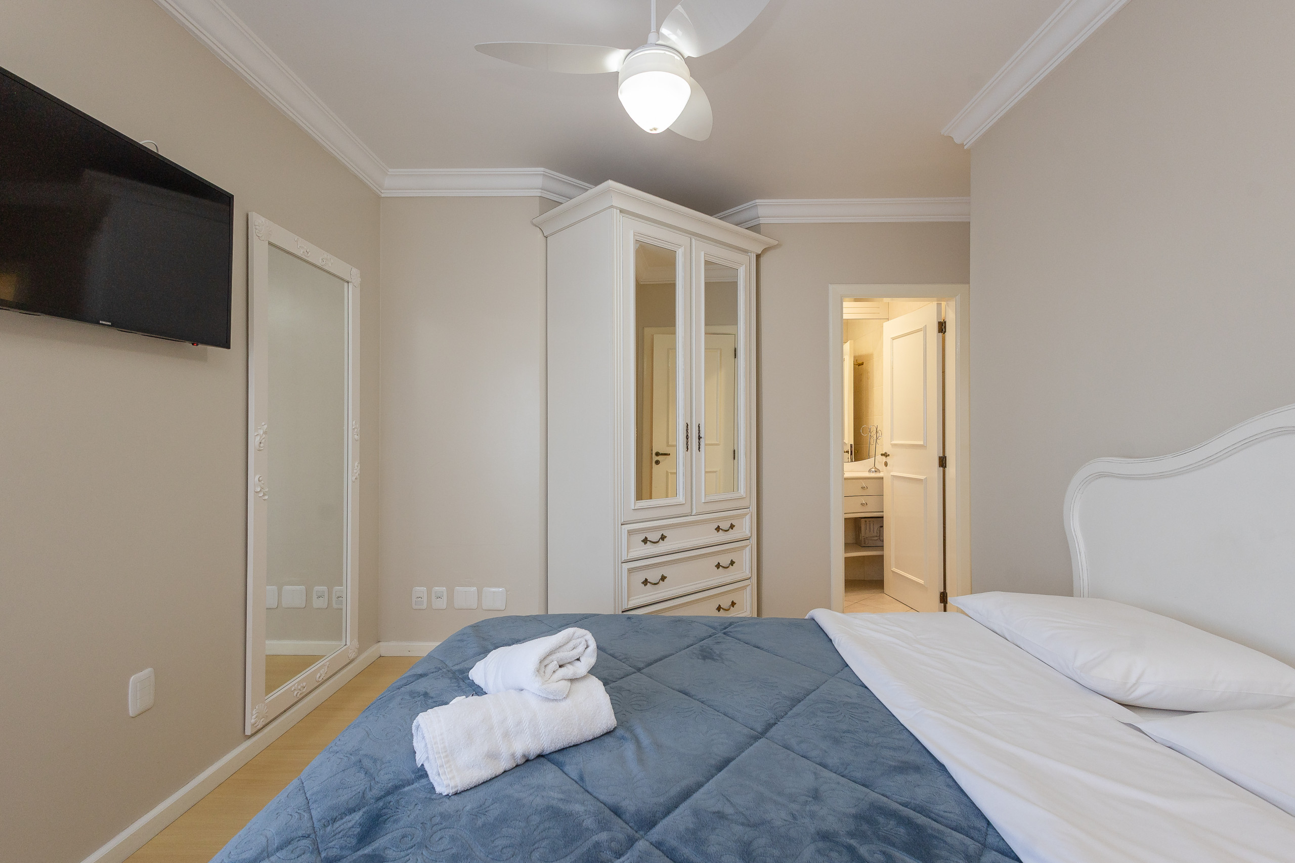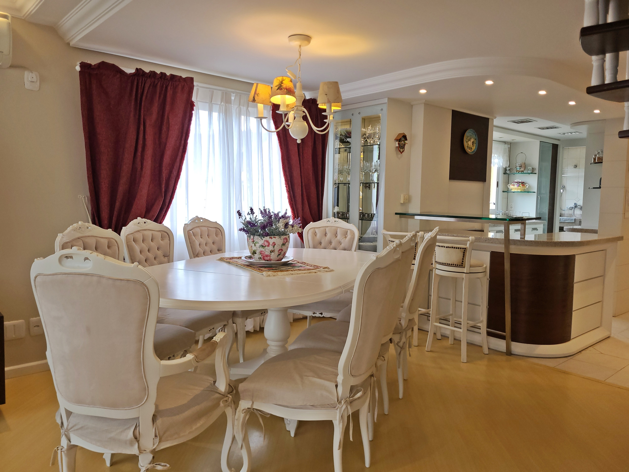 Spacious duplex apartment, with 4 suites and complete linen for your stay! We offer wifi and two parking spaces. With an area of 180m2, the apartment features on the main level a living room with three environments and heater (living, dining and Gourmet barbecue area), complete kitchen, laundry room (with washer and dryer) and two suites. On the upper floor there are two other suites. The living room and suites have hot/cold air conditioning. You will love it!