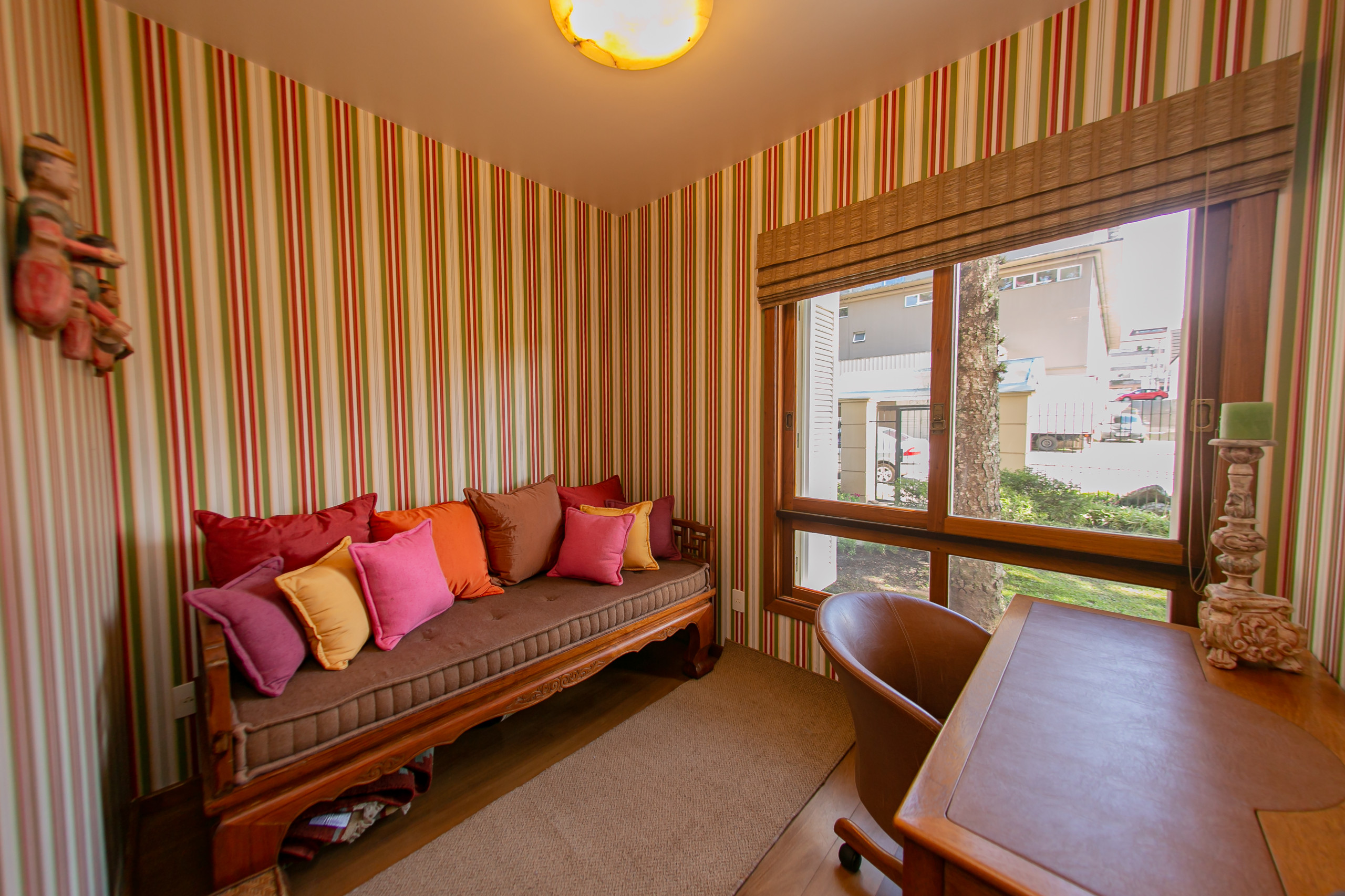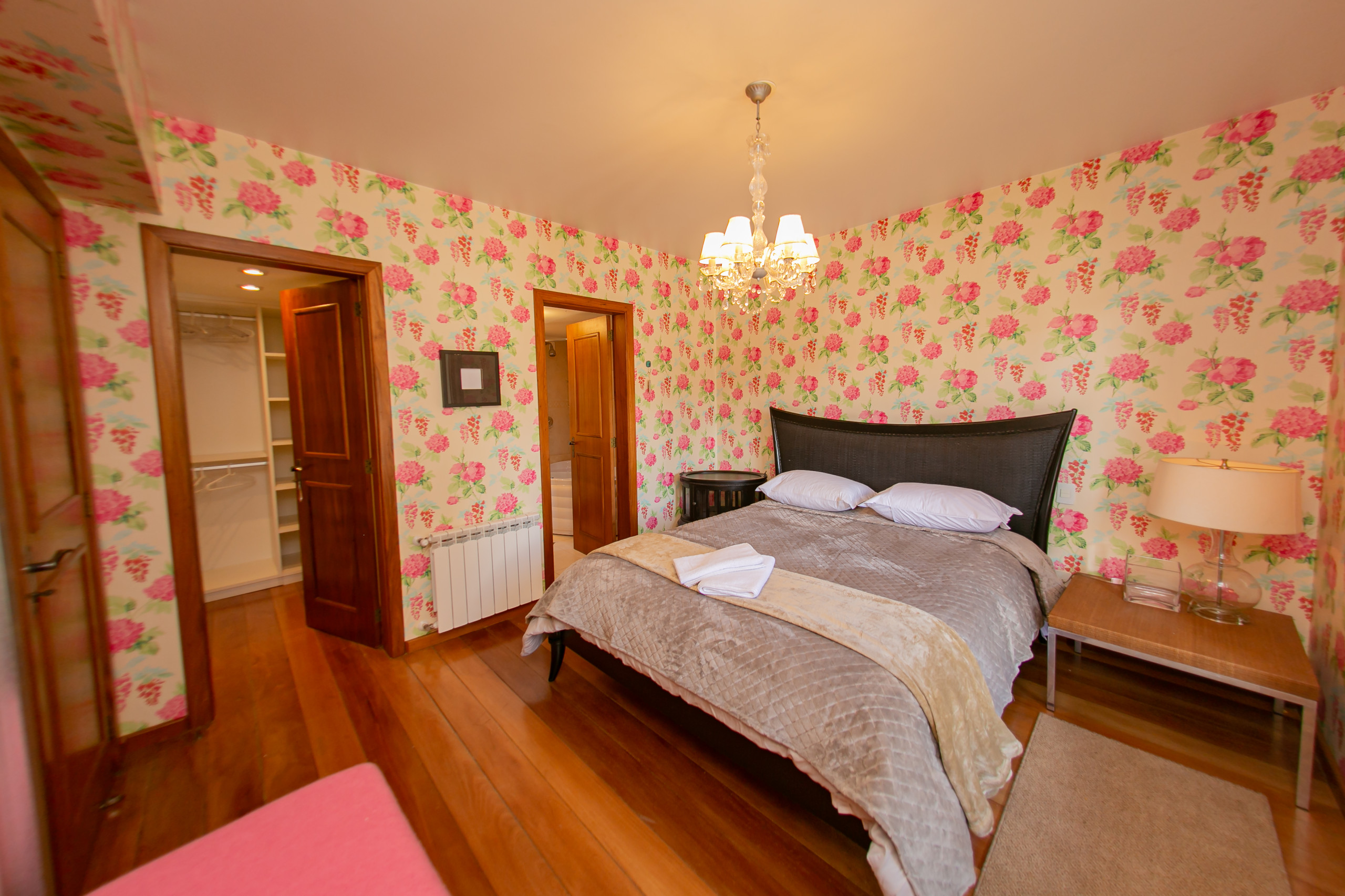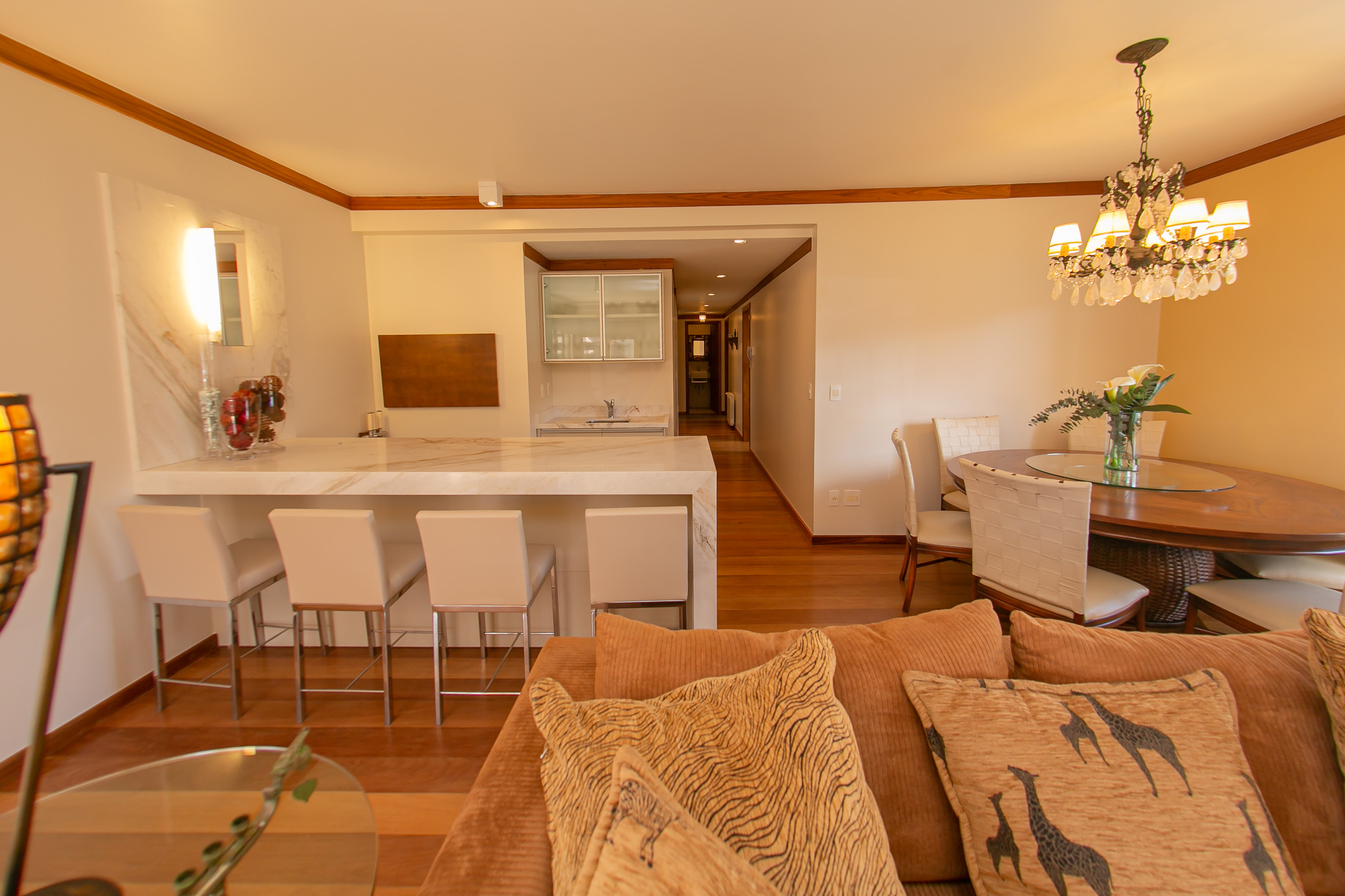 Spacious ground floor duplex apartment with 200m², with 3 suites. On the main floor, the apartment also has a bedroom, powder room, complete independent kitchen, laundry room with washer and dryer, living room with three environments (living, dining and gourmet barbecue area) with a view of Vale do Quilombo. On the upper floor are the three suites: all have a closet, with the rose suite featuring a bathtub and the master suite having a view of the Valley and a king-size bed. On the same floor, there is also a second living room with TV.