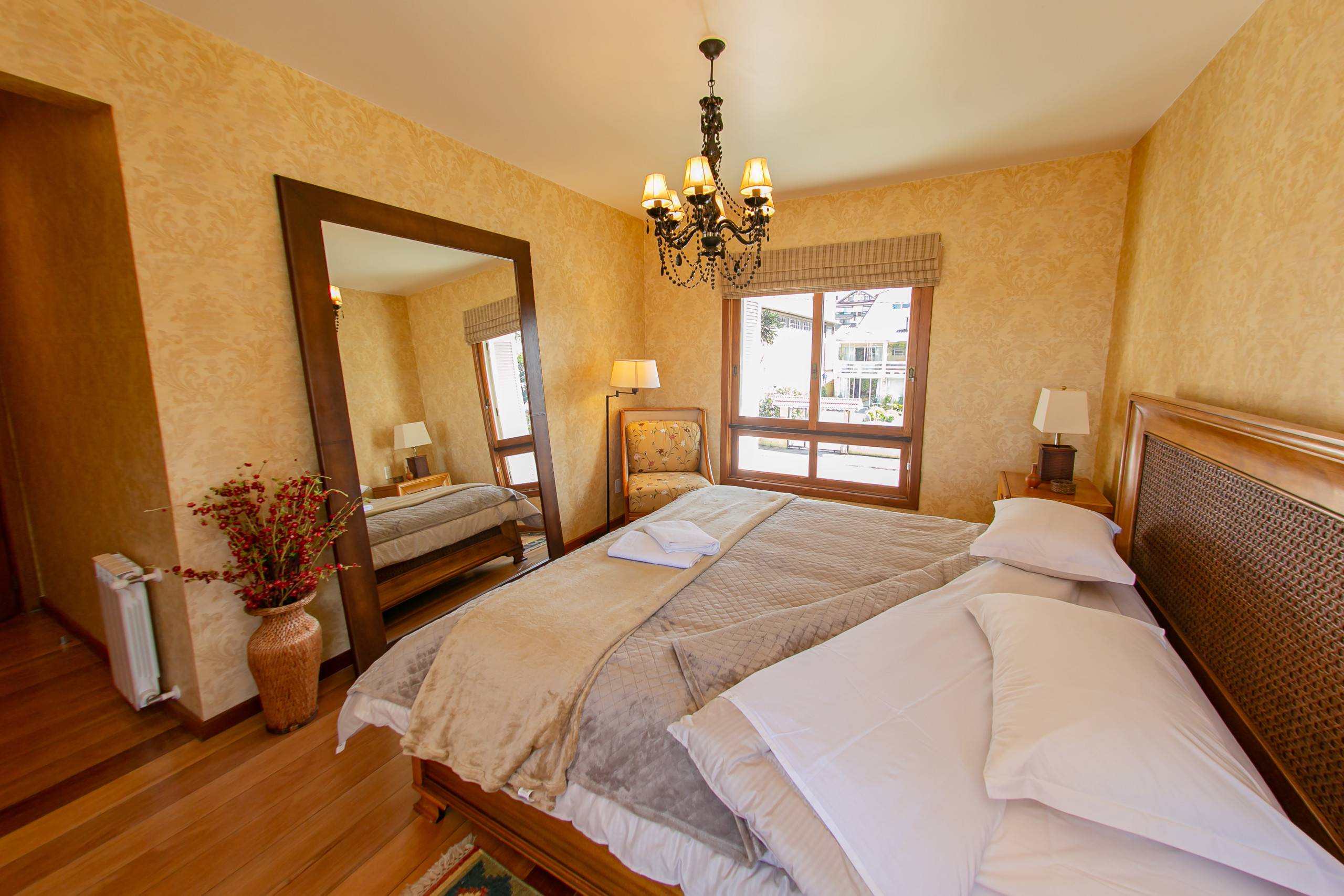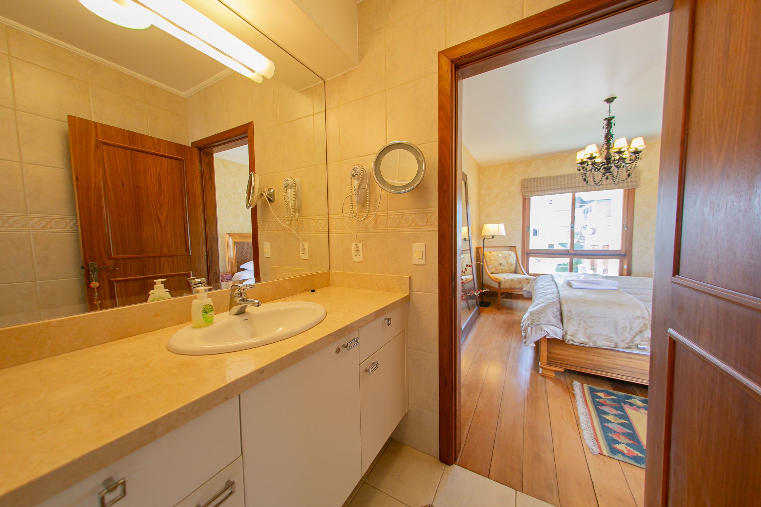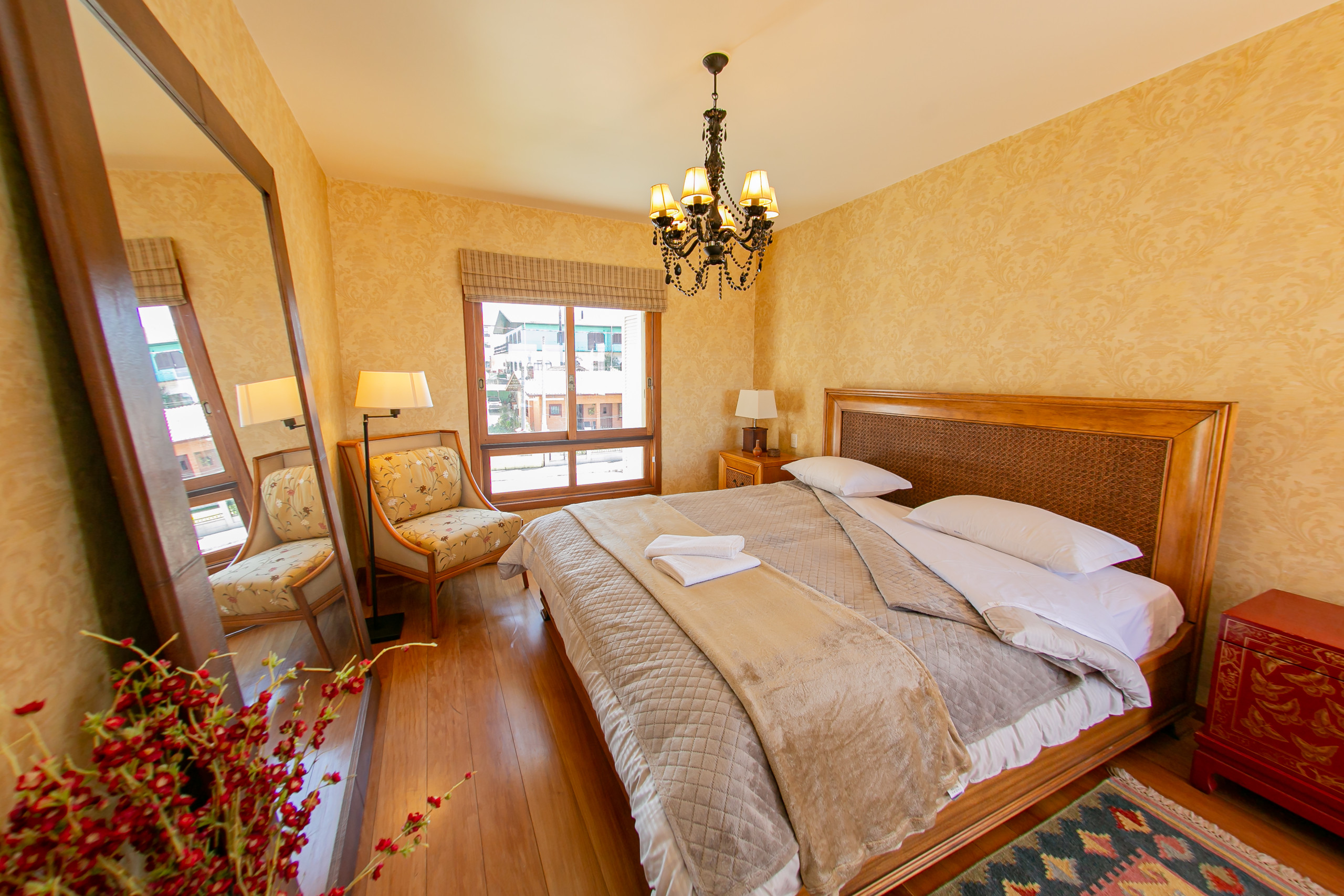 Spacious ground floor duplex apartment with 200m², with 3 suites. On the main floor, the apartment also has a bedroom, powder room, complete independent kitchen, laundry room with washer and dryer, living room with three environments (living, dining and gourmet barbecue area) with a view of Vale do Quilombo. On the upper floor are the three suites: all have a closet, with the rose suite featuring a bathtub and the master suite having a view of the Valley and a king-size bed. On the same floor, there is also a second living room with TV.