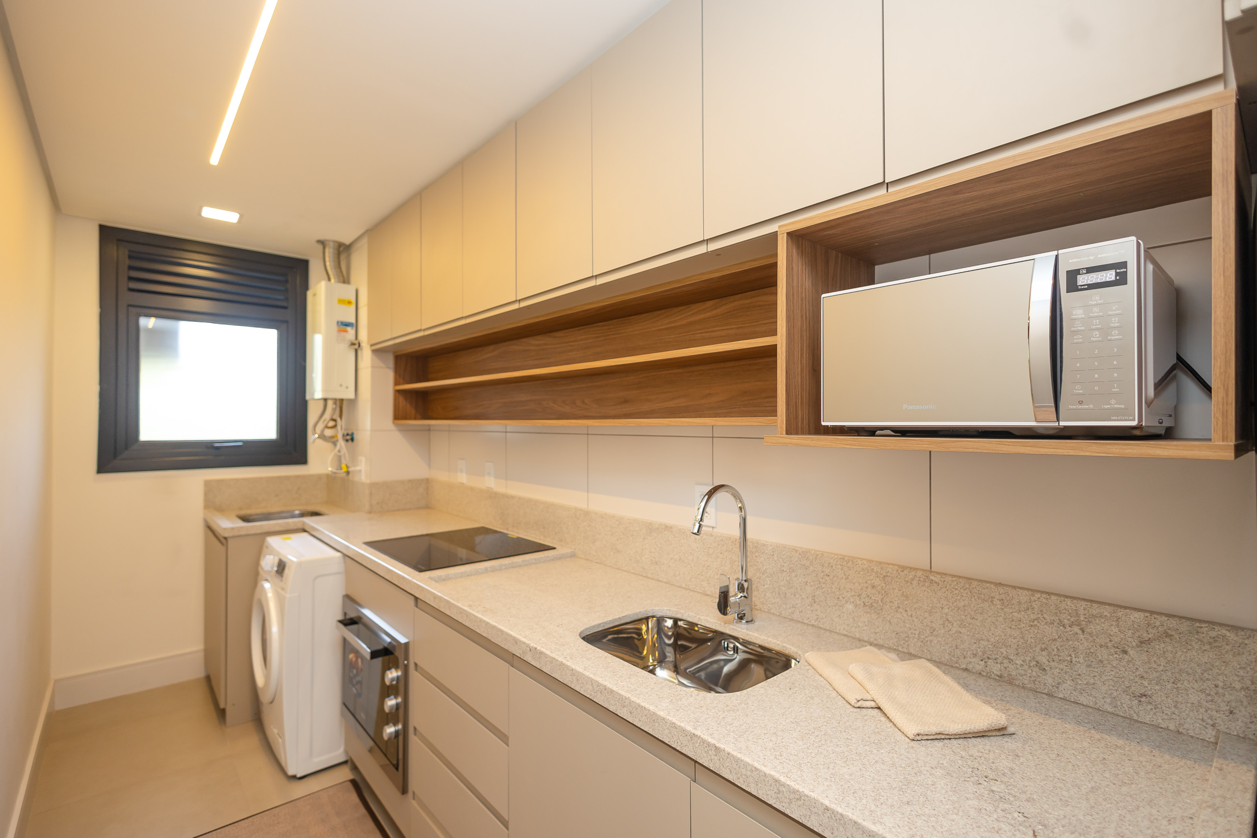 The independent kitchen is fully equipped with a refrigerator, freezer, oven, microwave, coffee machine, kettle, sandwich maker, and all the necessary utensils to prepare delicious meals. Ideal for those who enjoy cooking and spending time with family. Air conditioning in all environments ensures thermal comfort, regardless of the time of year.