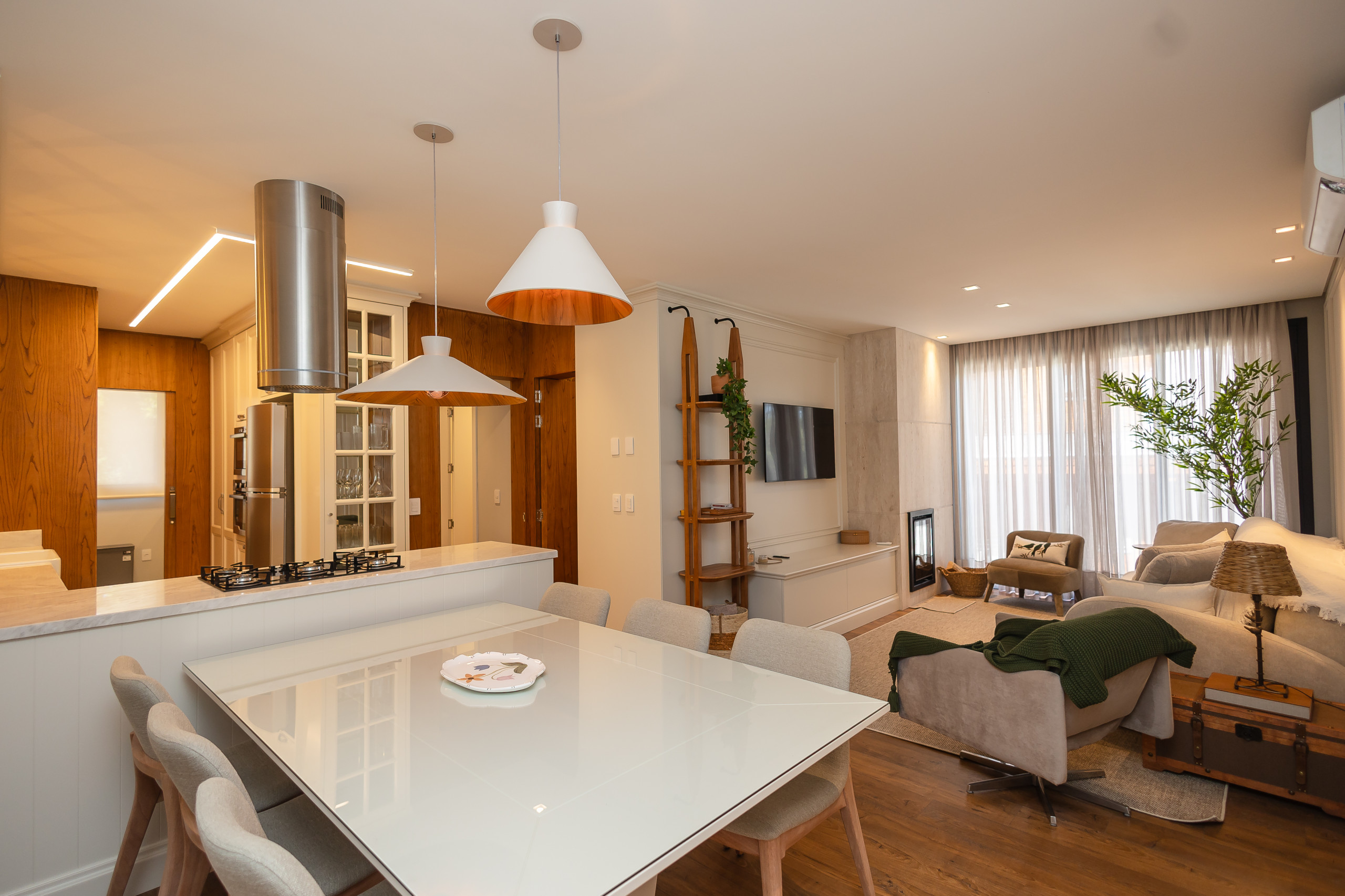 This apartment is your new opportunity to LIVE the centre of Gramado, about 600m from Covered Street, without needing a car! Decorated with great care in every detail, it will provide: a parking space, high-speed internet, two suites, Q/H split in the living room and suites, fireplace, washer and dryer and complete trousseau for your stay!