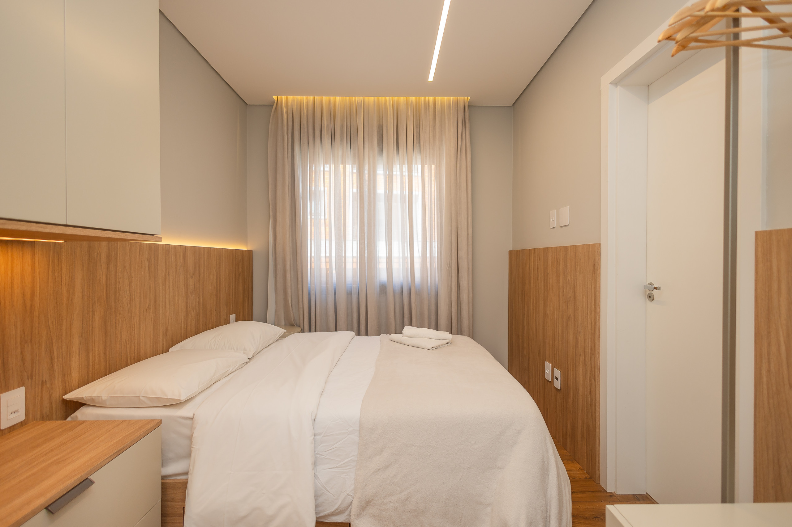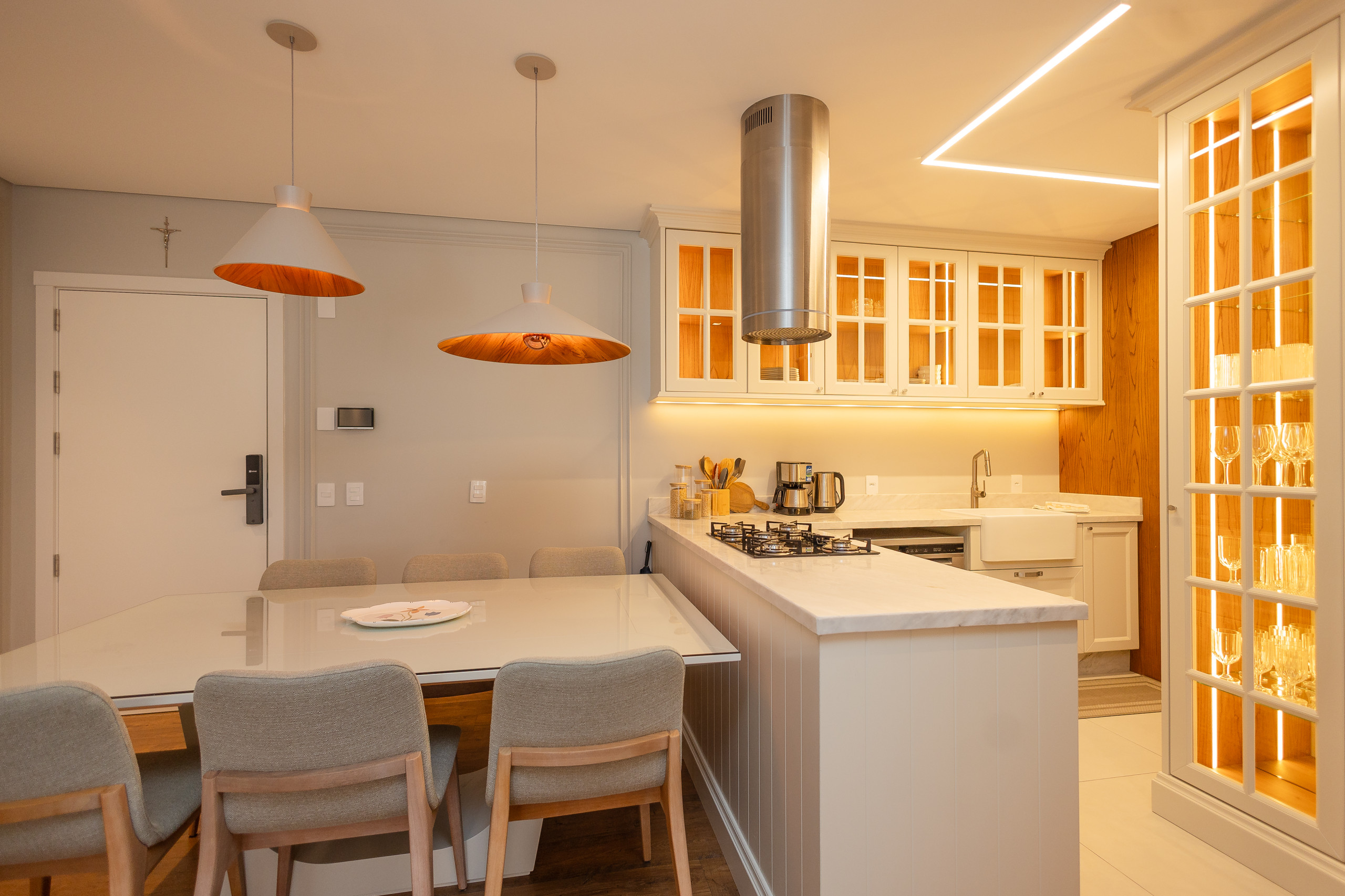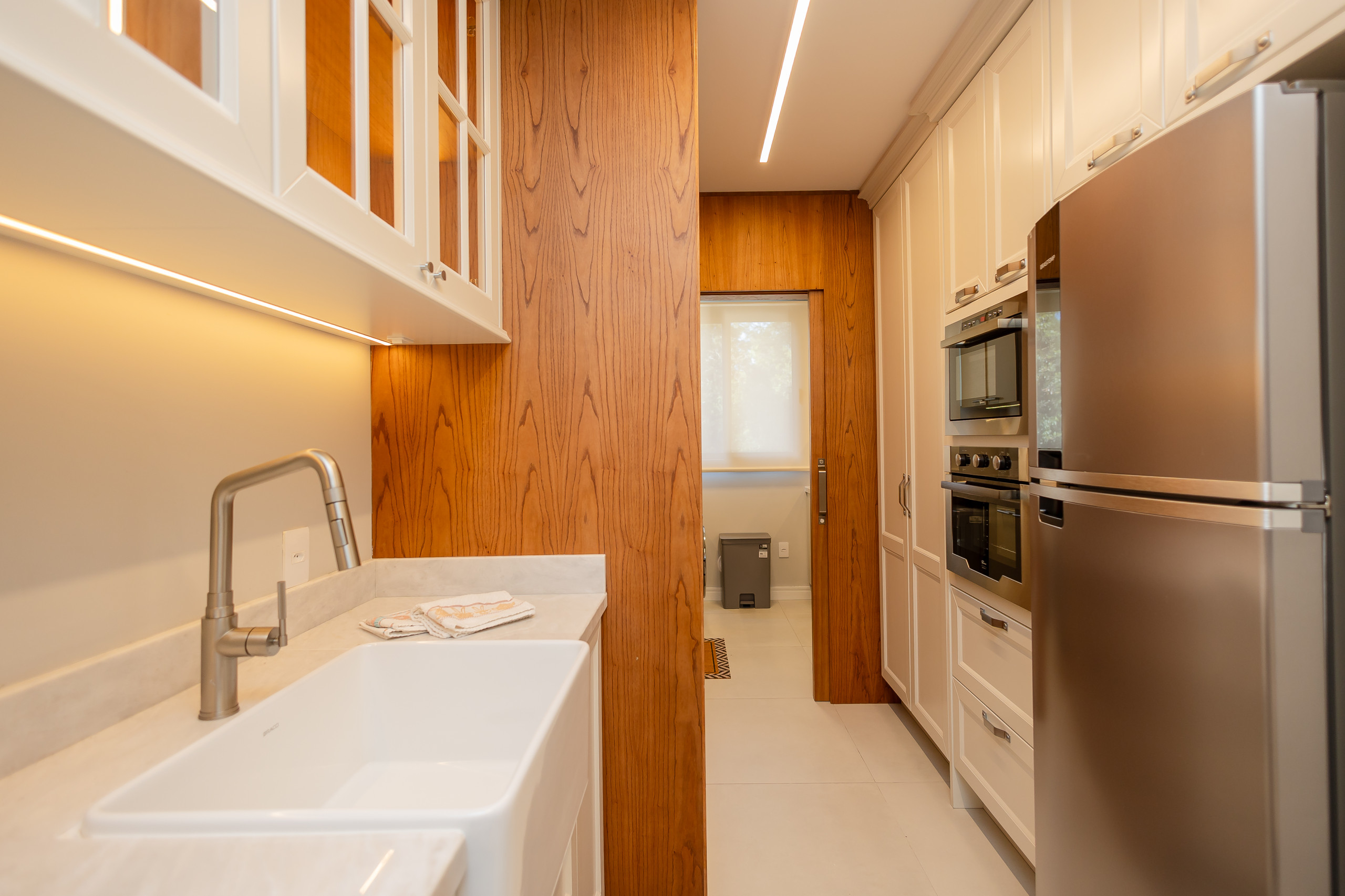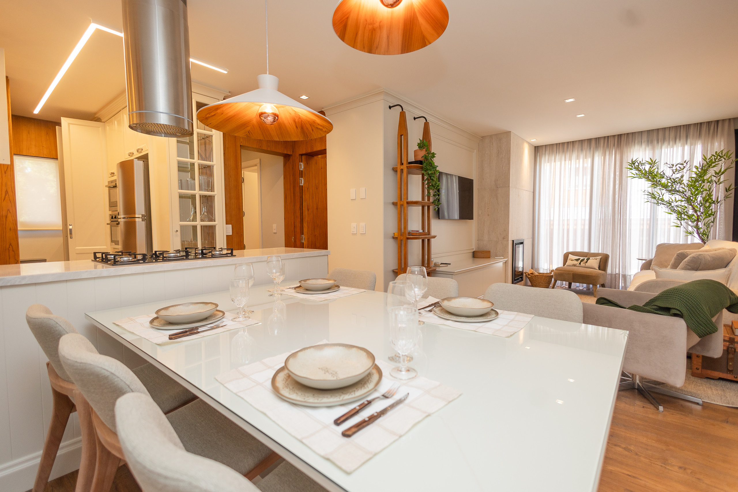 The complete kitchen has dishwasher, barbecue grill, refrigerator, coffee maker, sandwich maker, microwave, cooktop and stove. At the table, up to 06 guests can sit for meals or to simply enjoy a hot chocolate or a wine. The apartment also has a laundry room with washer and dryer.