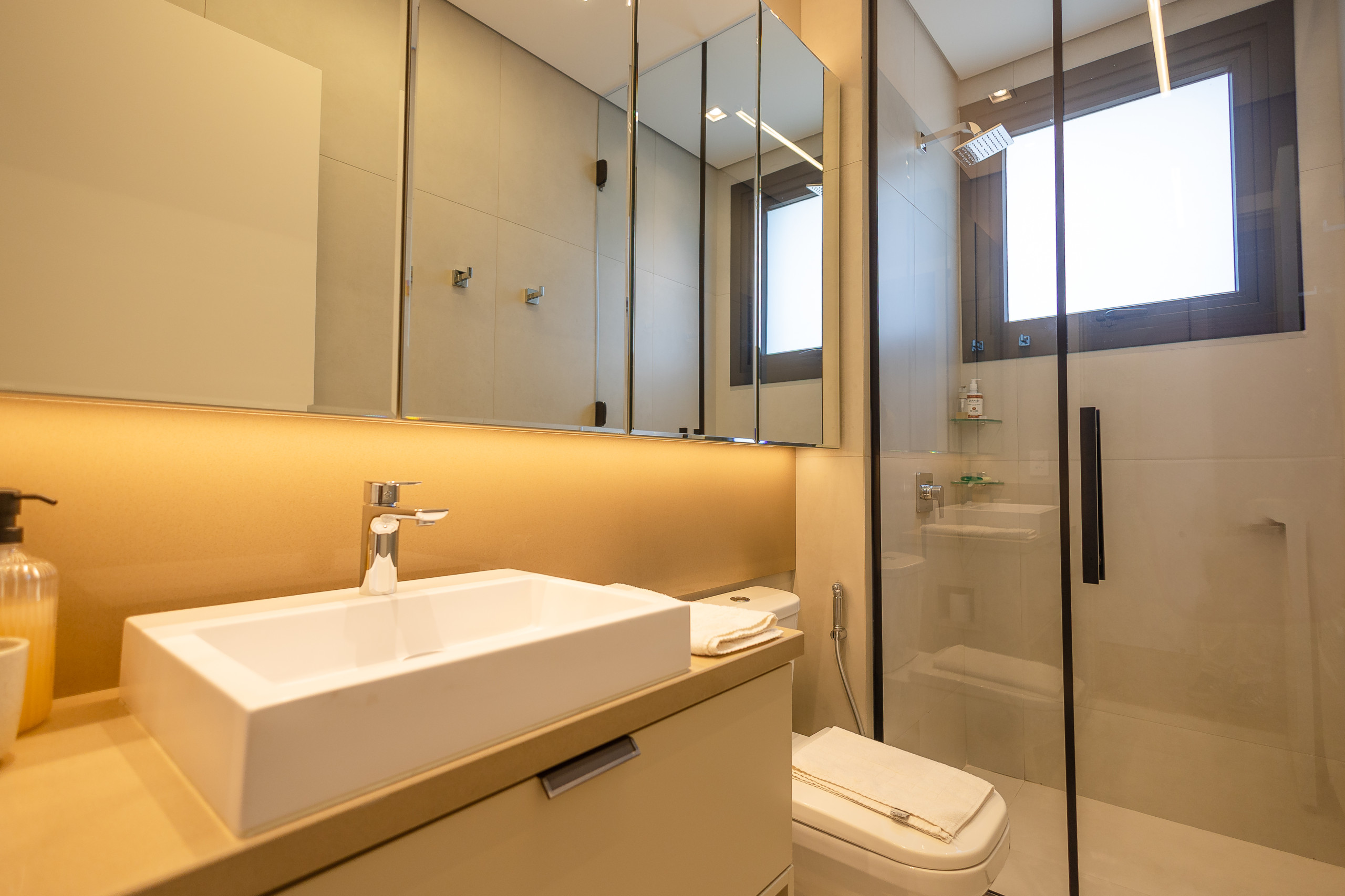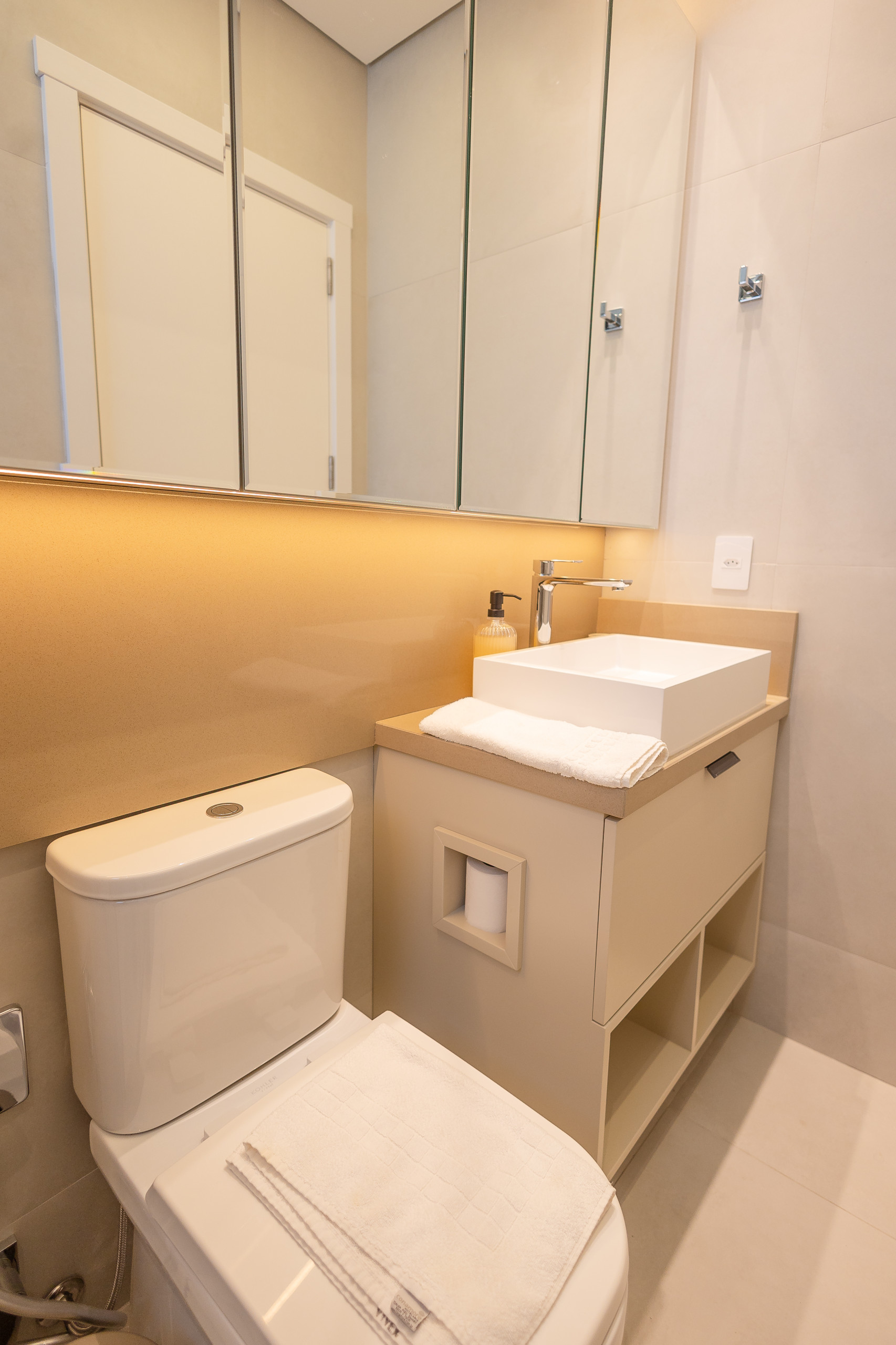 The living room has three environments (kitchen, living and dining) and a washroom and will provide a space to enjoy moments of relaxation in group, with great taste! In addition to the heater, it also has Q/H split, making summer and winter days special!