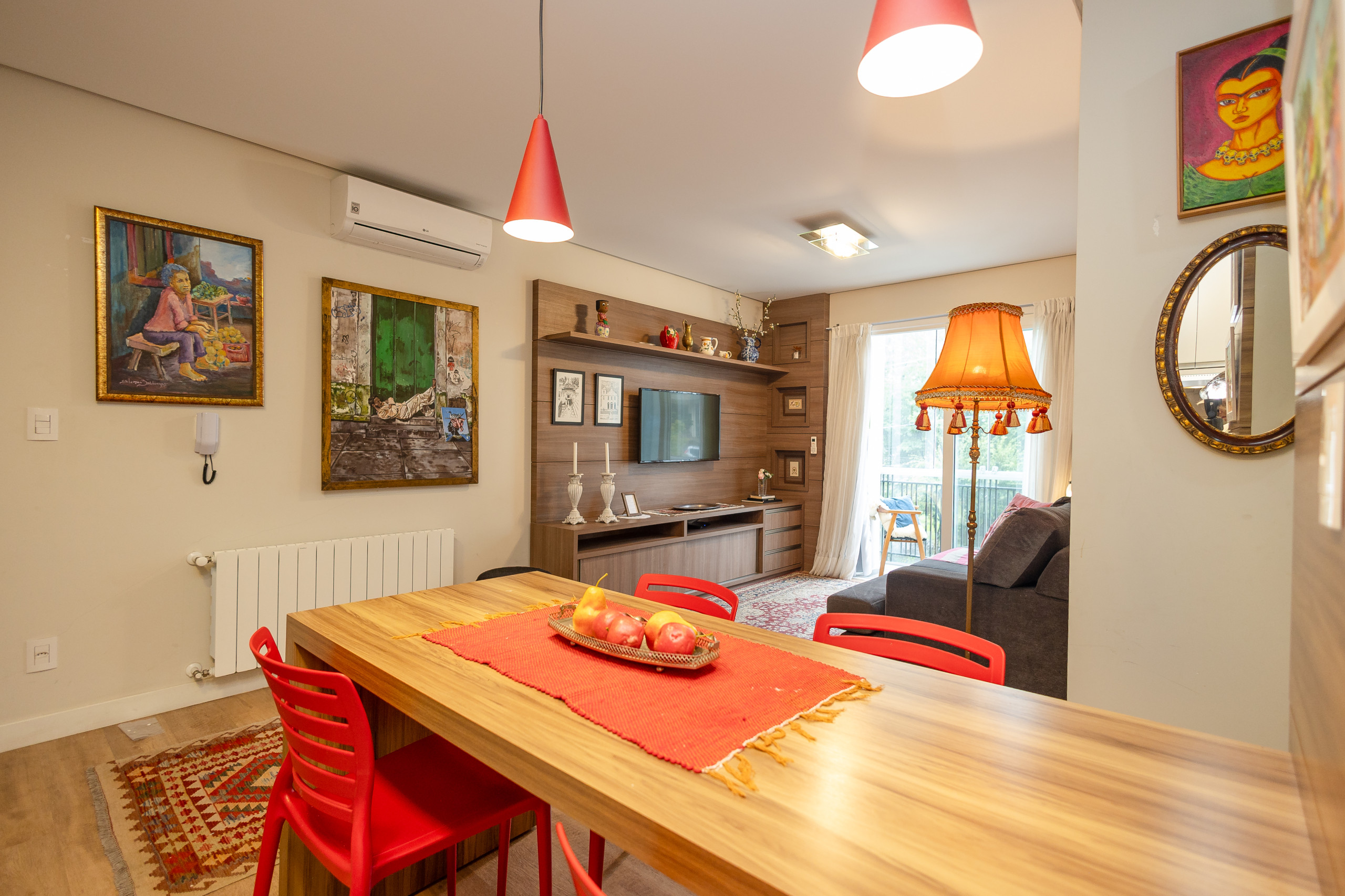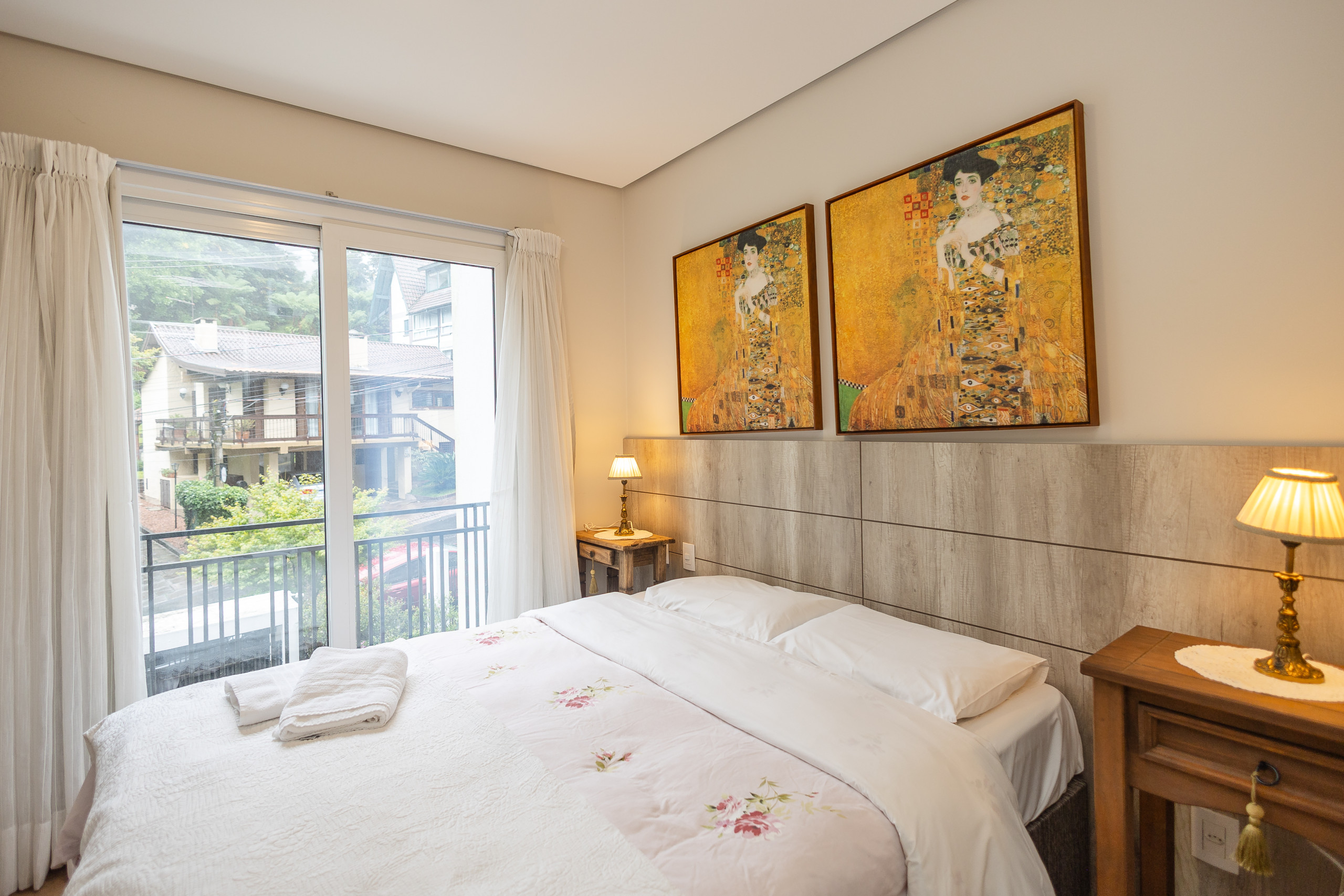 This apartment is your new opportunity to live in the centre of Gramado, about 400m from Rua Coberta, without needing a car! Decorated with great care in every detail, it will provide: one garage space, high-speed internet, one bedroom, split air conditioning/heating in the living room and bedroom, washing machine and complete bedding for your stay!