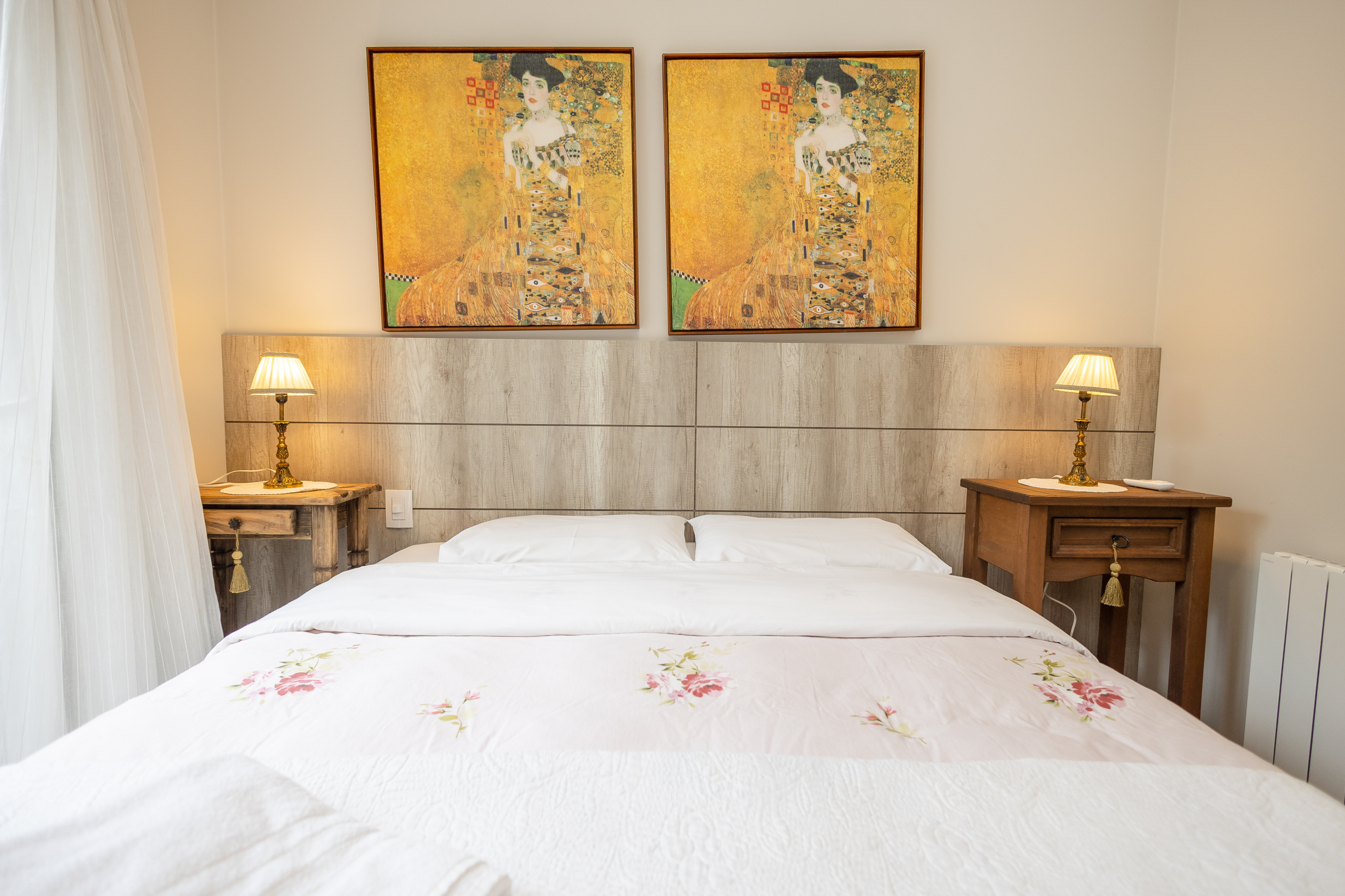 In the private area we find a bedroom with split air conditioning/heating, blackout curtains that bring cosiness and a queen bed for added comfort. The apartment also has a garage space and complete bedding for your stay, so your only concern will be to make the most of it!
