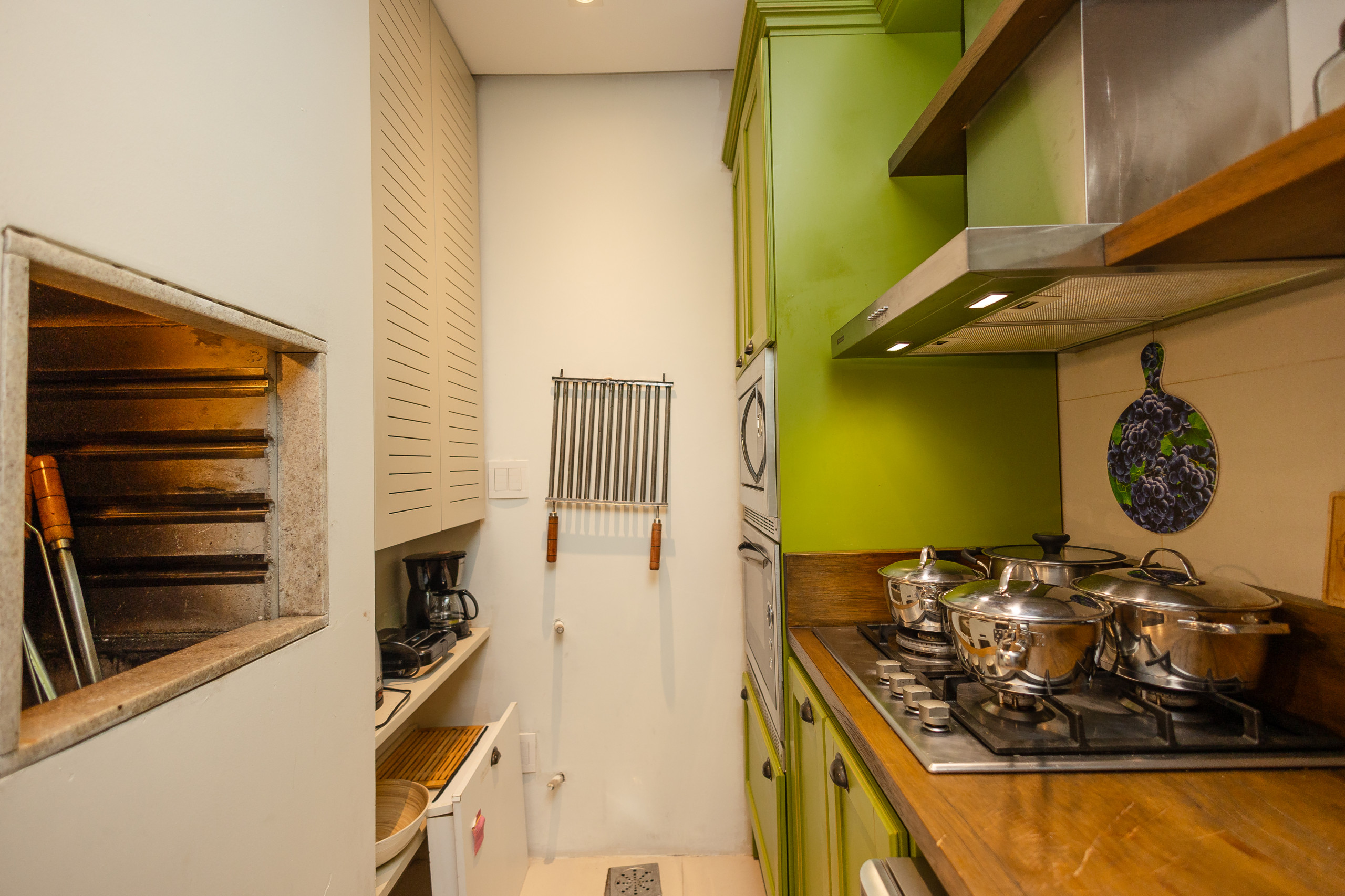 The fully equipped kitchen includes a dishwasher, barbecue, refrigerator, coffee maker, sandwich maker, microwave, hob and cooker. At the table, up to 04 guests can sit for meals or simply enjoy a hot chocolate or a glass of wine. The apartment also has a hair dryer and laundry room with washer-dryer.