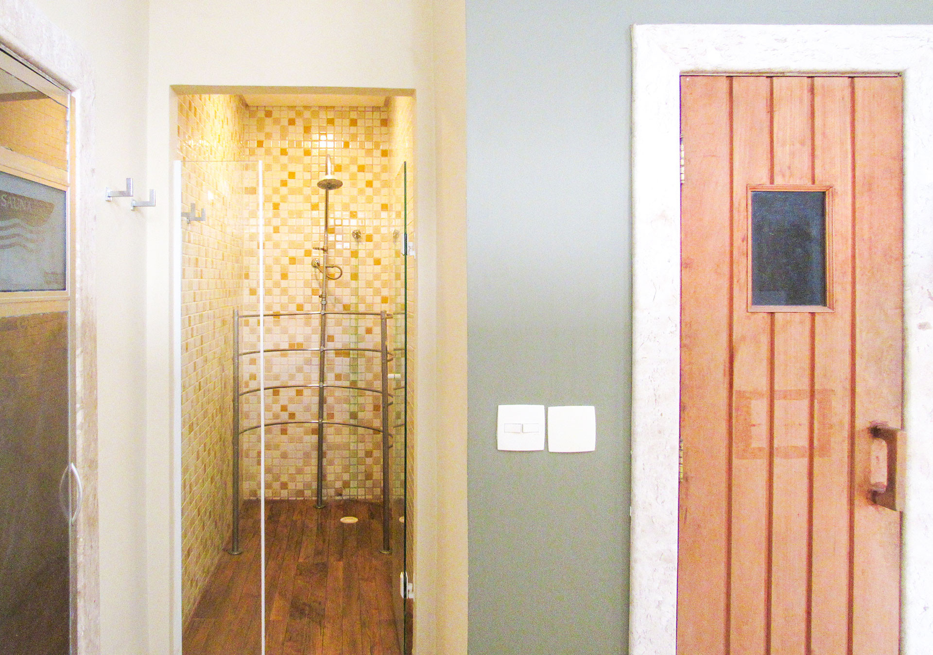 - O banheiro têm chuveiro a gás e box de vidro/acrílico