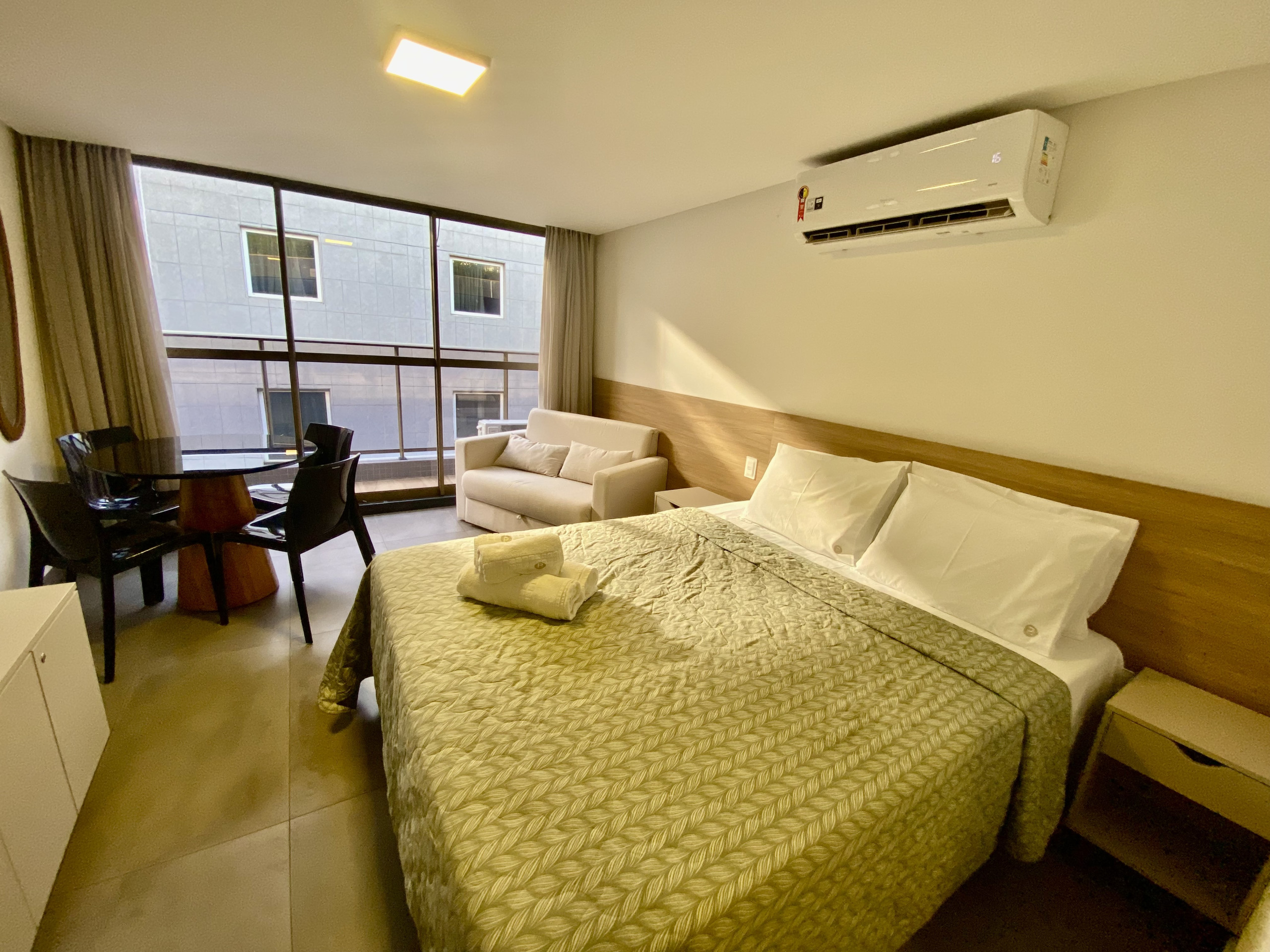 Ar-condicionado disponível. Desligue sempre que sair, seja amigo do meio ambiente.