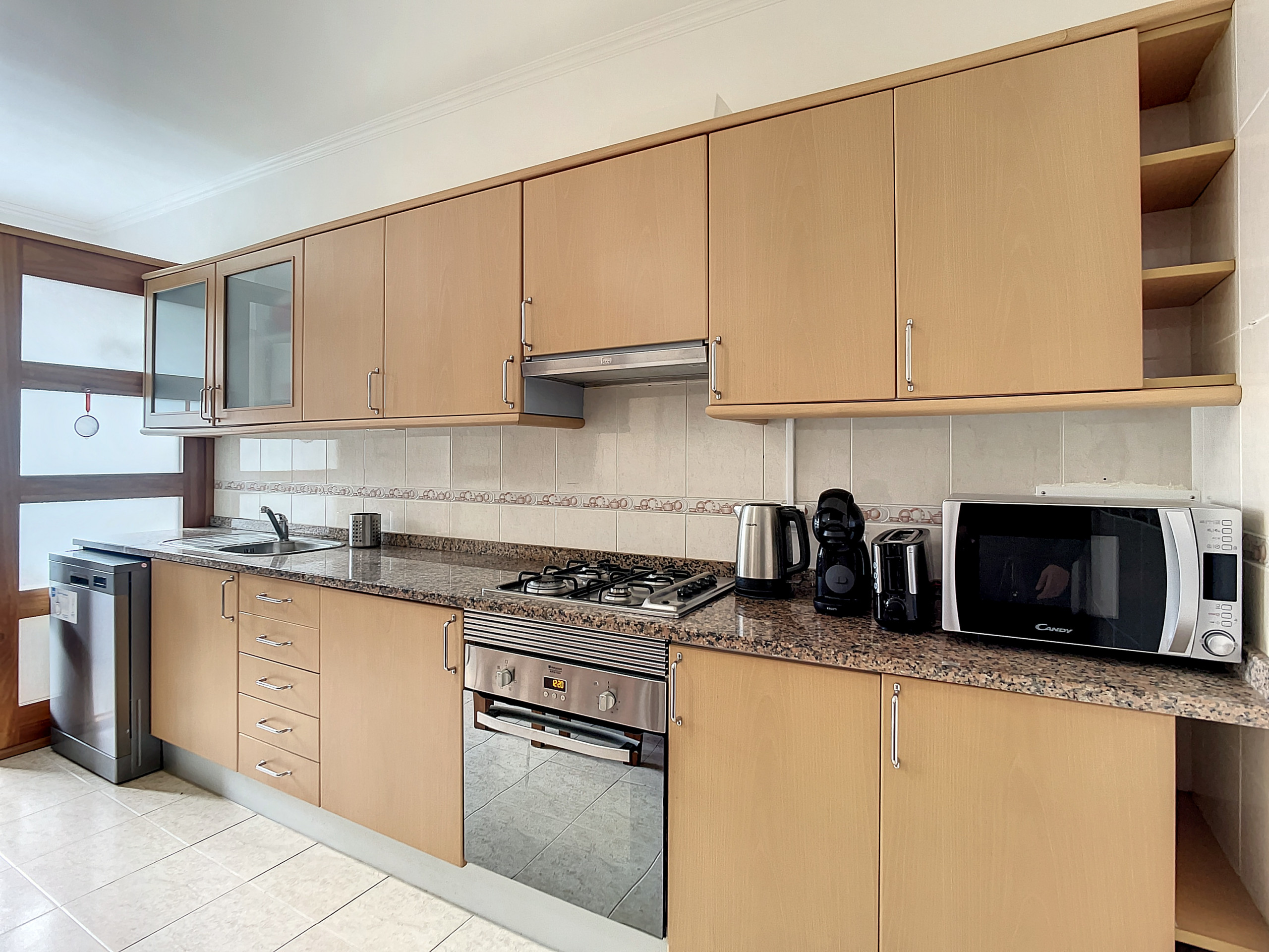 The kitchen is fully equipped with all essential appliances and utensils needed to prepare home-cooked meals, including a fridge, freezer, oven, microwave, hob, cutlery and plates. A washing machine is also available, making the apartment suitable for both short and longer stays. The living area includes a Smart TV with box for your entertainment.