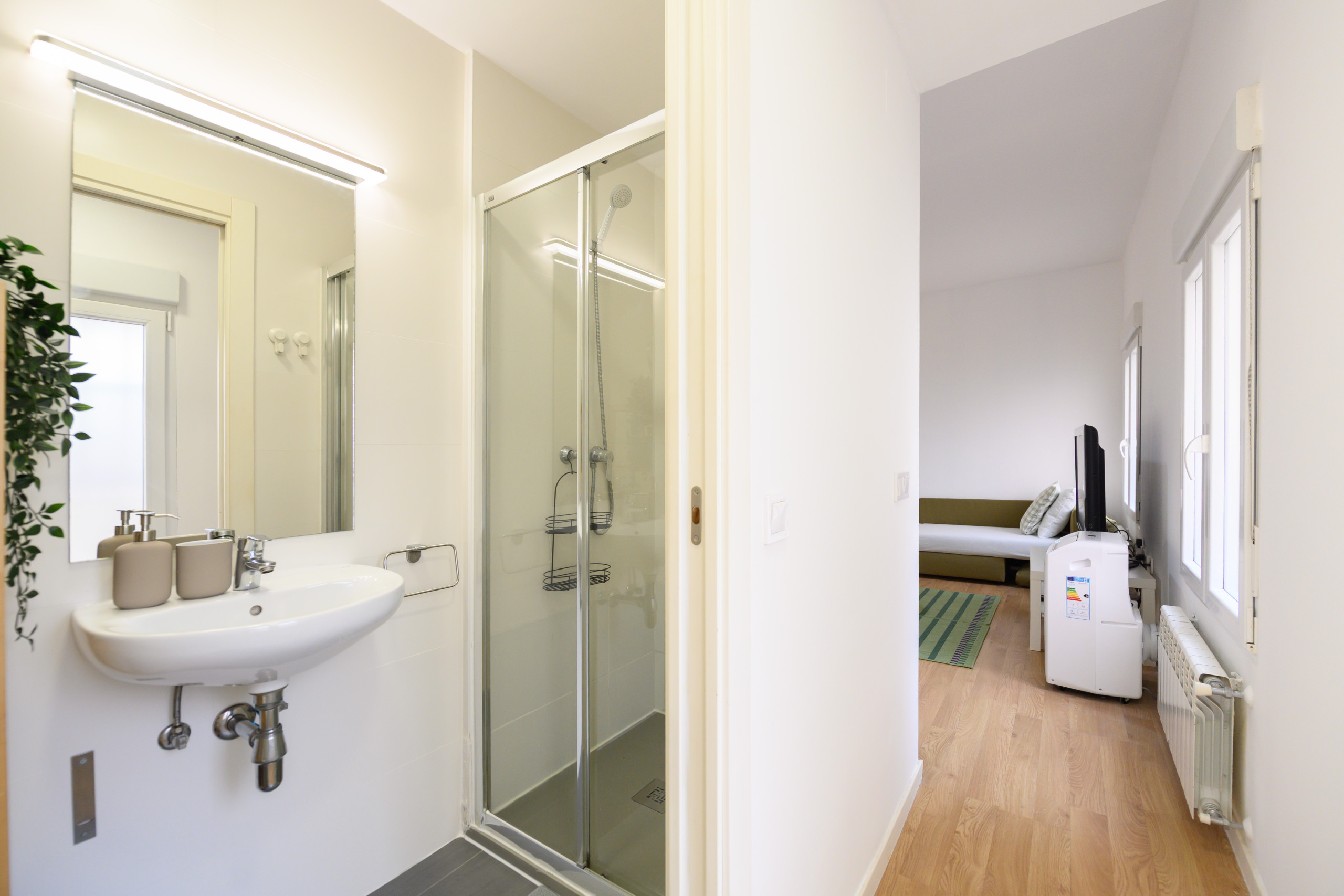 The full bathroom has a modern shower tray, mirror, washbasin and all the essential elements for your hygiene and comfort.