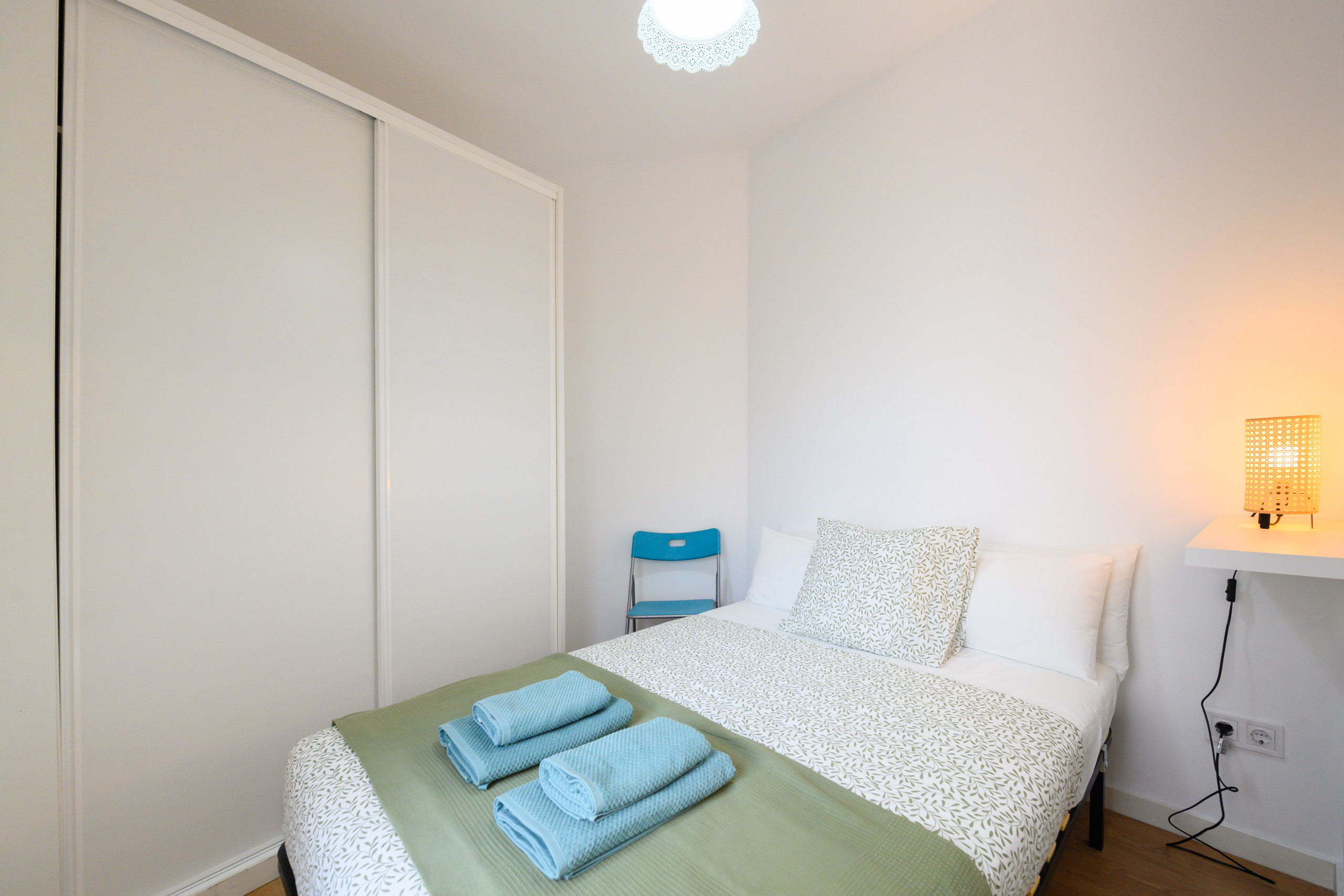 The main bedroom offers a comfortable double bed and a practical built-in wardrobe with ample storage space.