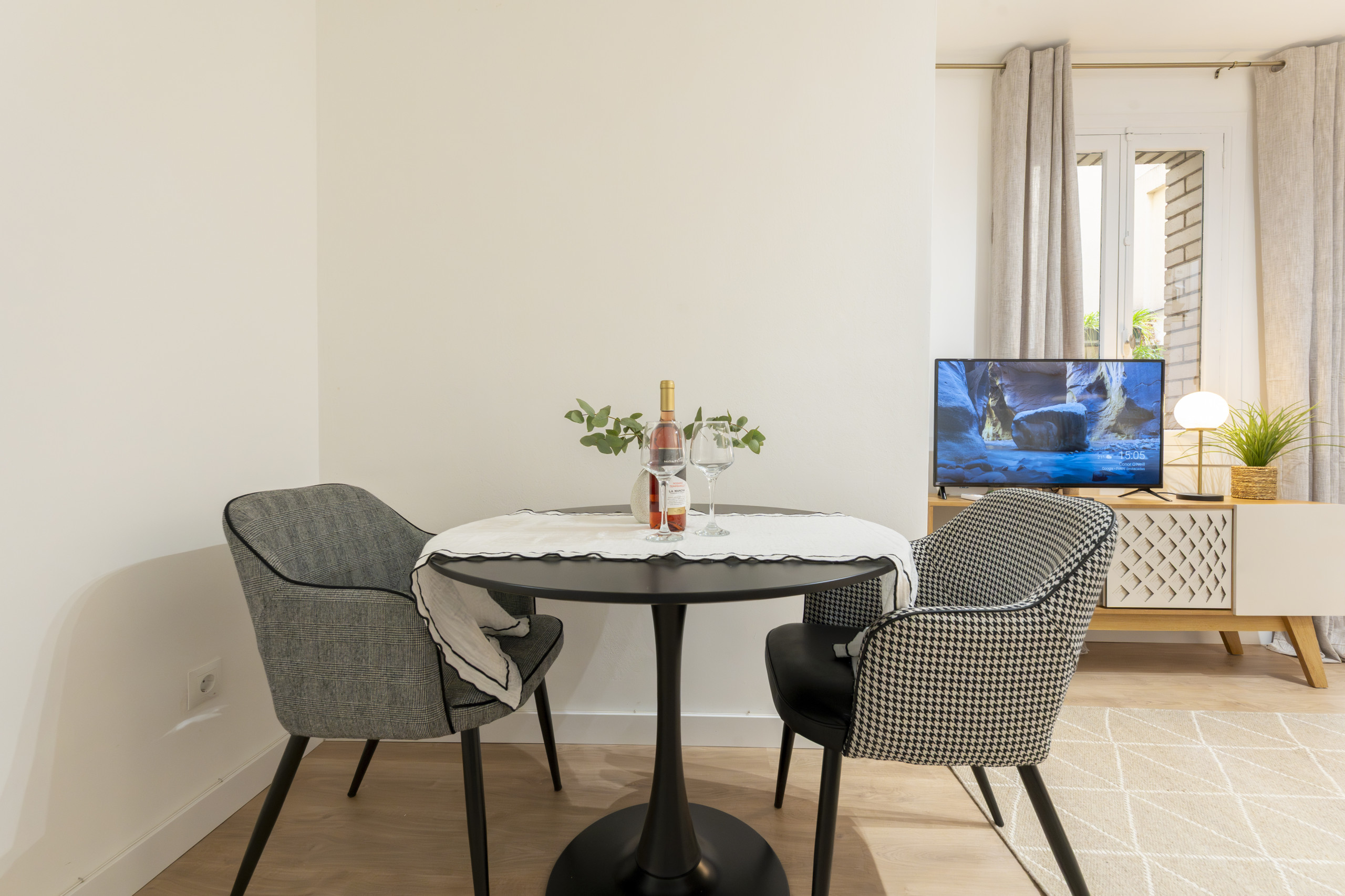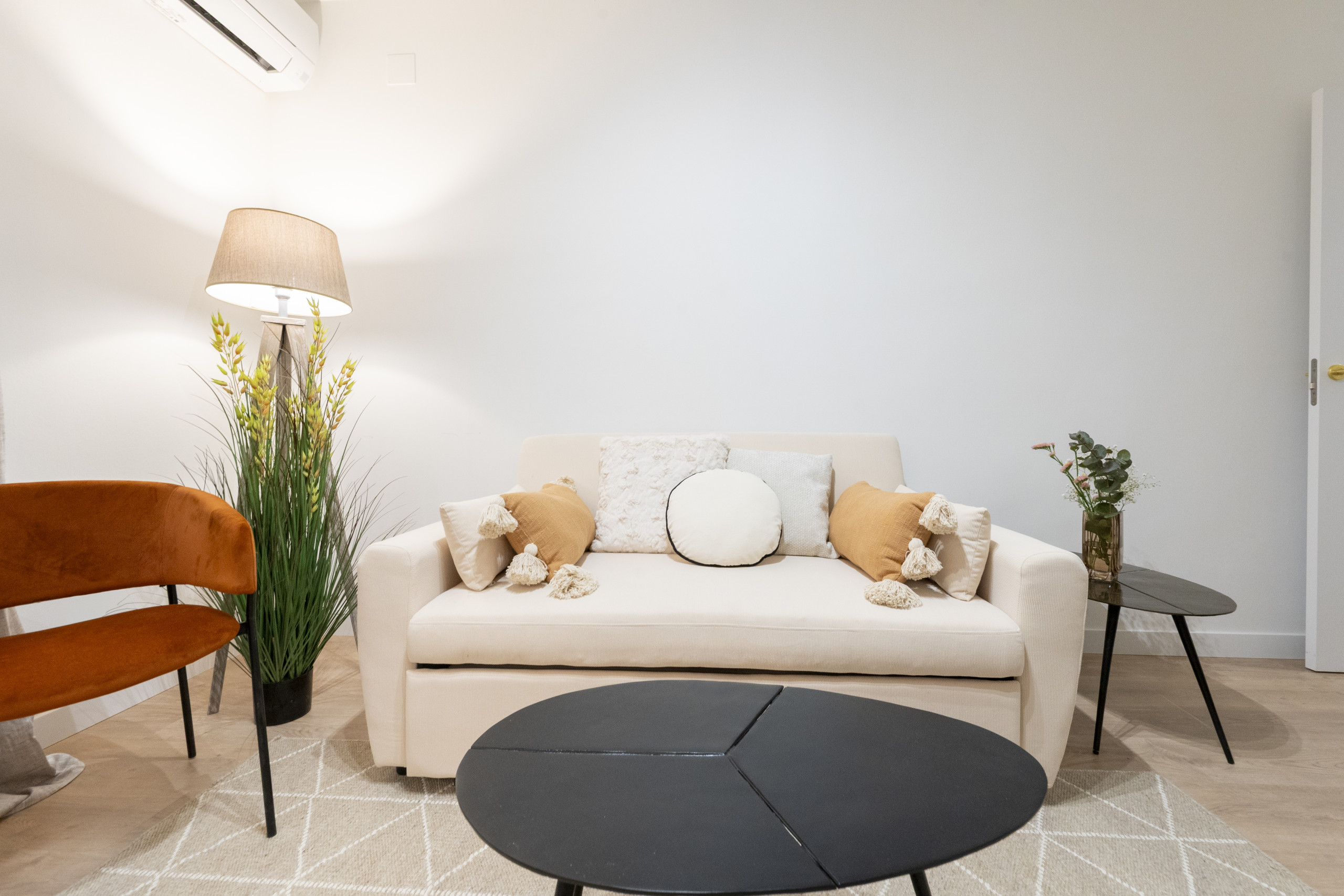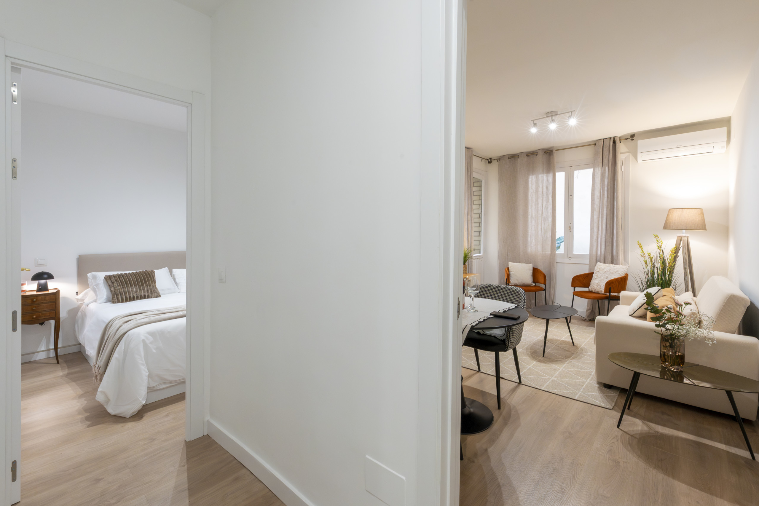 Luminous and functional space, equipped with a comfortable single sofa bed and a dining table ideal for receiving visitors or enjoying your daily meals. It has air conditioning and electric heating to ensure comfort throughout the year.