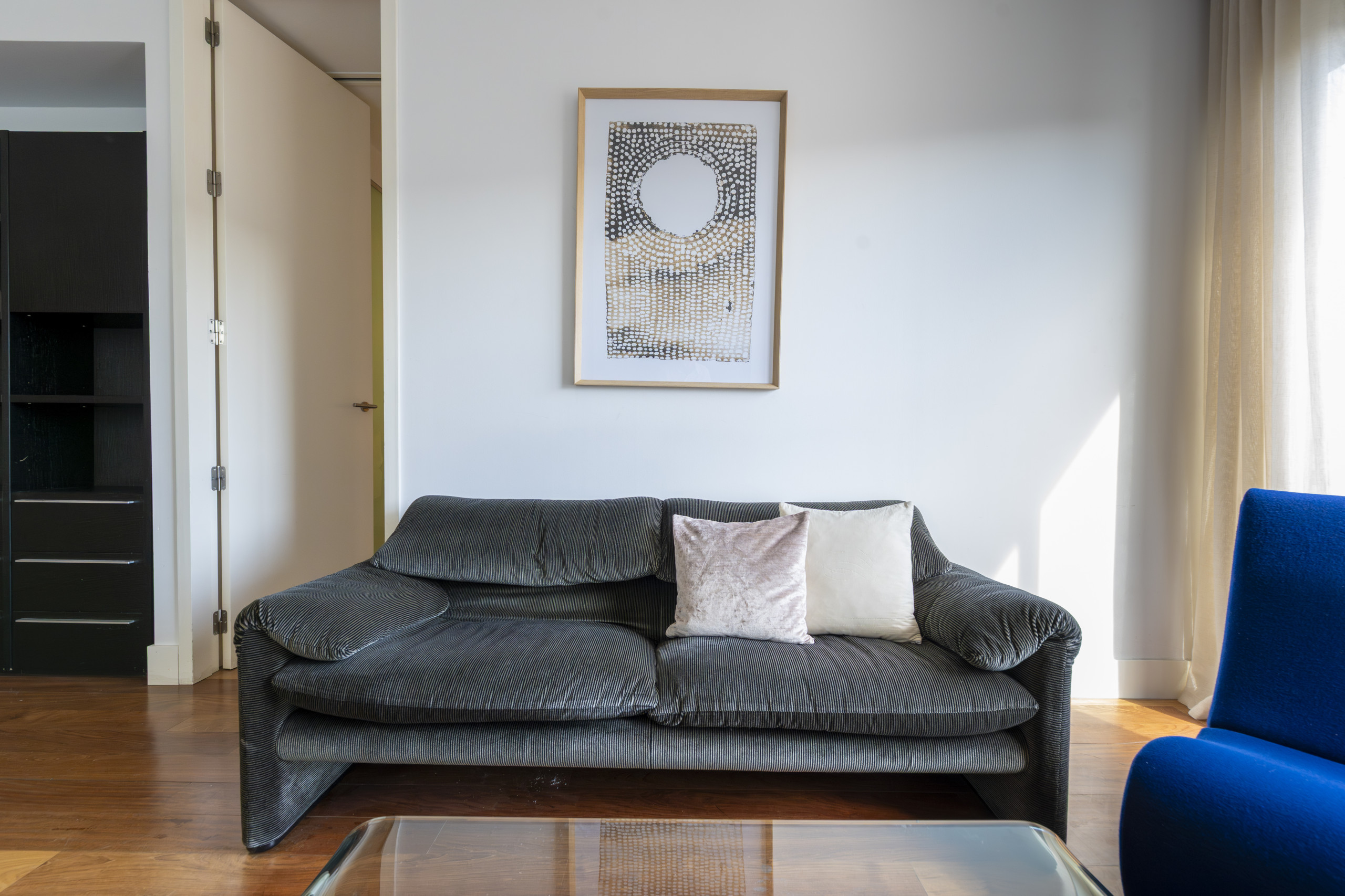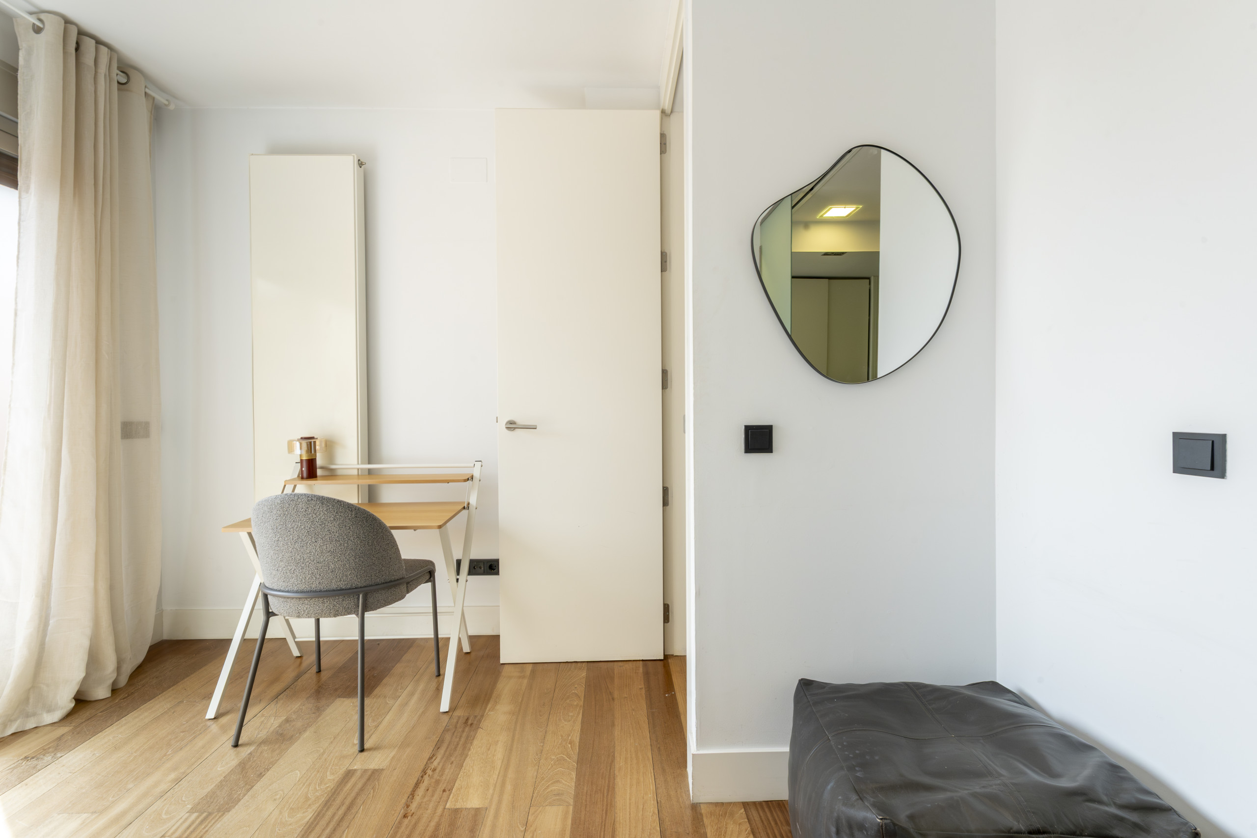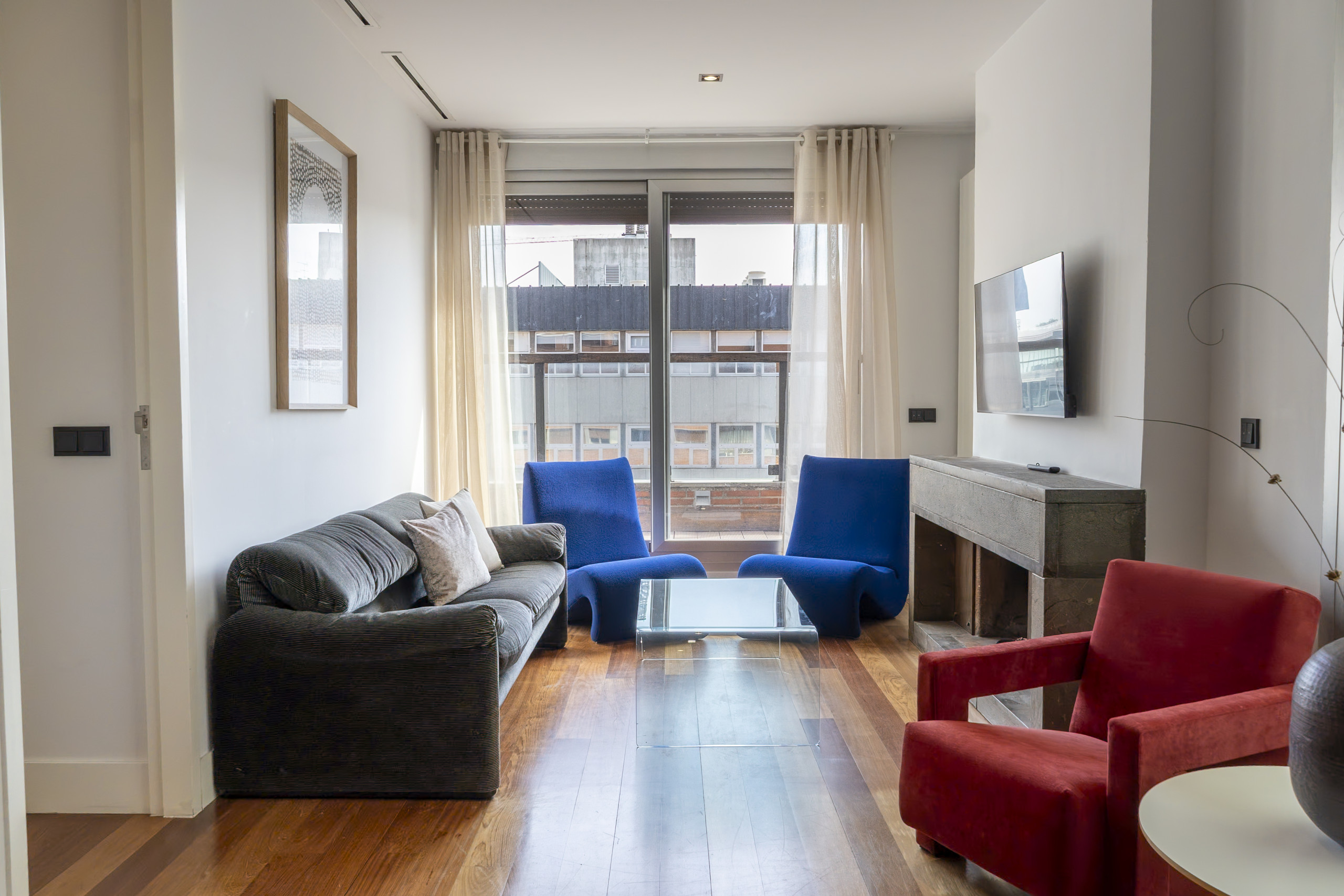 The apartment is located in one of the best-connected and dynamic areas of Madrid, between the neighbourhoods of Cuatro Caminos and Castillejos, just a few minutes from Nuevos Ministerios, one of the main commercial and business arteries of the city.