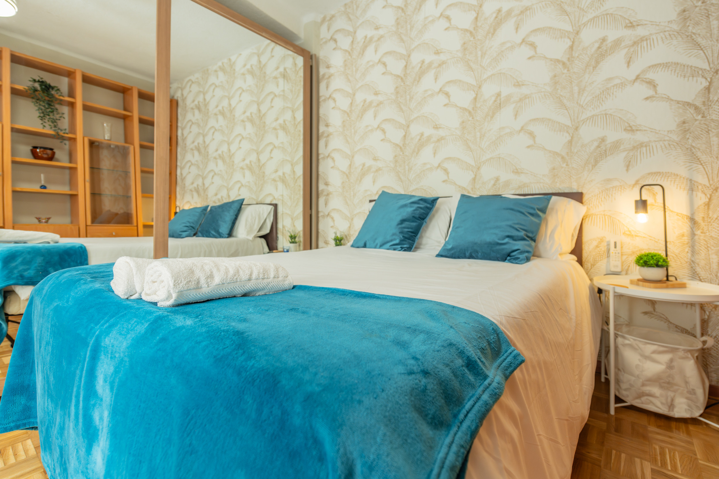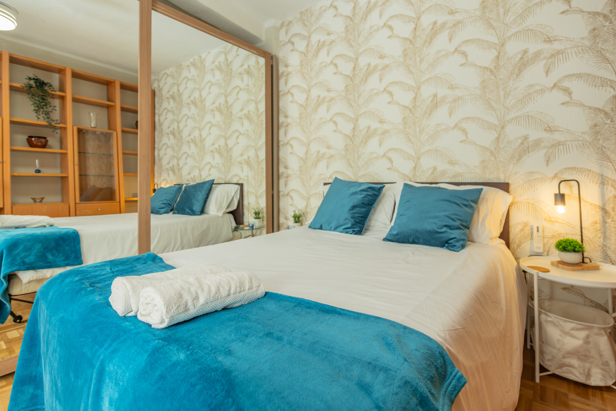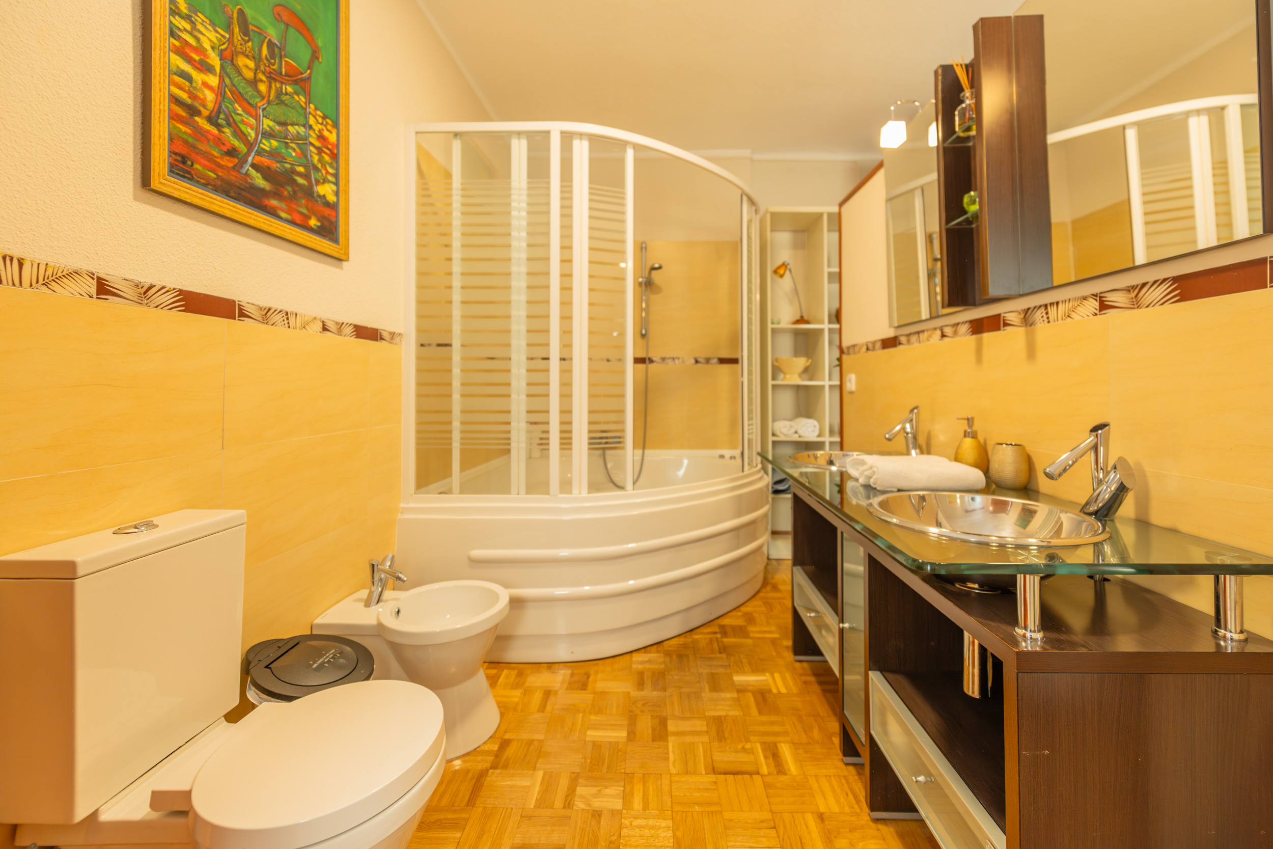 Temporary Rental Flat. Discover the comfort in this spacious three-bedroom apartment, perfect for families, groups of friends or business travellers. Each bedroom is equipped with a double bed, offering restful sleep in an elegant and welcoming environment. The main bedroom features an en-suite bathroom, complete with a luxurious whirlpool bath, ideal for relaxing after a busy day.