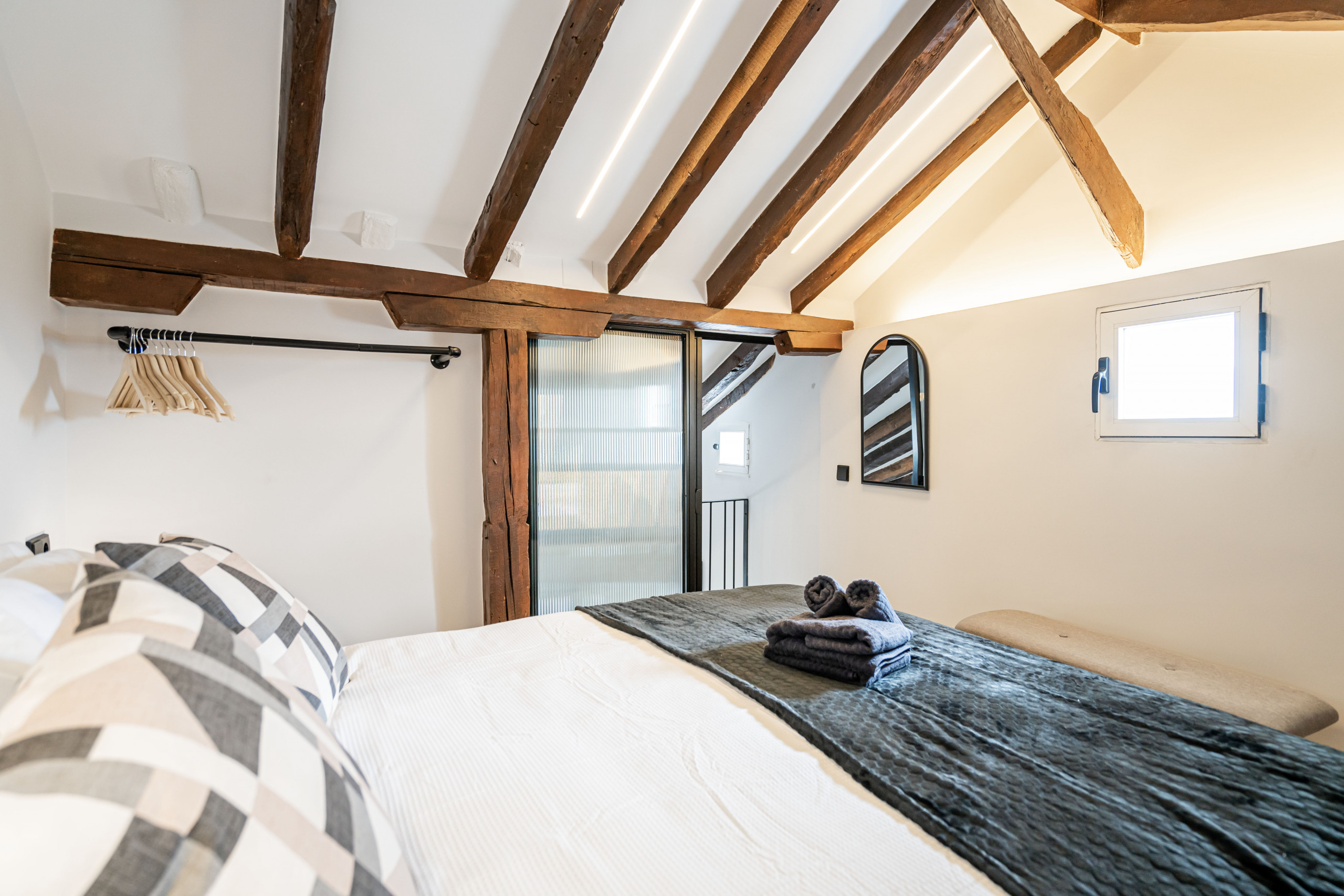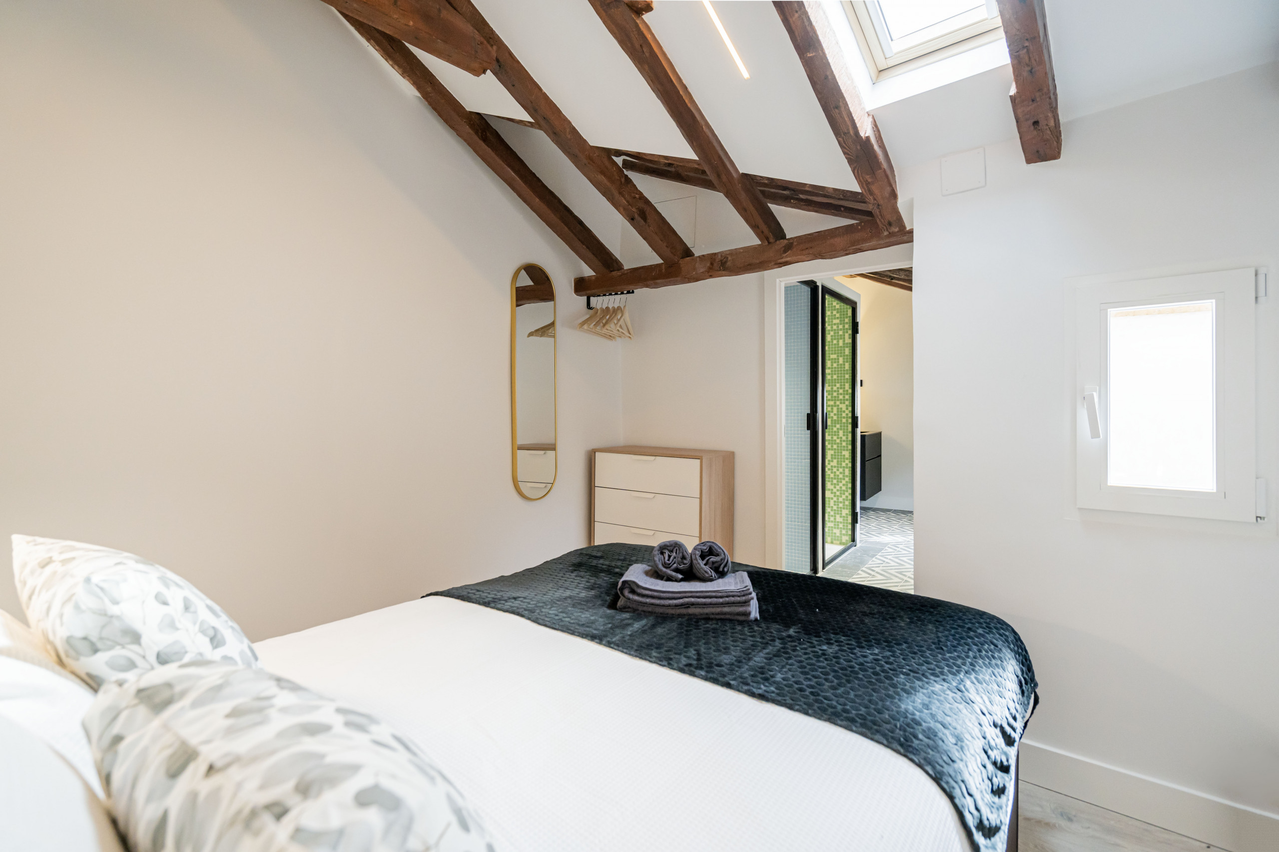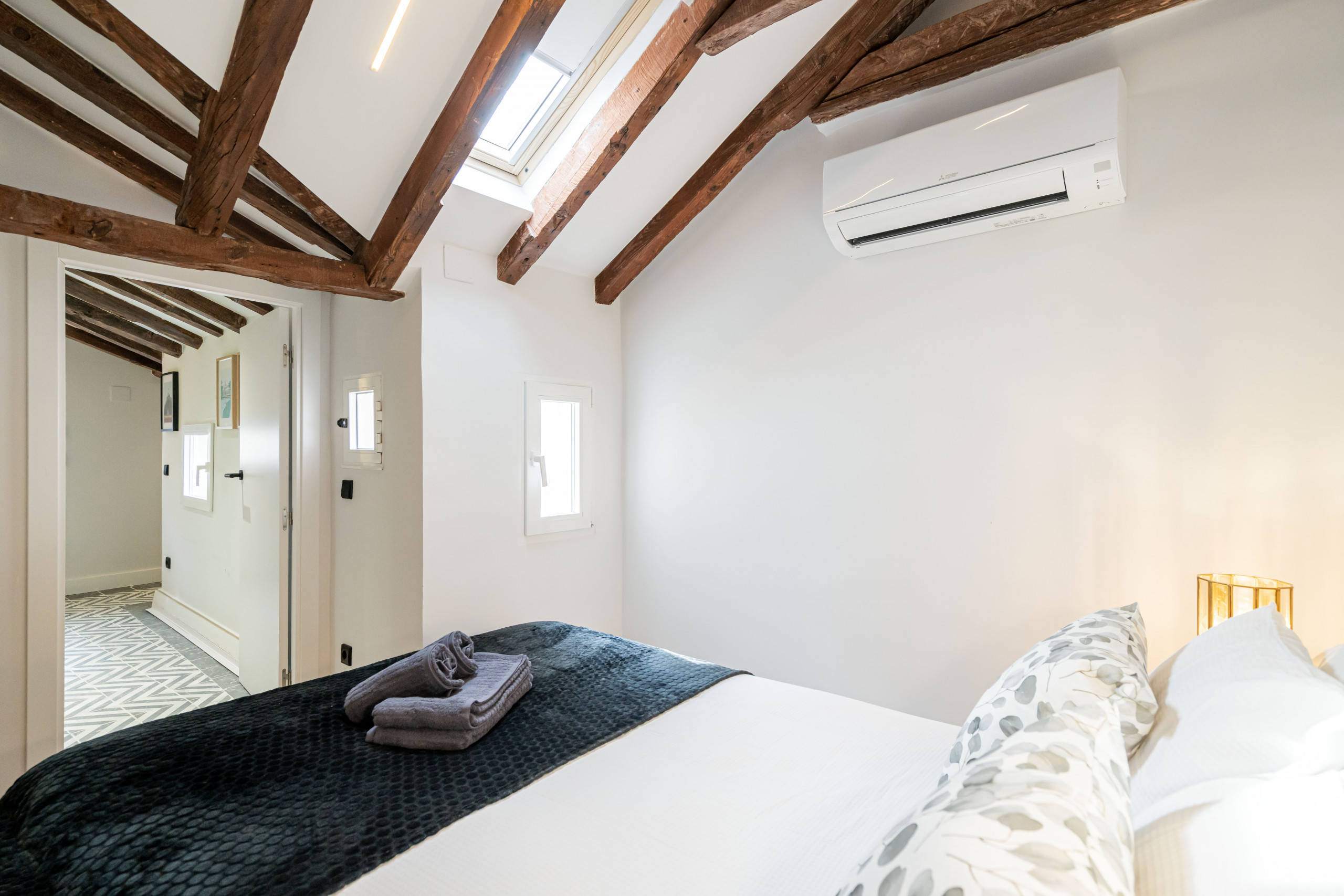 2 bedrooms with double beds, bright and with views of Madrid's rooftops.