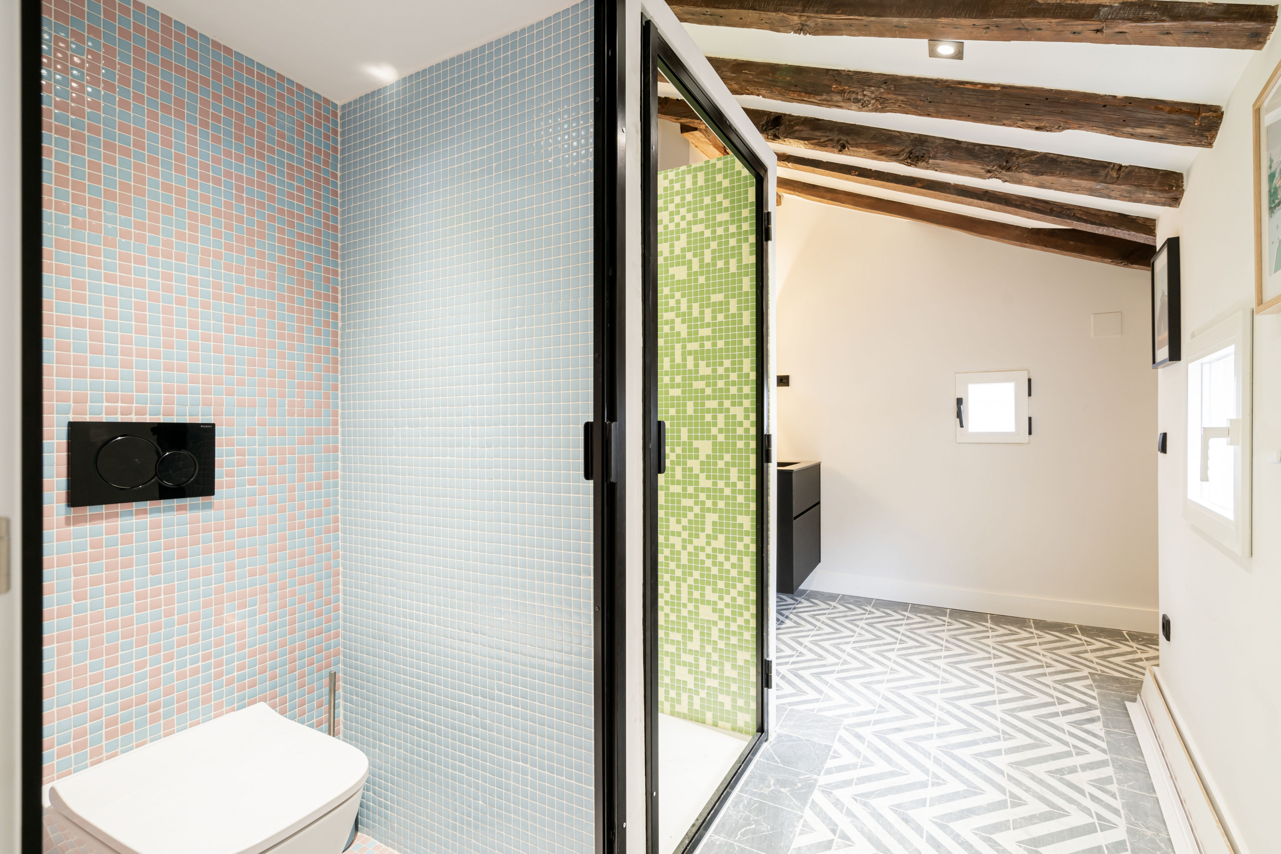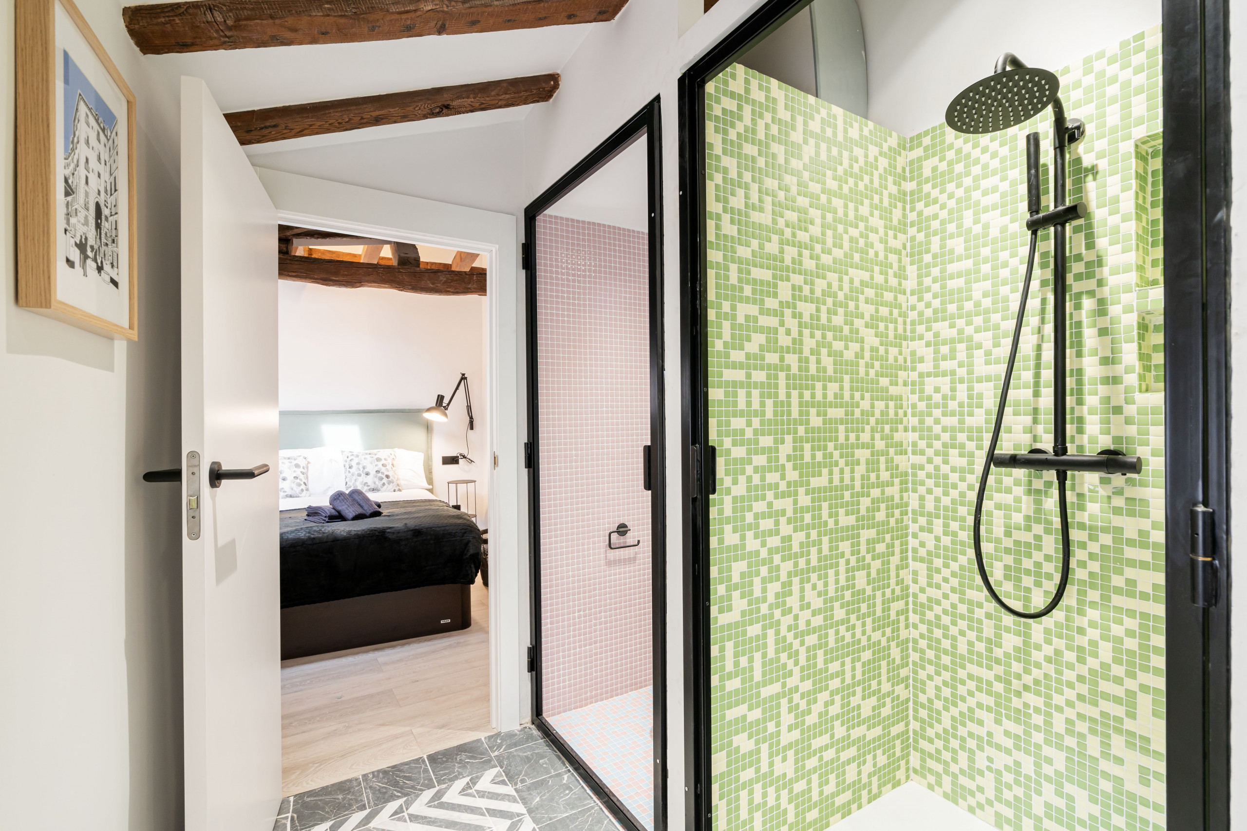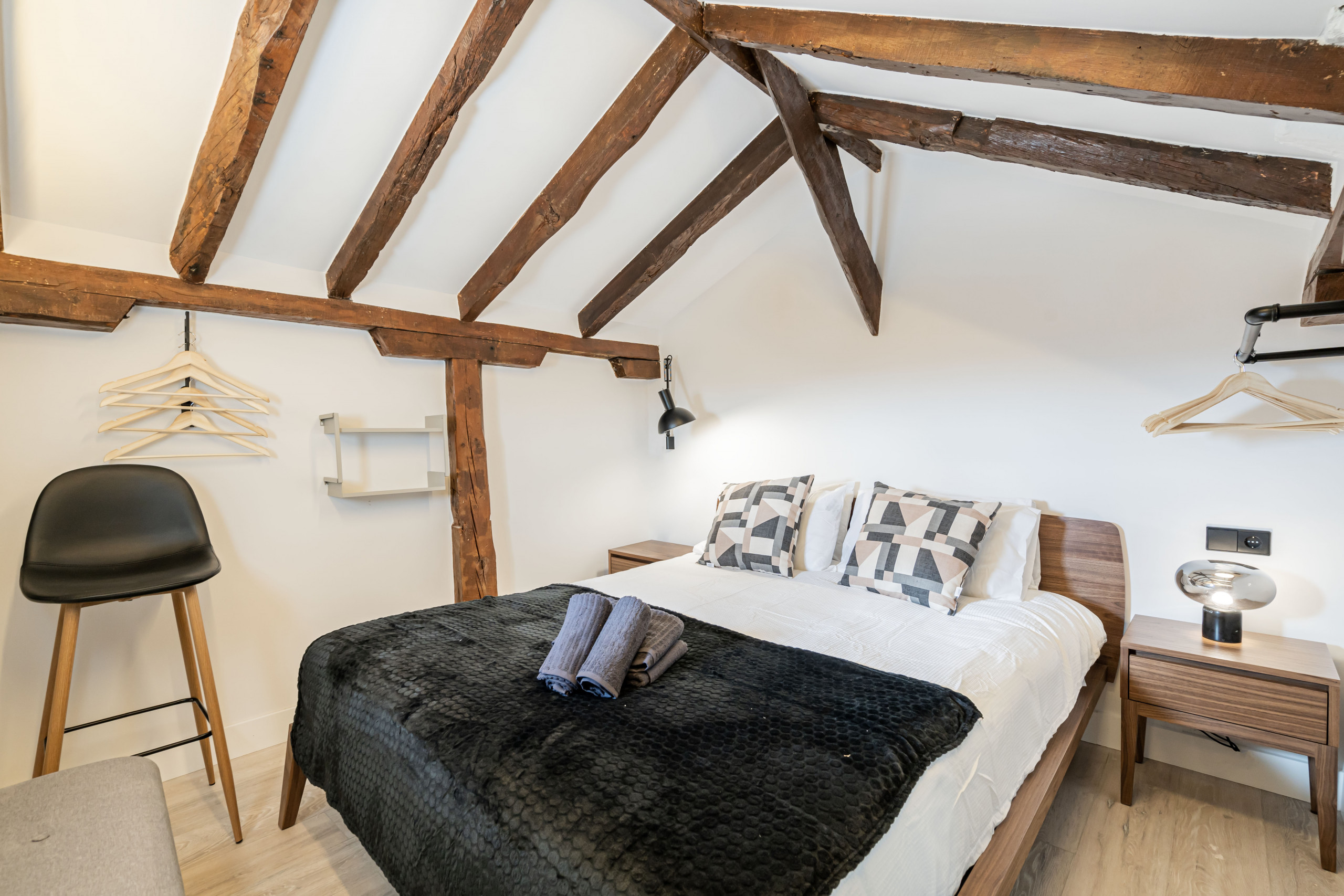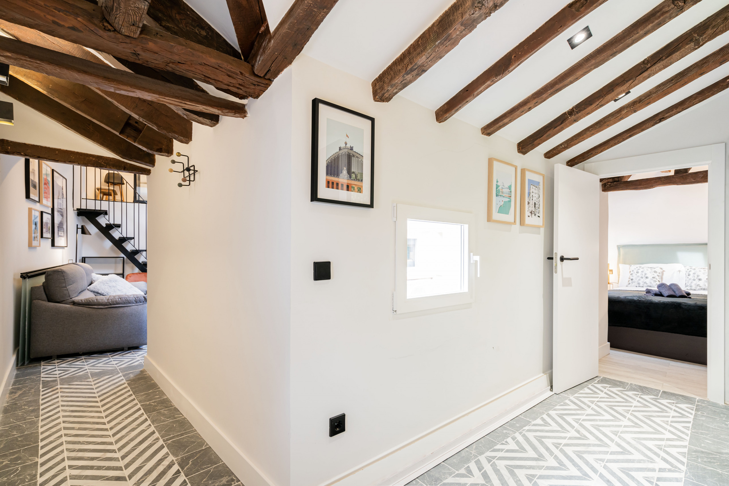 2 bedrooms with double beds, bright and with views of Madrid's rooftops.