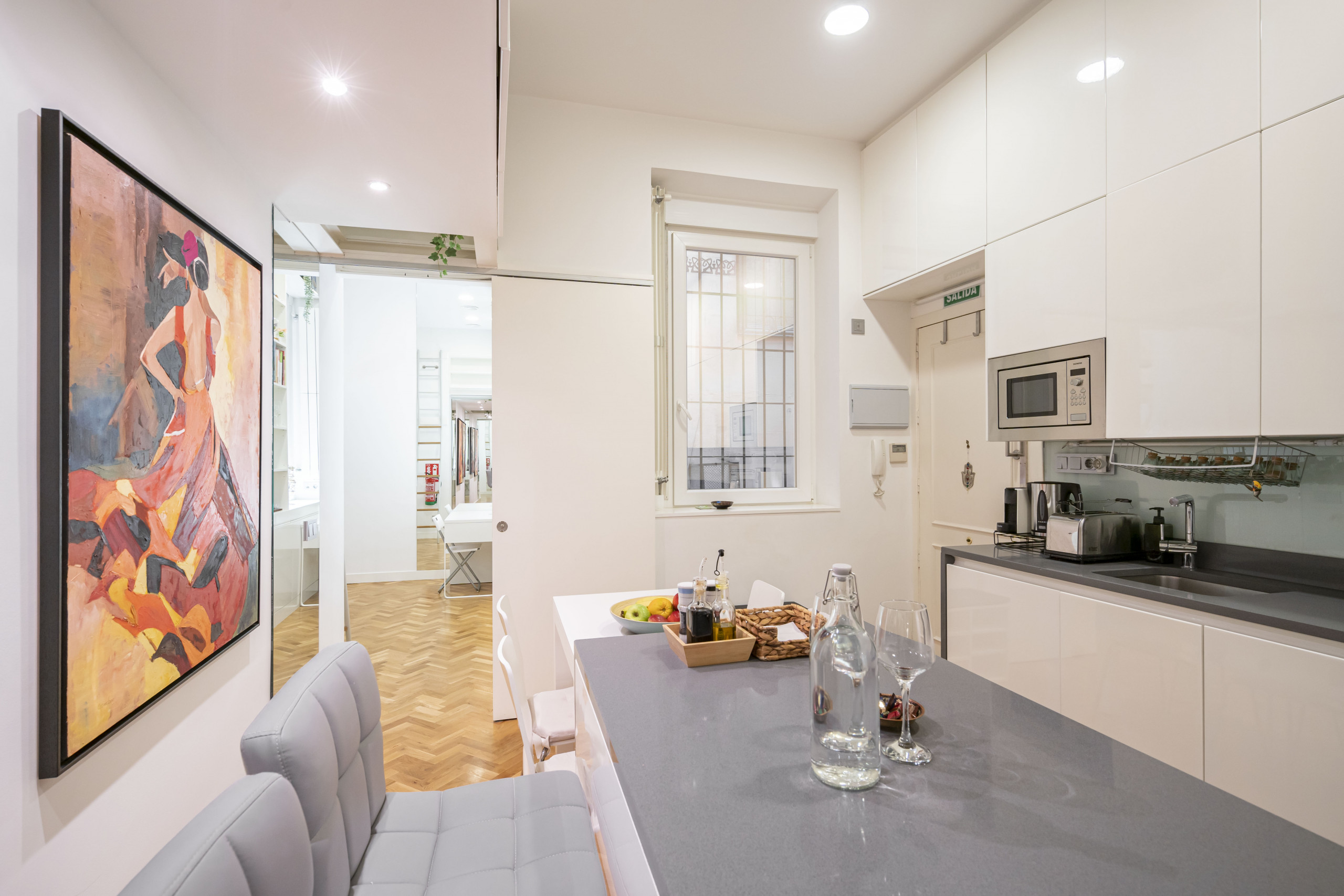 Temporary Rental Flat The life has its magical moment and magic is breathed in this beautiful apartment. We arrived in Madrid and in the most luxurious neighbourhood of the capital, where bankers, notaries, restaurants and businessmen established themselves throughout the 20th century.