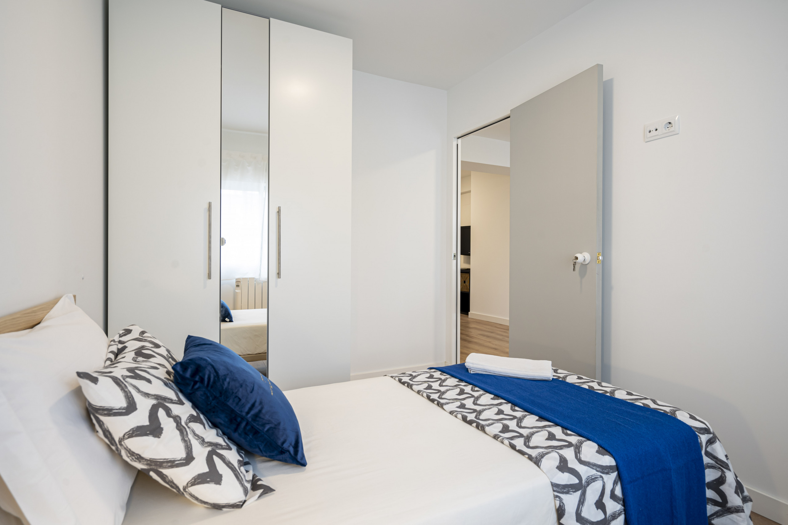 Temporary Rental Flat. Our house is a lovely 2-bedroom flat recently renovated in one of the most consolidated neighbourhoods in the northern area of Madrid. Next to the first shopping centre built in Spain in the 80s, the CC La Vaguada. The building was designed by César Manrique, who, true to his style, integrated natural environments within the building: rest areas with waterfalls and fountains and natural light entry from the ceiling. It was inaugurated on 24 October 1983, in an event presided over by the mayor Enrique Tierno Galván.