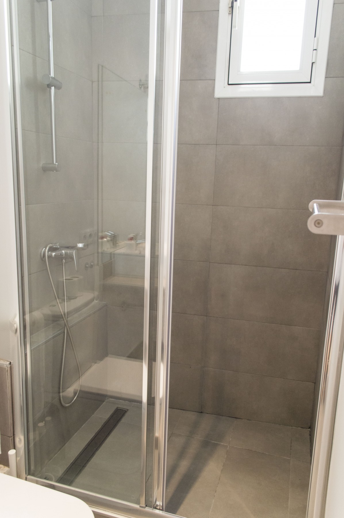 Wide clearance to shower, toilet