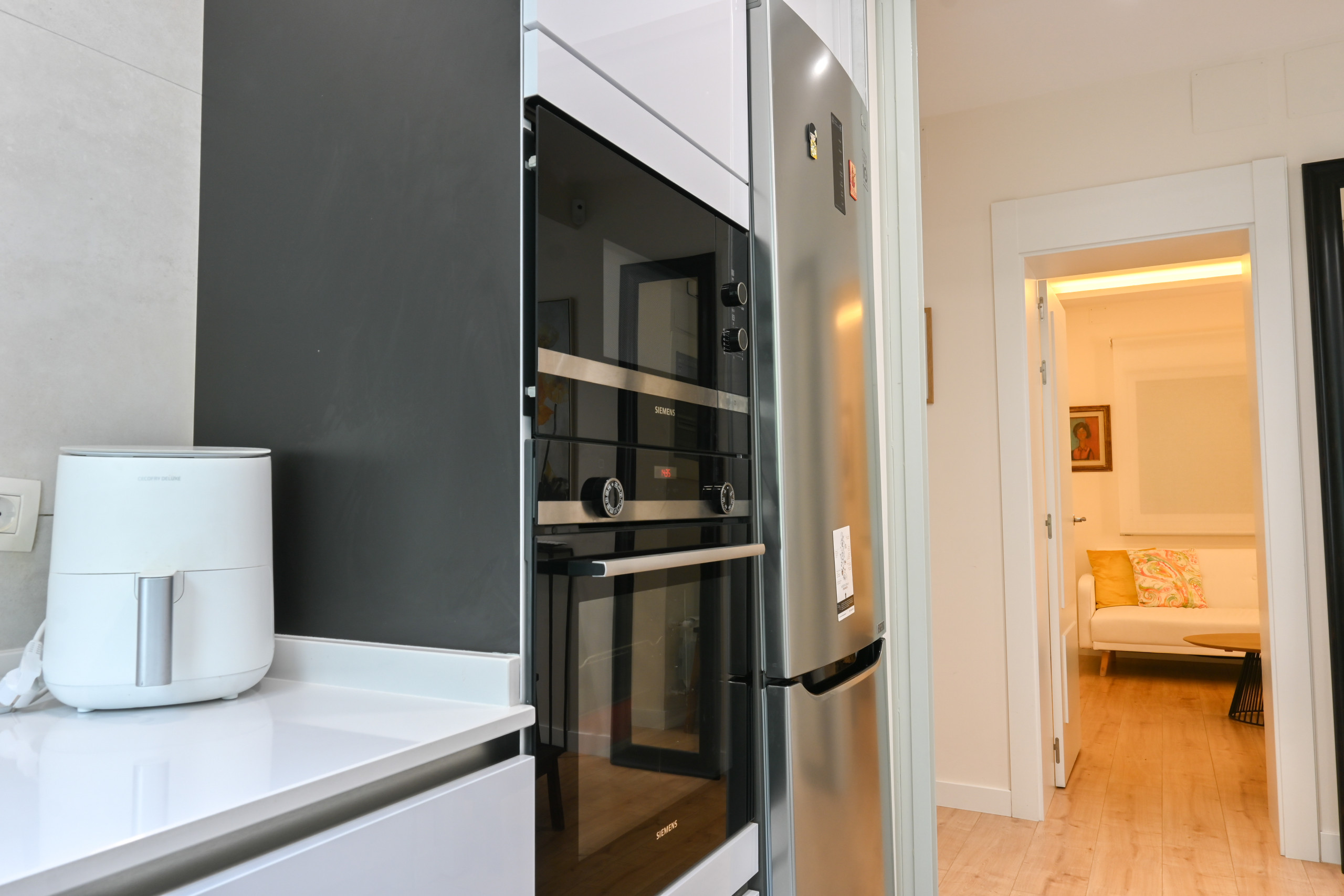 Keywords: luminous, spacious, welcoming, natural light, intelligent distribution, modern kitchen, special crockery, decorative details, free wifi, air conditioning, central heating, covered parking, privileged location, Santiago Bernabéu Stadium, Madrid attractions, wine lovers, good table.