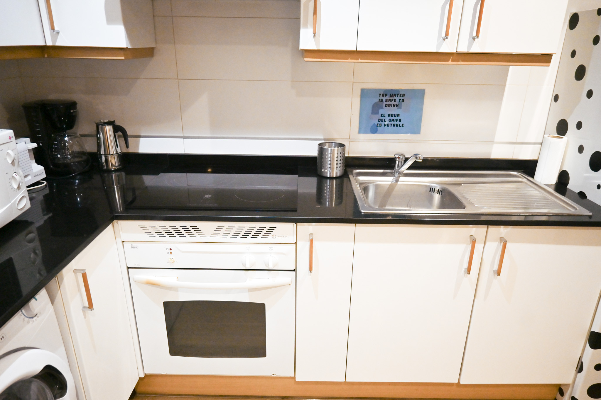 Upon entering, you will be greeted by a bright living room that combines comfort and functionality. Here you will find a comfortable sofa bed and a dining table that can seat all residents and their guests. The open concept design creates a welcoming and sociable atmosphere, ideal for family gatherings or dinners with friends.