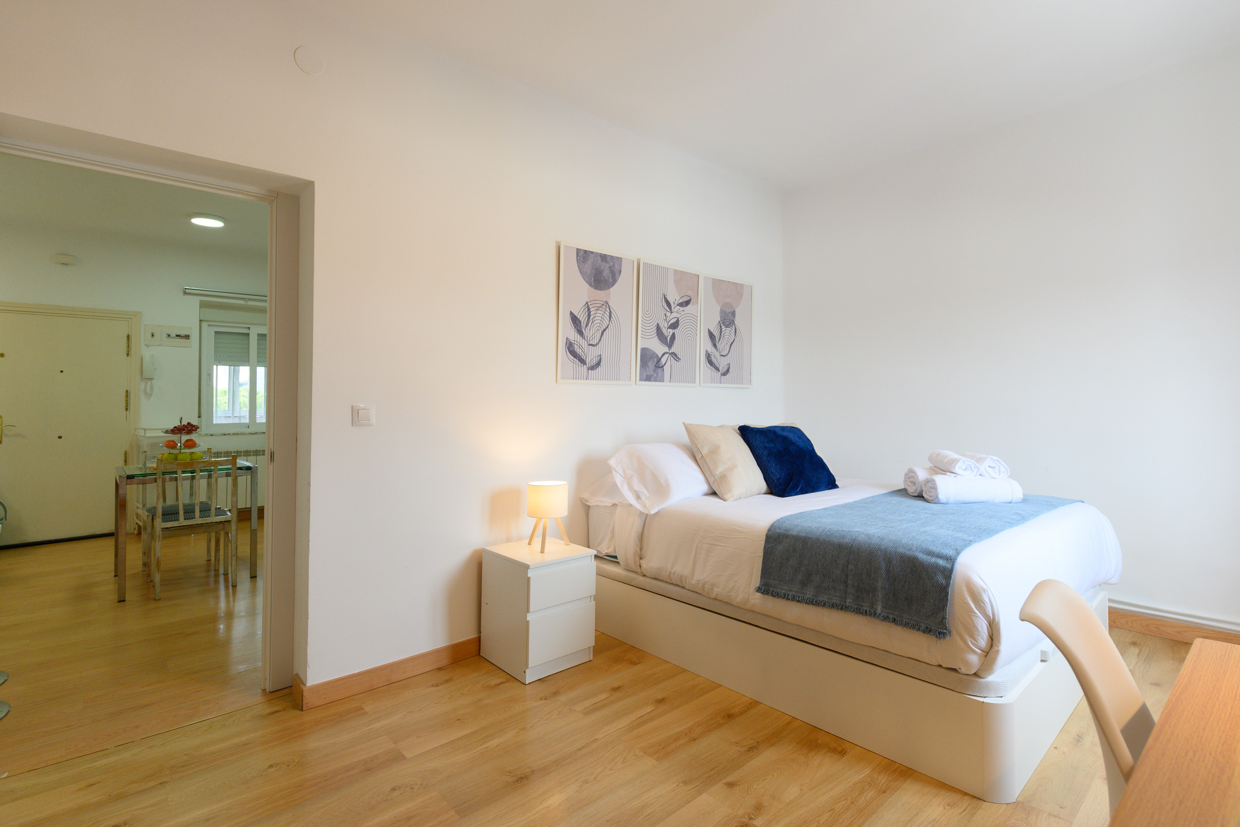 Temporary Rental Flat. Located on the iconic Paseo de la Castellana, opposite the 4 towers, this elegant and modern apartment offers a comfortable and cosy stay in one of Madrid's most exclusive areas. A few metres from Begoña metro station. Perfect for both business travellers and families or groups of friends, the flat has been designed to combine comfort, functionality and a contemporary style, guaranteeing a unique experience in the capital.