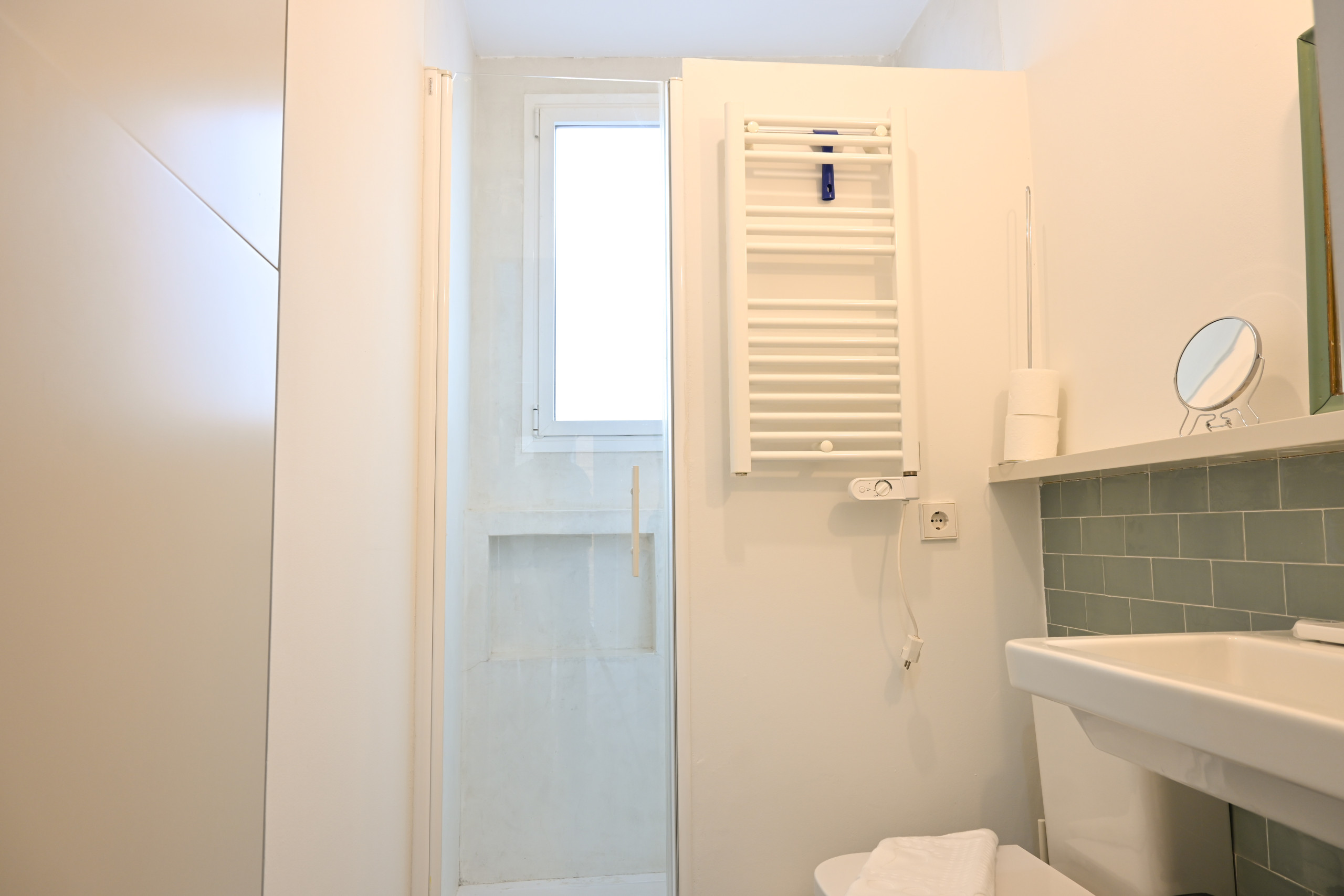 From the living room, you can access the balconies that overlook the lively street, where you can enjoy the urban atmosphere. The balconies are the ideal place to enjoy a cup of coffee in the morning or relax with a glass of wine in the evening.
