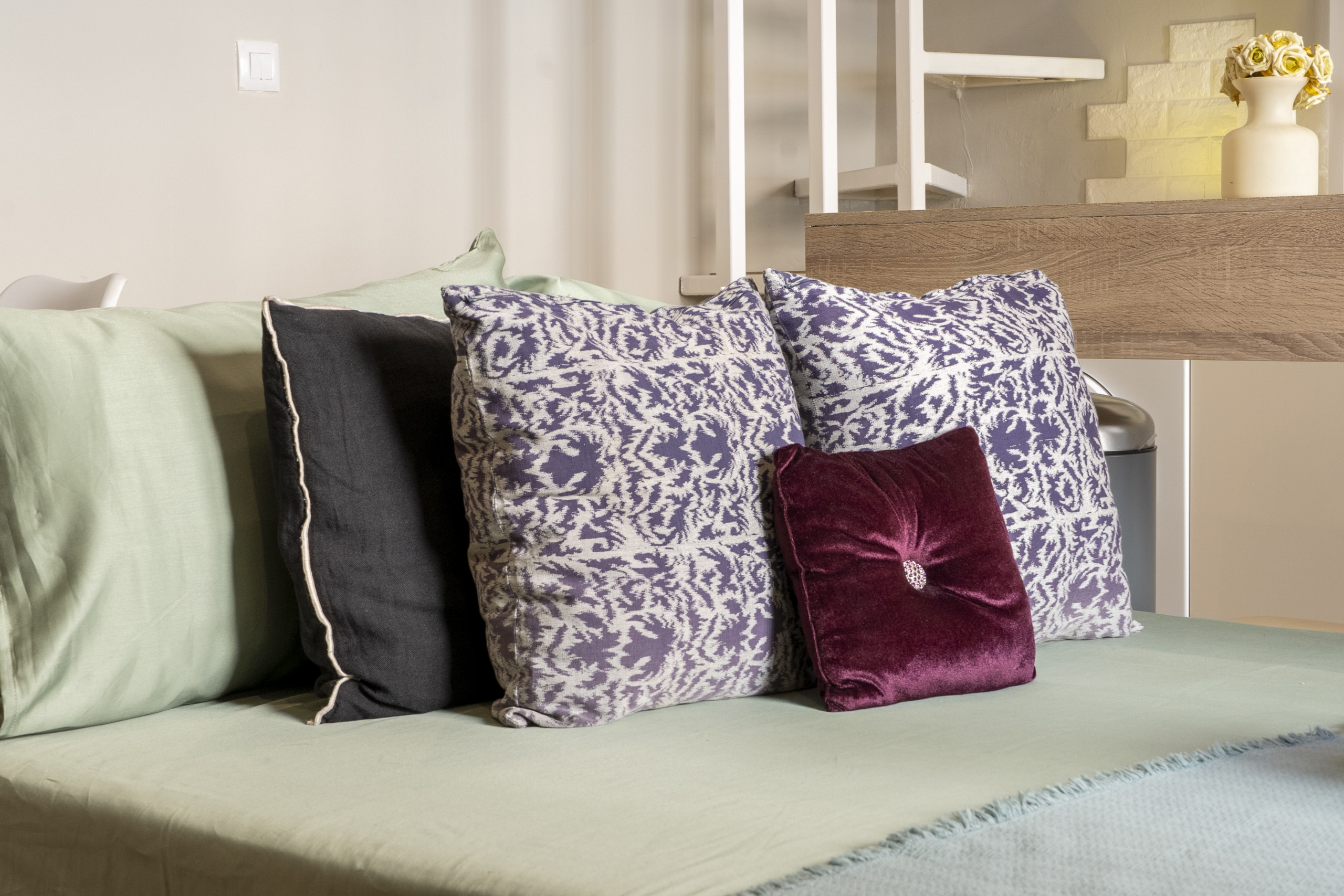 The ground floor is designed to offer comfort and functionality in daily life. The living-dining room is a modern and welcoming space, equipped with a sofa bed, ideal for receiving guests or for use as an additional rest area. The arrangement of furniture and decoration creates a warm and comfortable atmosphere.