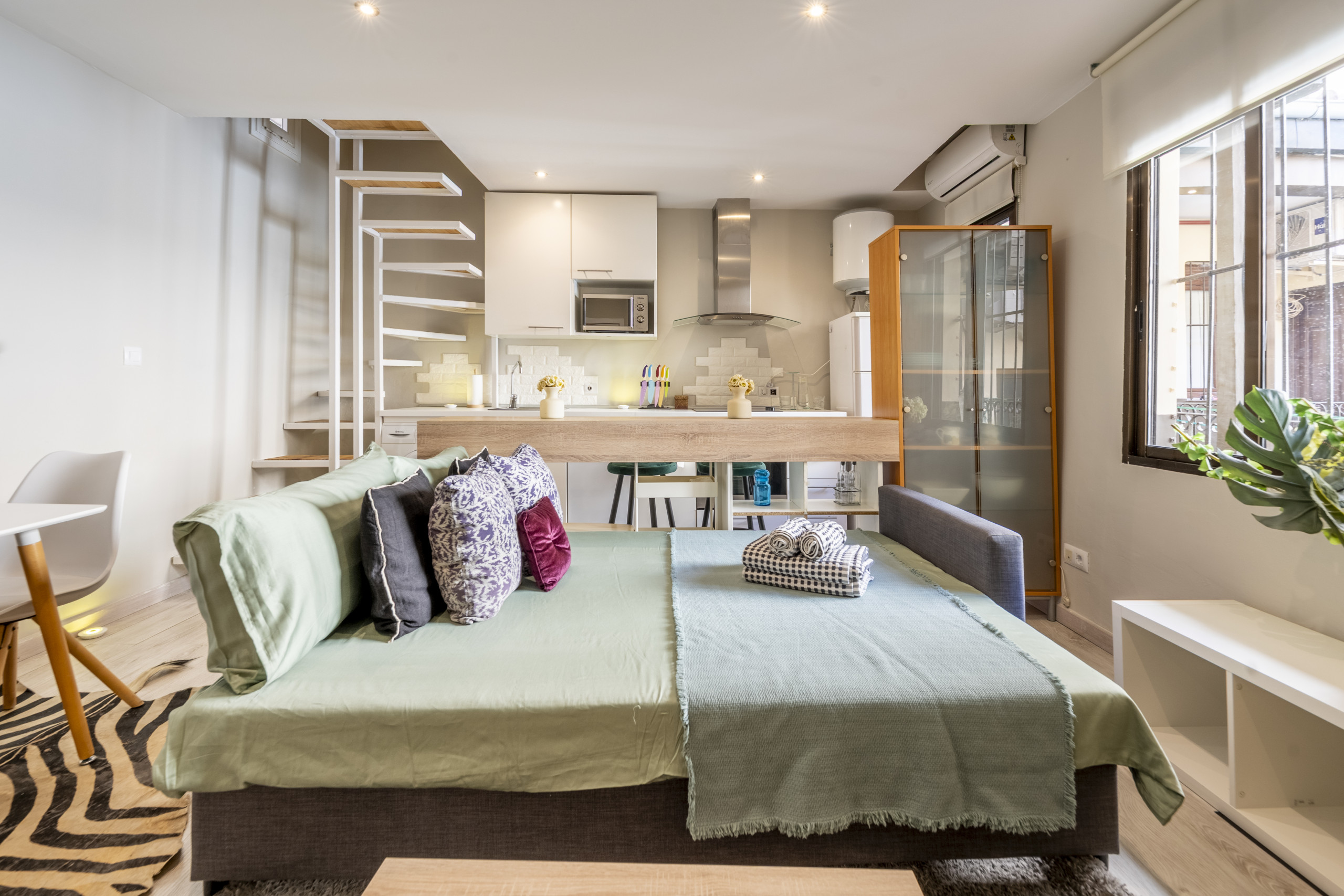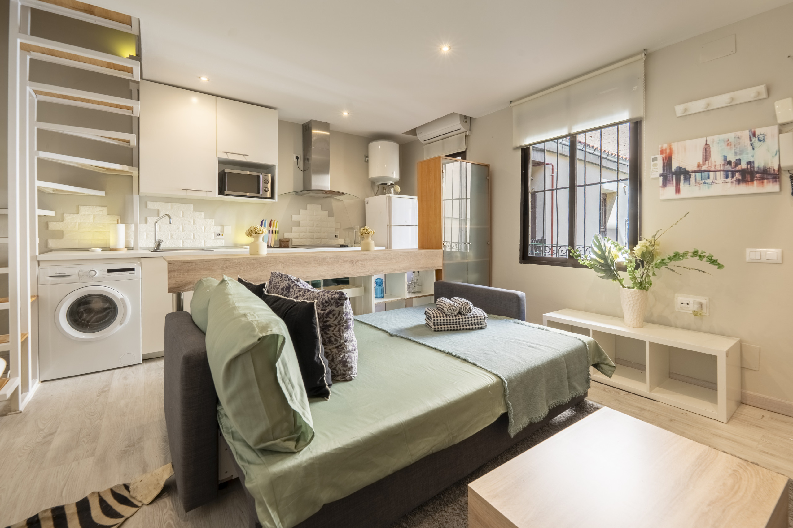 Temporary Rental Flat. Located in a central and quiet area of Madrid, this interior duplex is the perfect option for those seeking comfort, functionality, and a well-thought-out layout. With spaces designed to make the most of every corner, this home combines comfort and practicality in a welcoming environment.