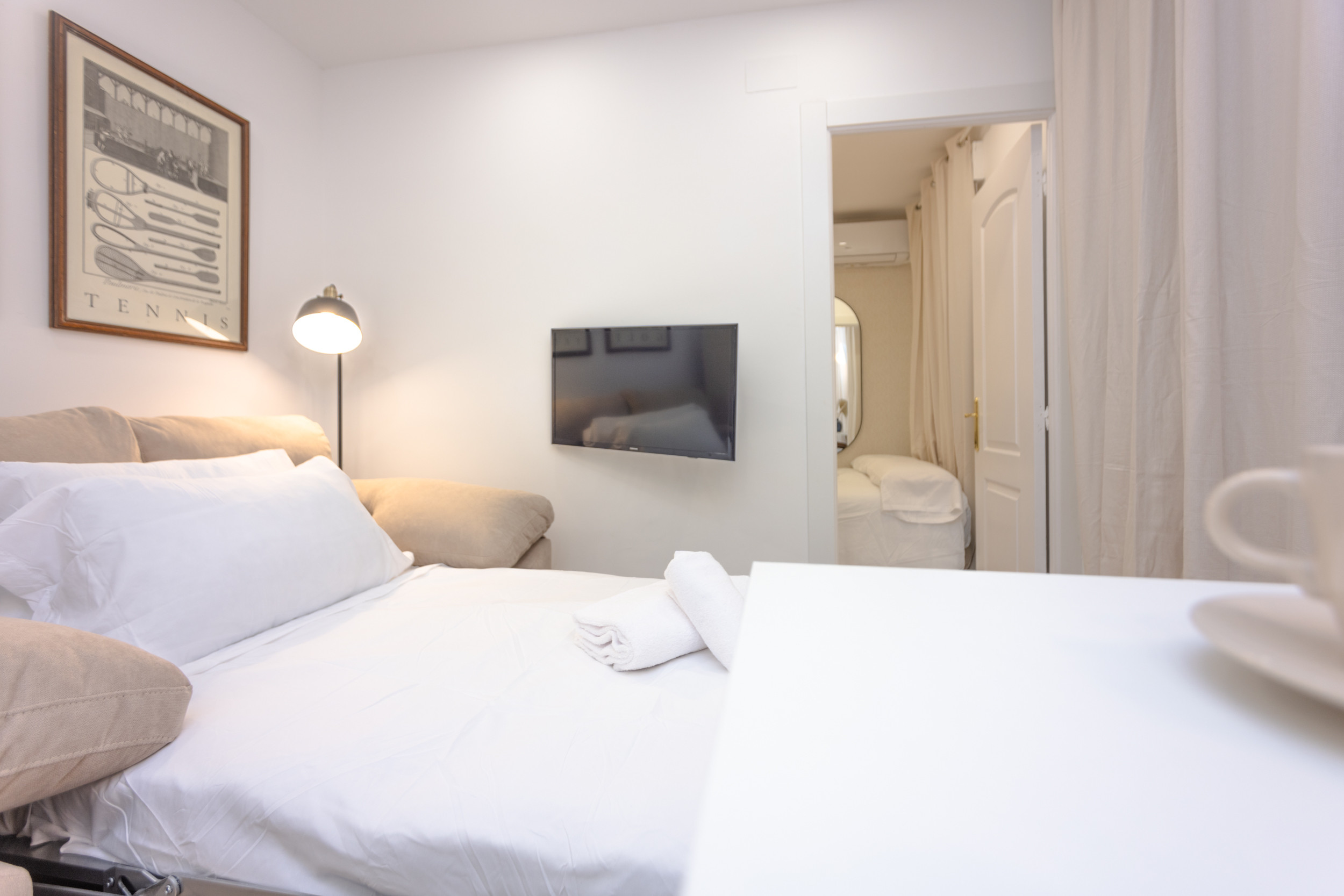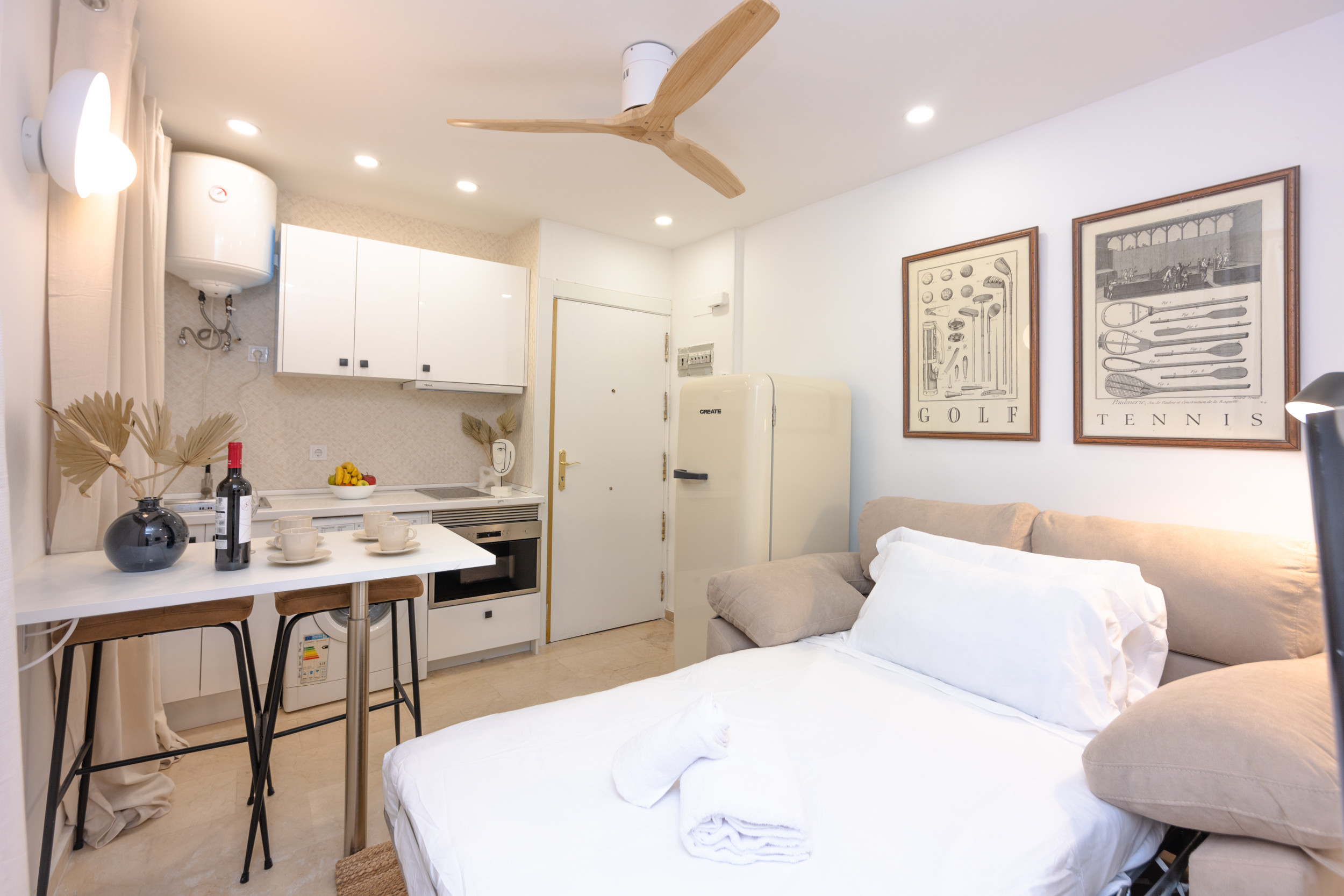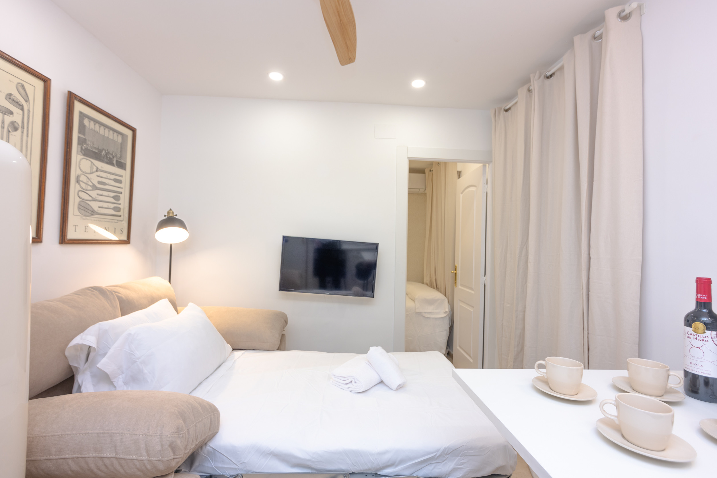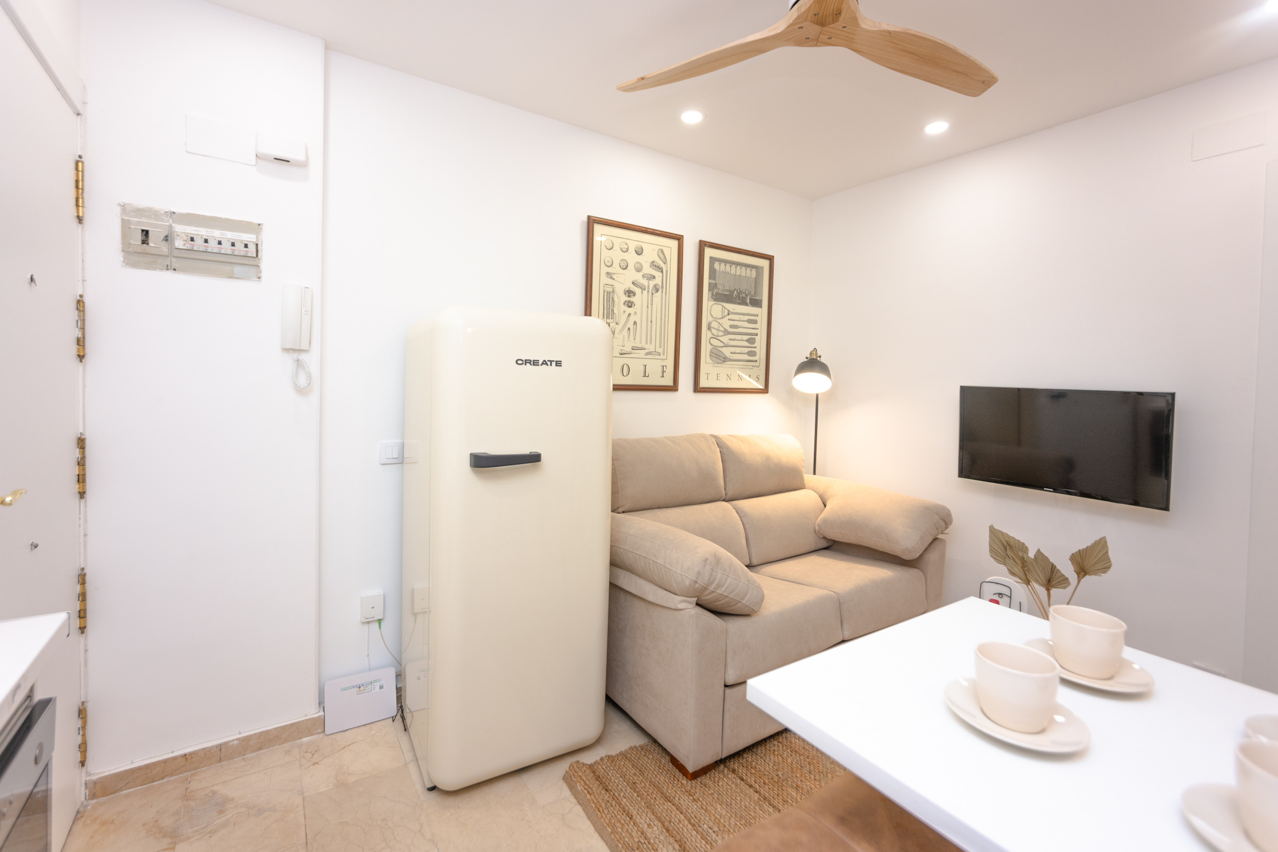 Temporary Rental Flat. Welcome to our one-bedroom apartment in the heart of the Vallehermoso neighbourhood. This cosy apartment is located on the first floor of a historic building with a privileged location in the area. It features carefully and elegantly designed decor that will make you feel at home from the moment you walk through the door.