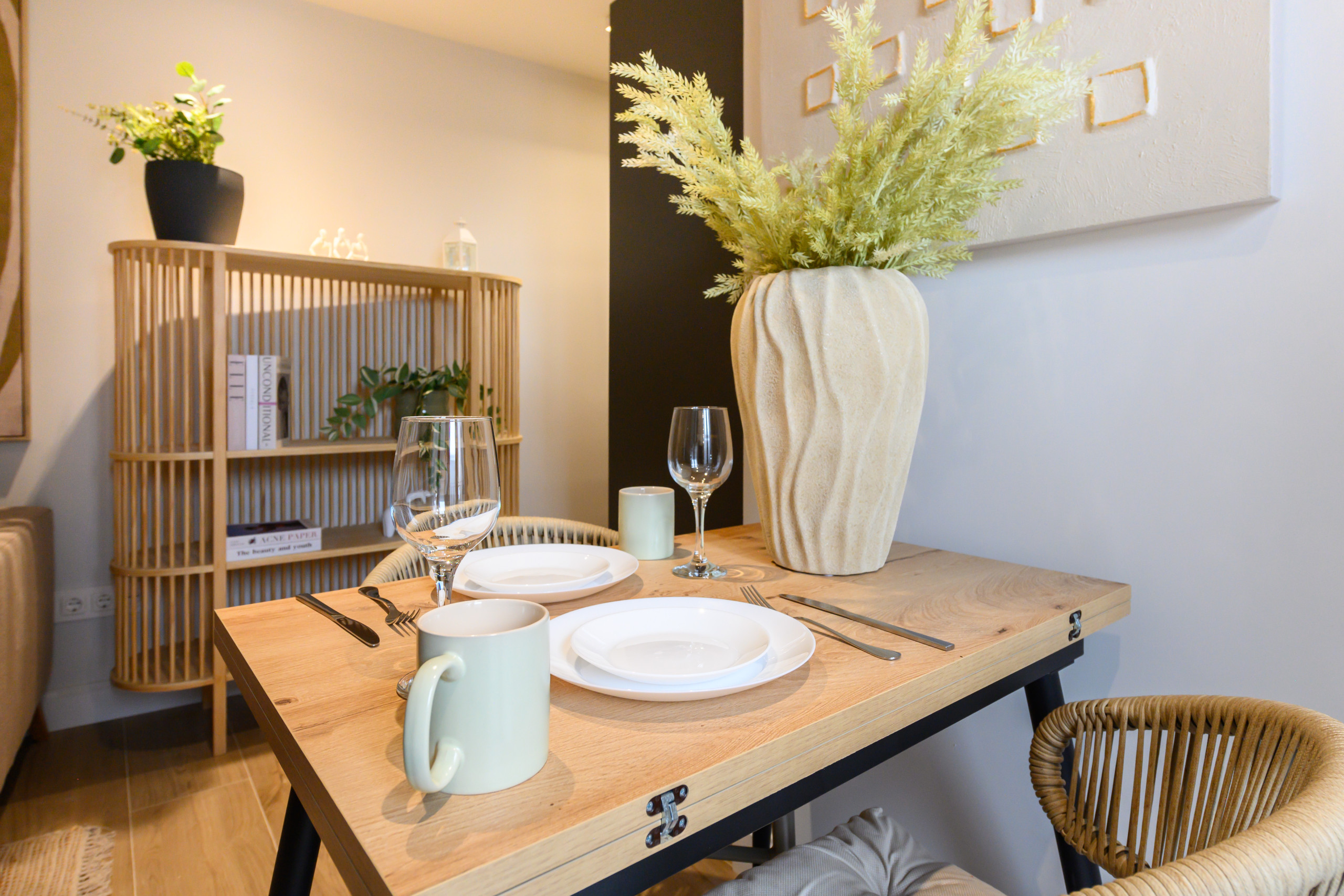 Upon entering the flat, we find a living-dining room, perfect for enjoying both moments of relaxation and meals or gatherings with friends. The space combines practicality and comfort, creating a welcoming atmosphere that invites you to feel at home from the first moment.