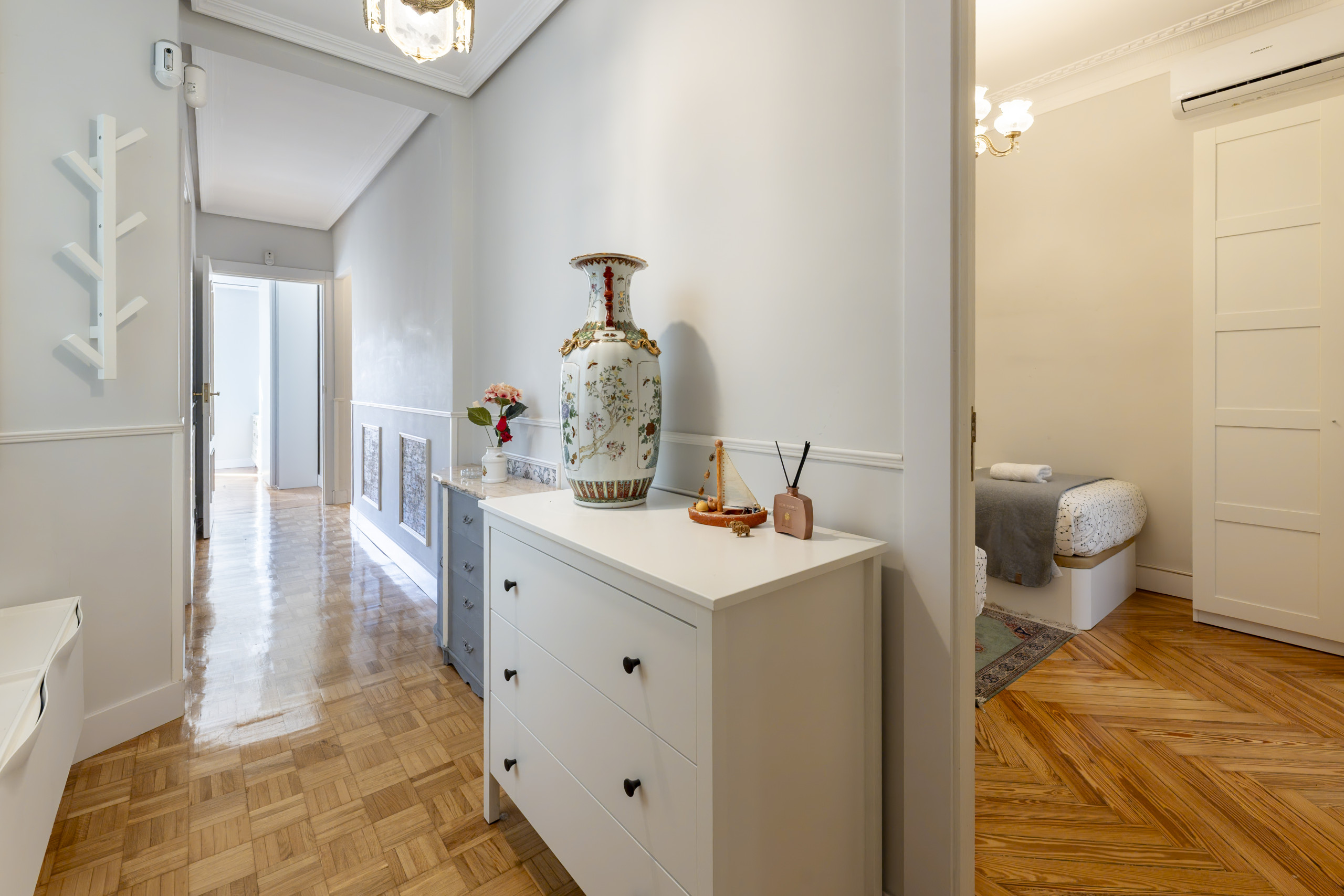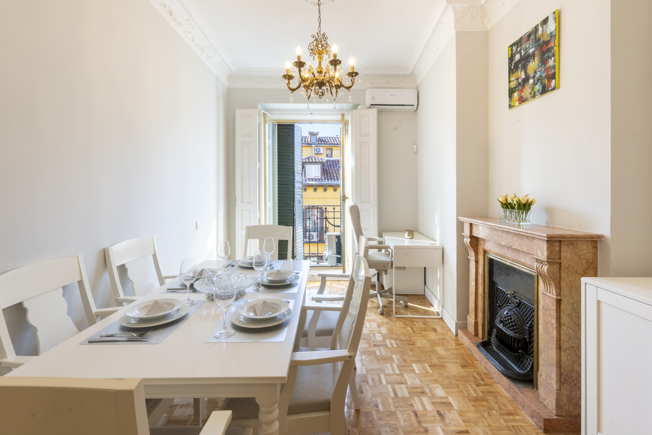 Temporary Rental Flat. This elegant three-bedroom flat offers an unparalleled stay for up to five guests. Its privileged location in the La Latina neighbourhood allows you to enjoy the Madrid essence, just a few steps from Plaza Mayor, surrounded by history, culture and a vibrant gastronomic offering.