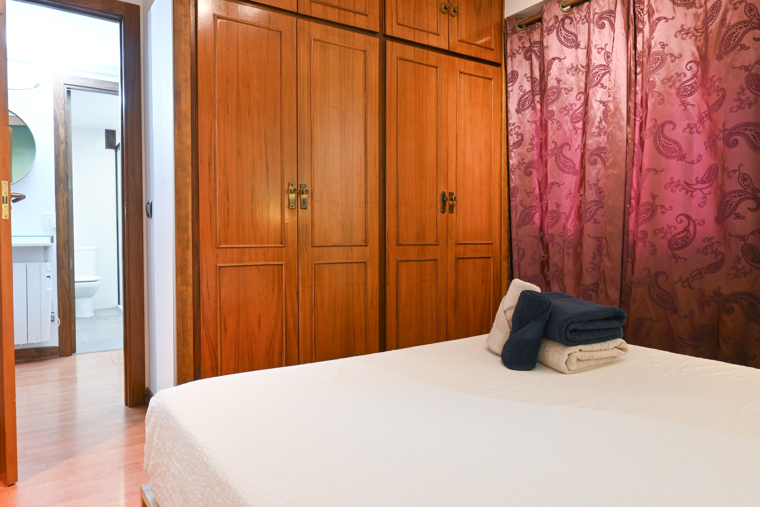 The master bedroom is equipped with a double bed, providing a warm and welcoming environment for rest. The decoration with soft tones brings a sense of serenity, while the functional furniture includes spacious wardrobes for storage. The second bedroom, smaller but equally comfortable, features a single bed, ideal for a child or a guest, or even to be used as an additional work room or personal study.