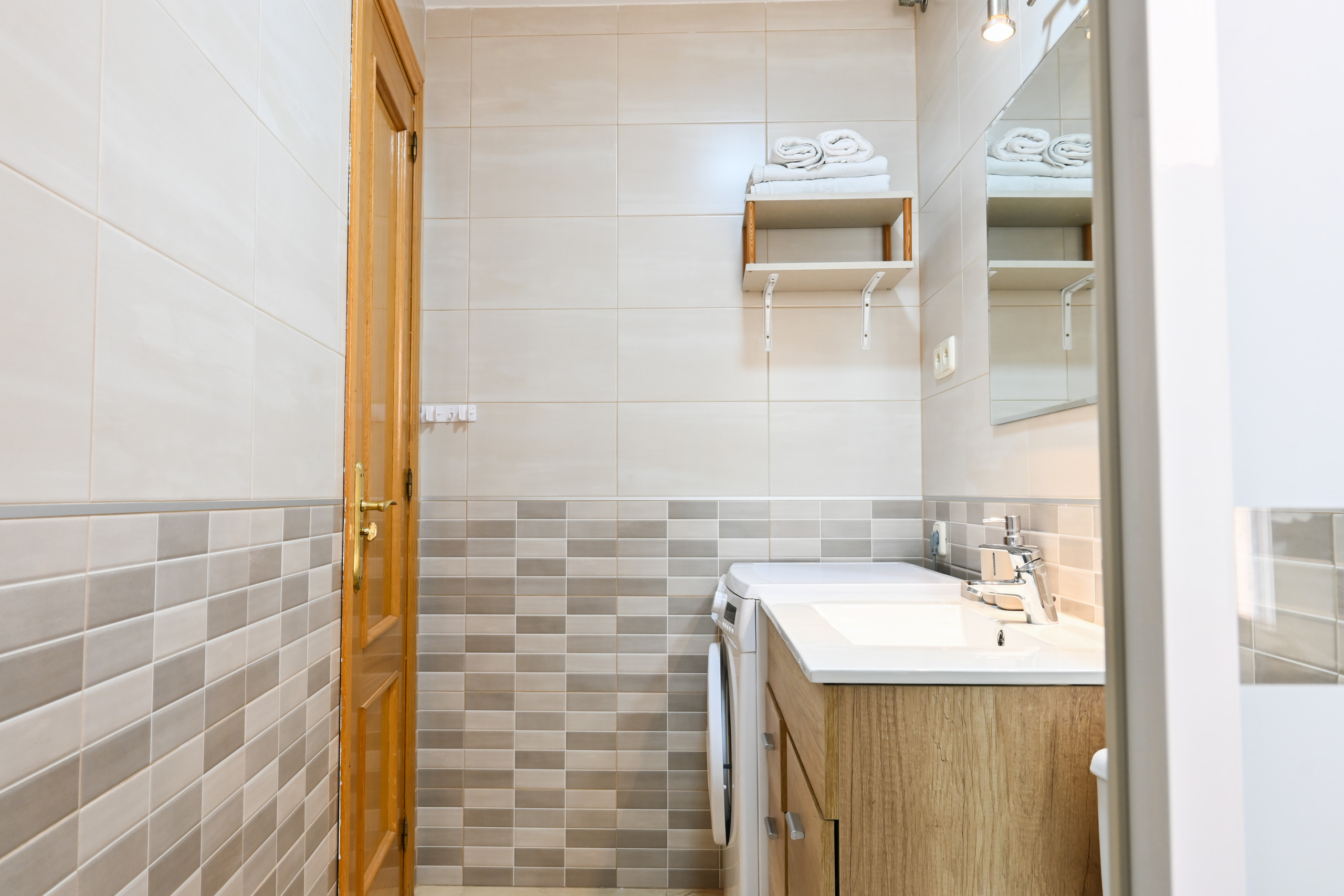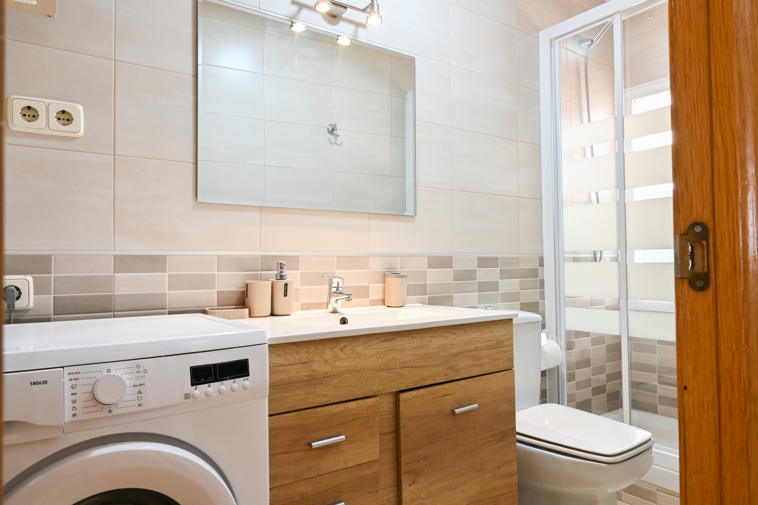 - The bathroom is bright and modern, equipped with a shower tray that offers a refreshing experience. Its high-quality finishes and efficient design ensure that you have everything you need in an elegant and functional environment.