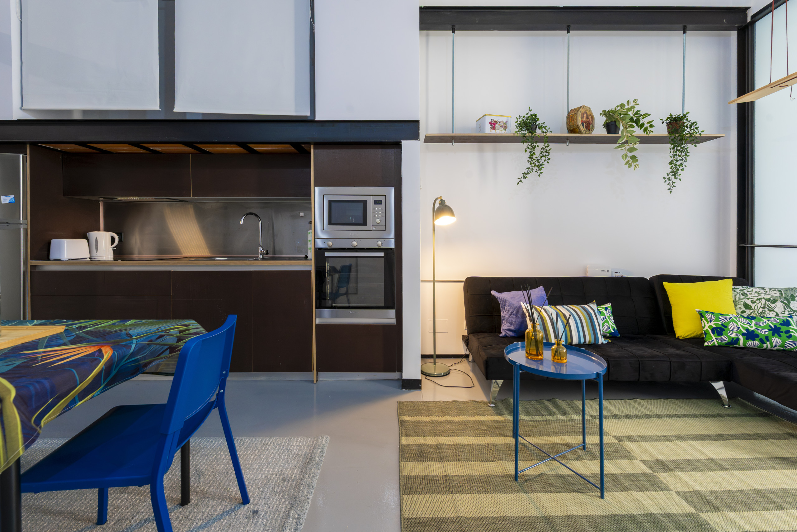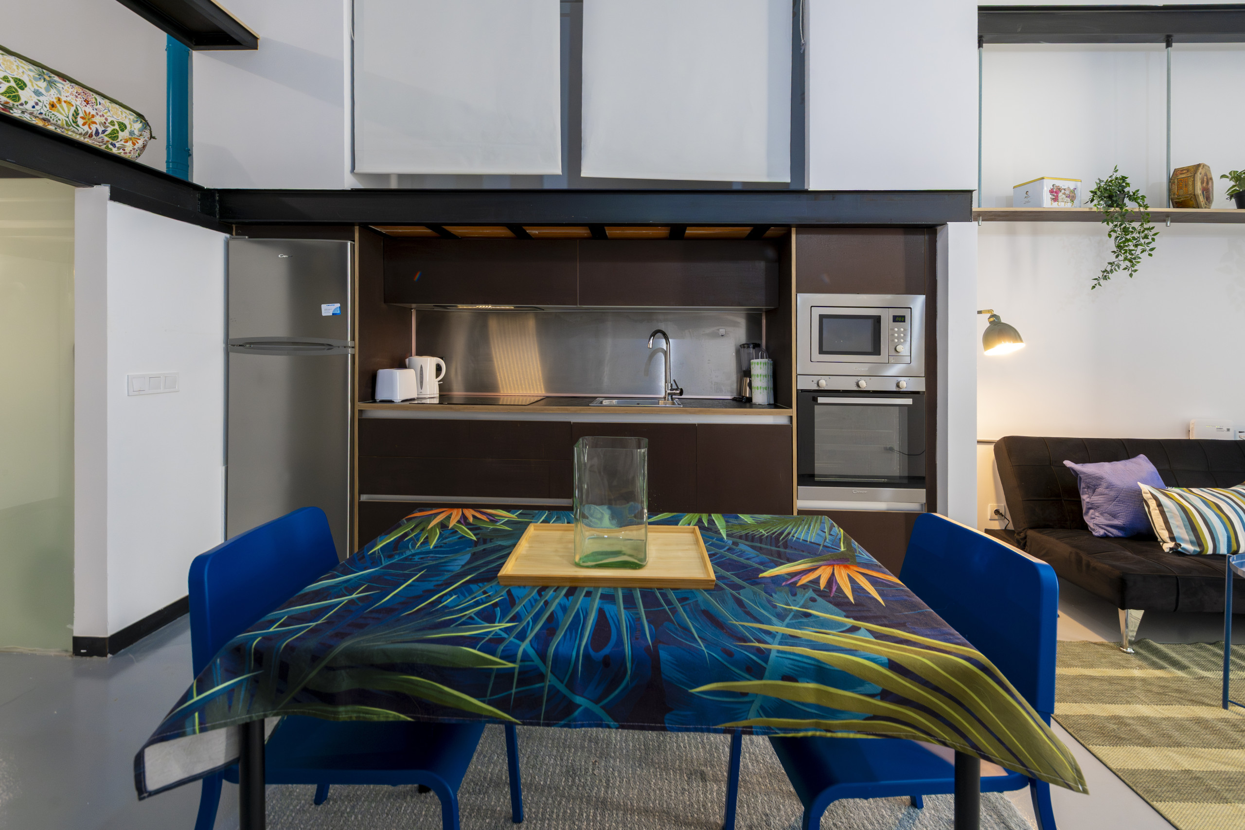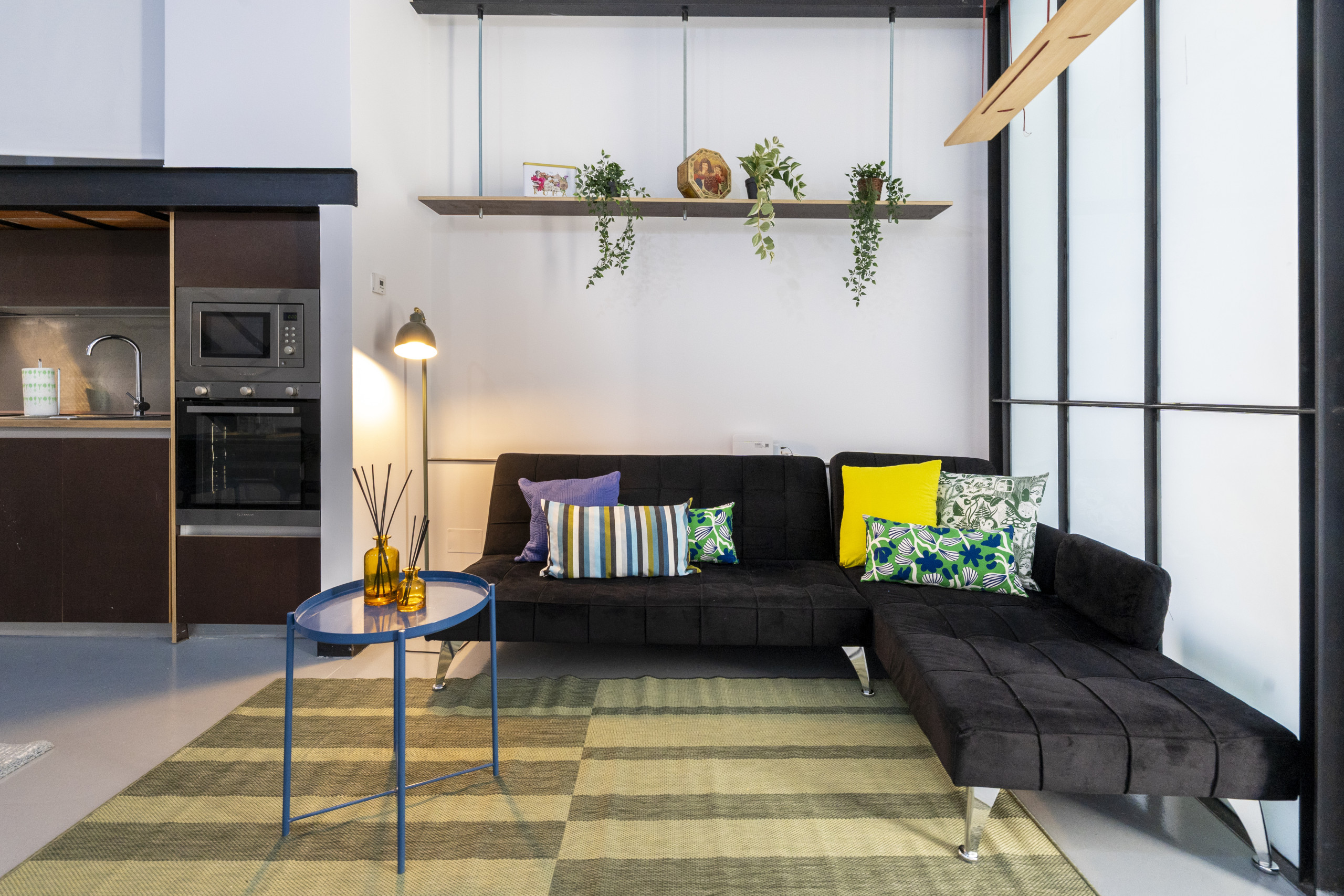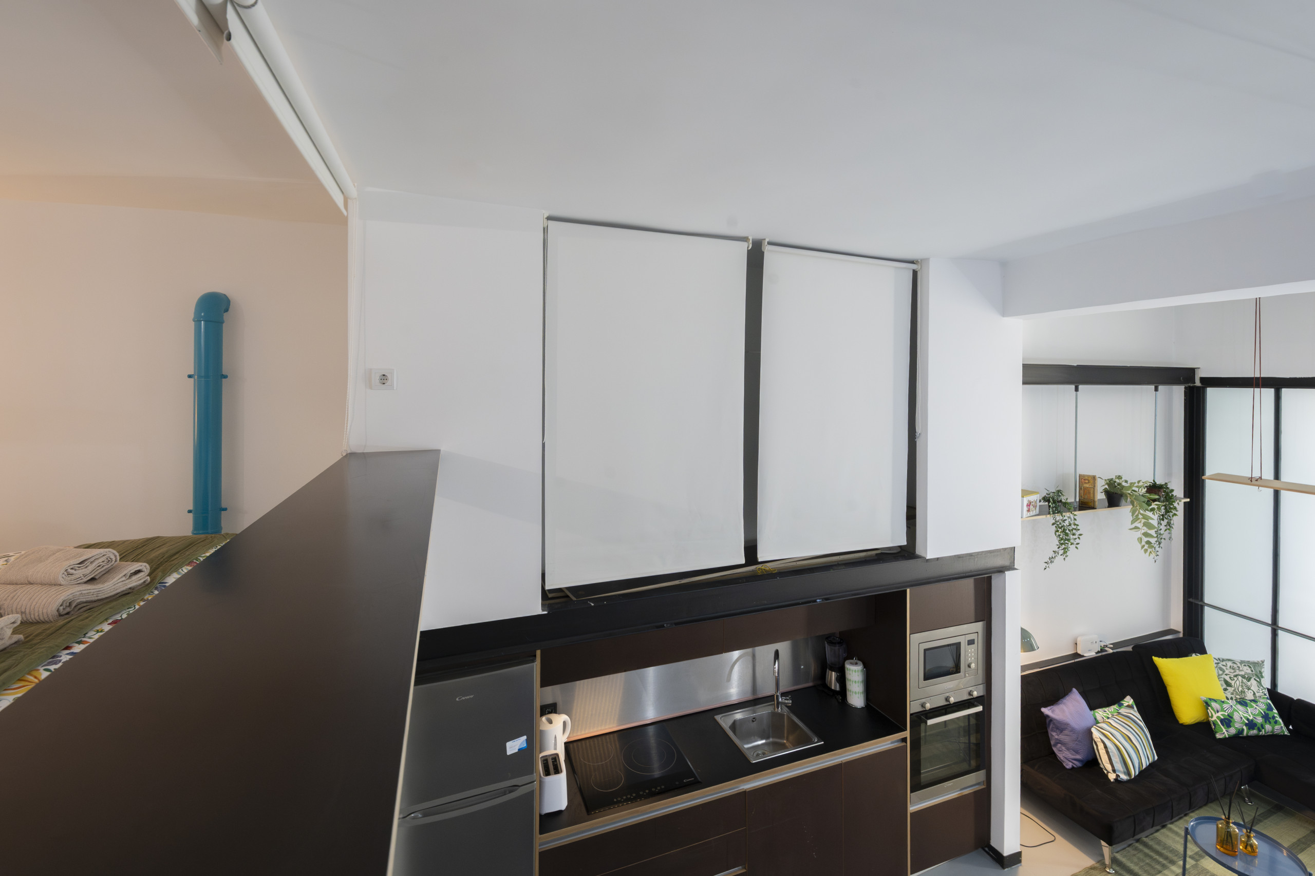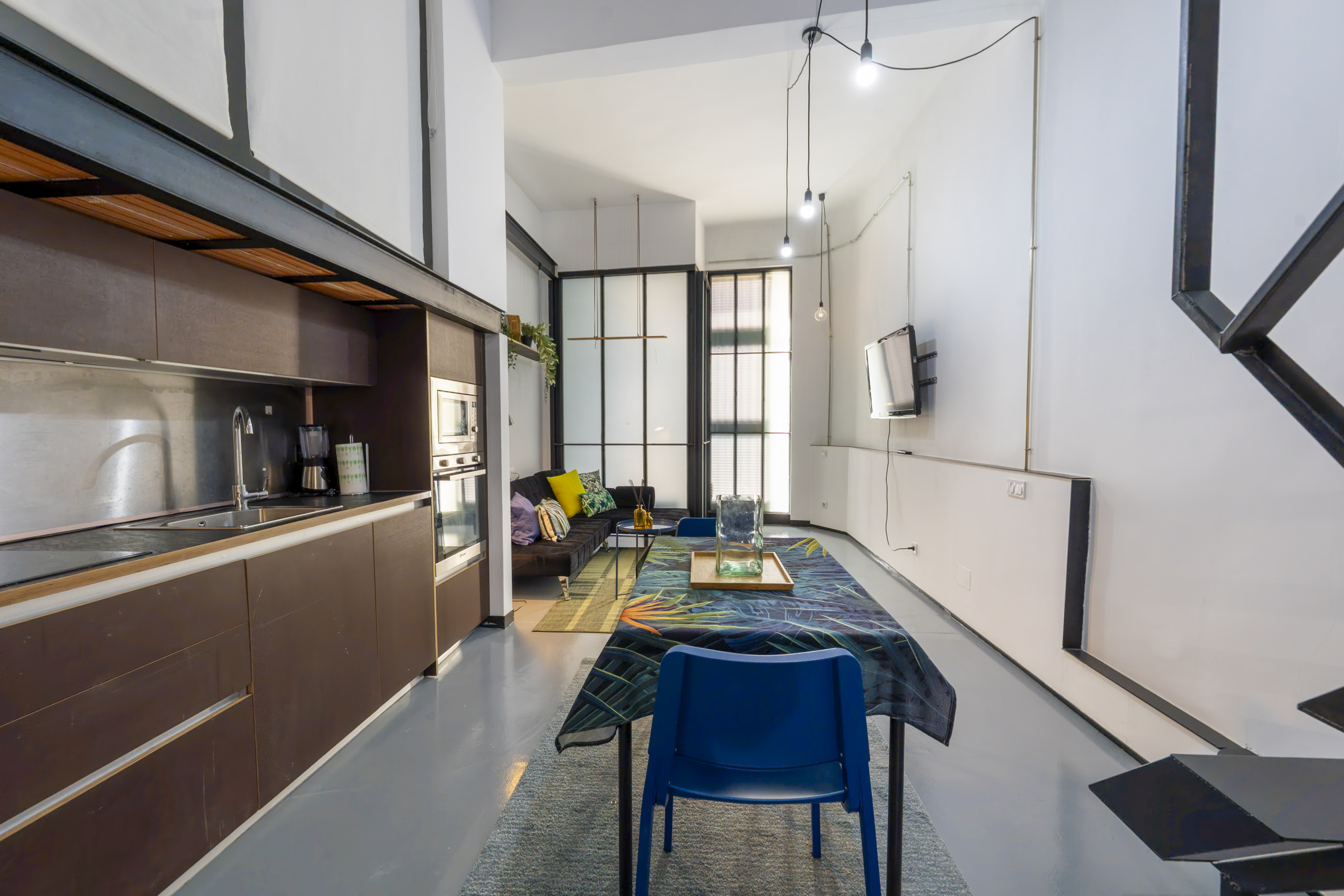 Temporary Rental Flat. This property stands out for its marked industrial style, blending modernity and functionality in an urban-inspired environment. High ceilings and exposed beams enhance its loft-like character, providing spaciousness and charm.