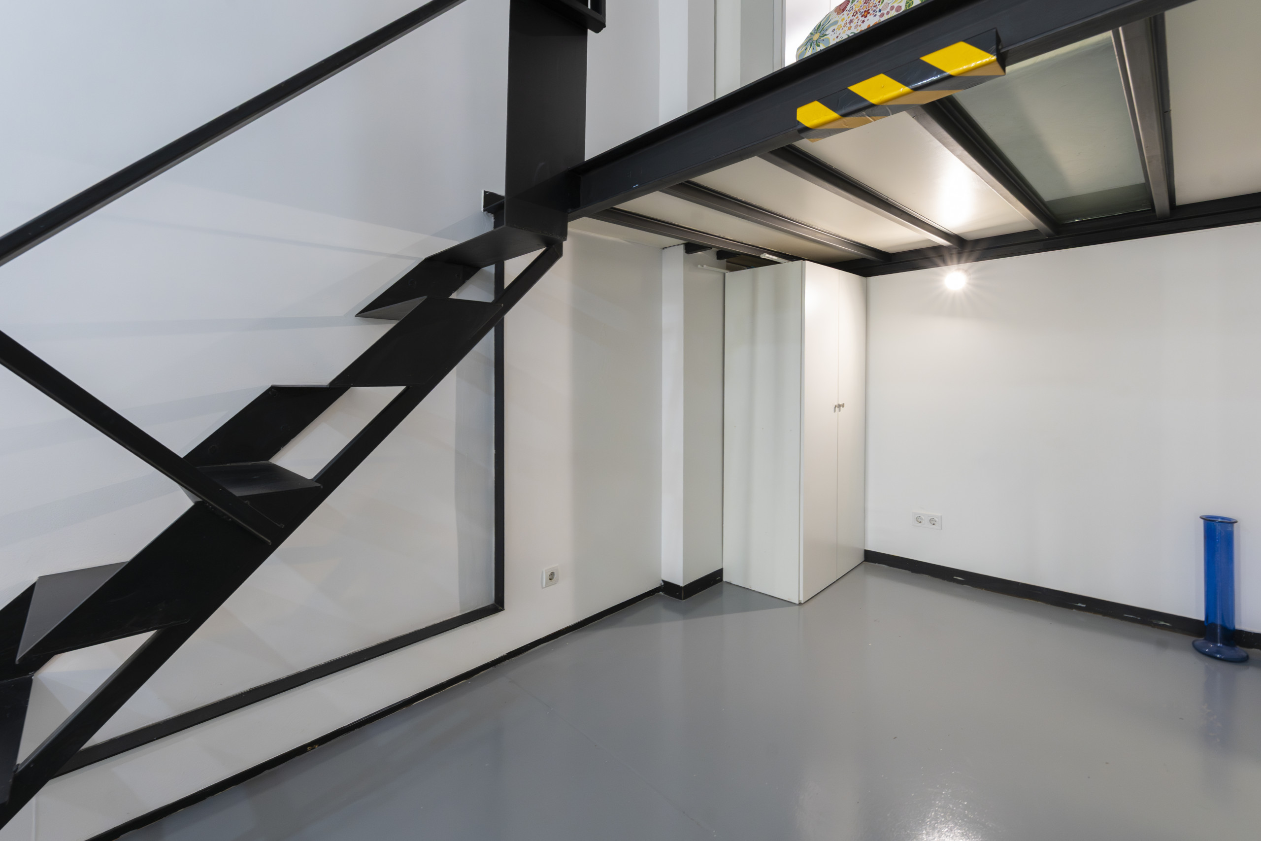 The main bedroom is located in a mezzanine, an elevated level that optimises space and maximises ceiling height. Access is via a contemporary design staircase, which complements the industrial essence.