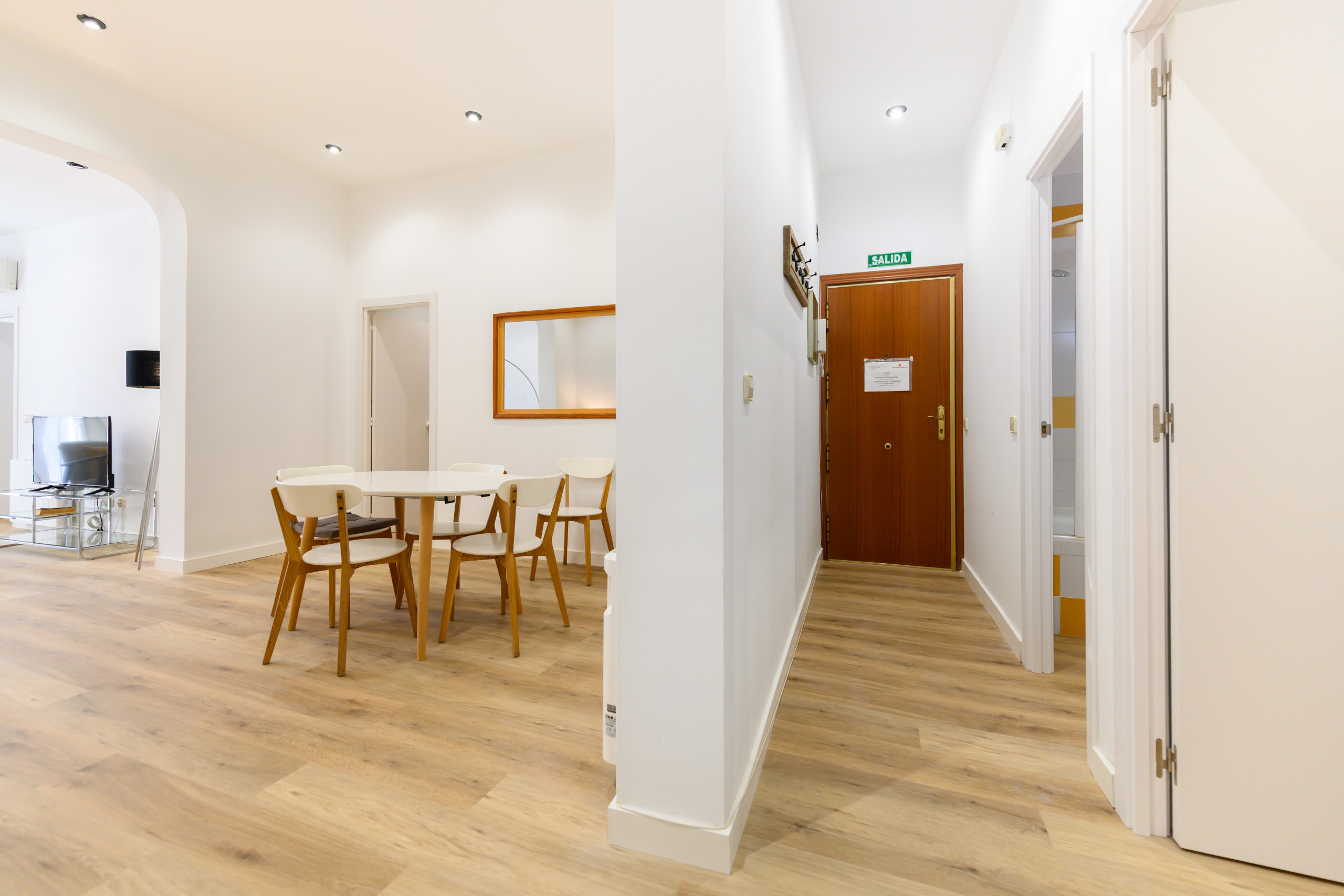 • Spacious and bright living room: Dining table, sofa bed, television, air conditioning, and heating.