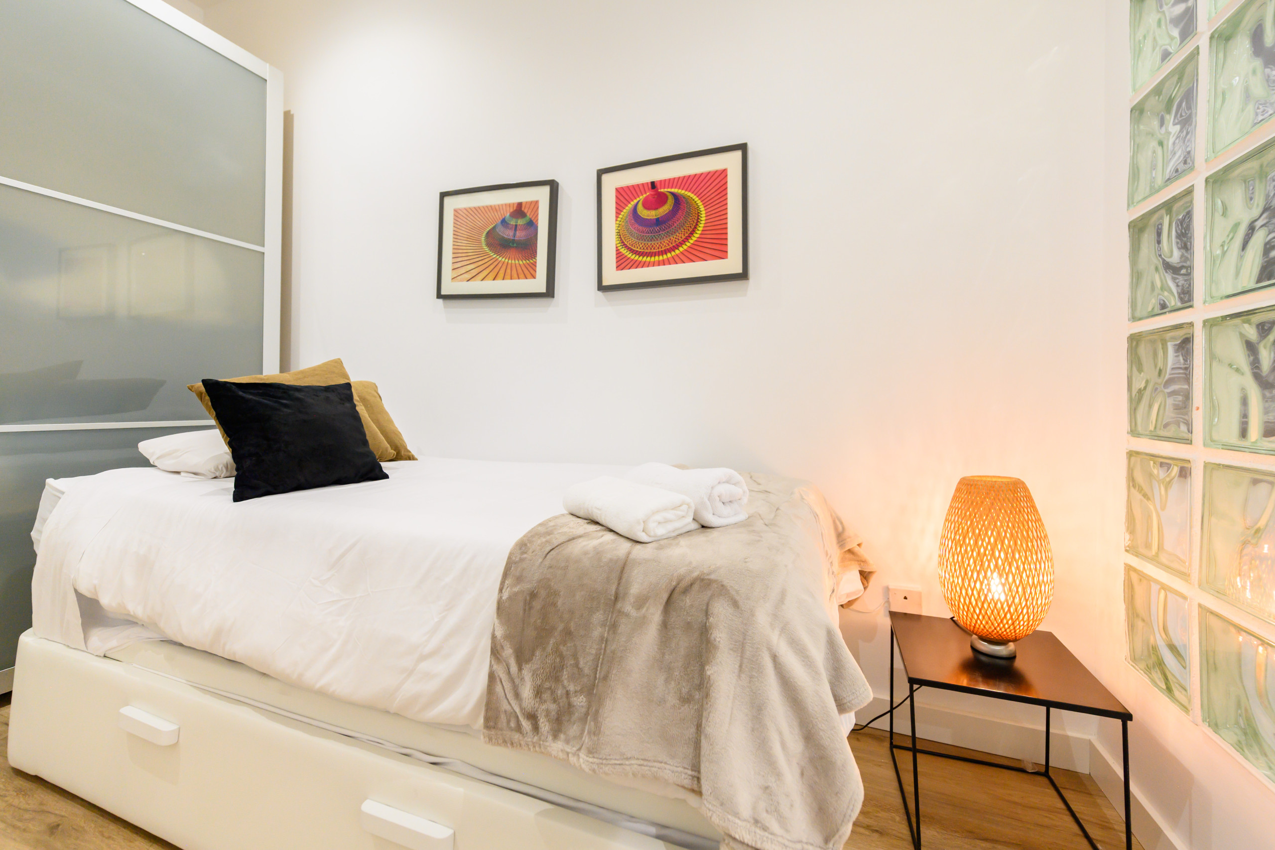 • Bedroom 1: Trundle bed (two single beds) and a large wardrobe.