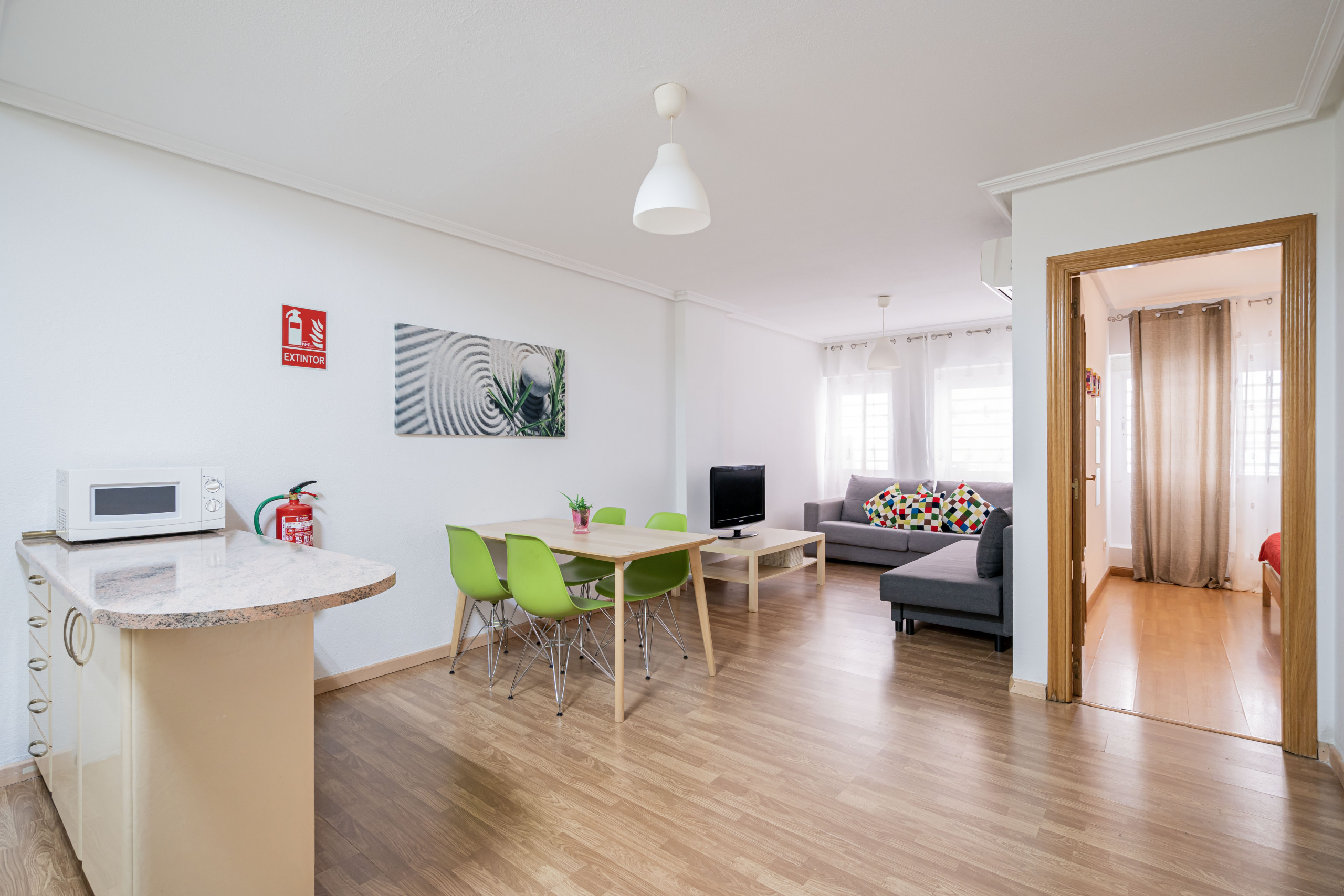 Exterior apartment with great luminosity, both the living room and the main bedroom equipped with large windows, located in a very quiet building and in a neighbourhood with excellent airport connectivity.