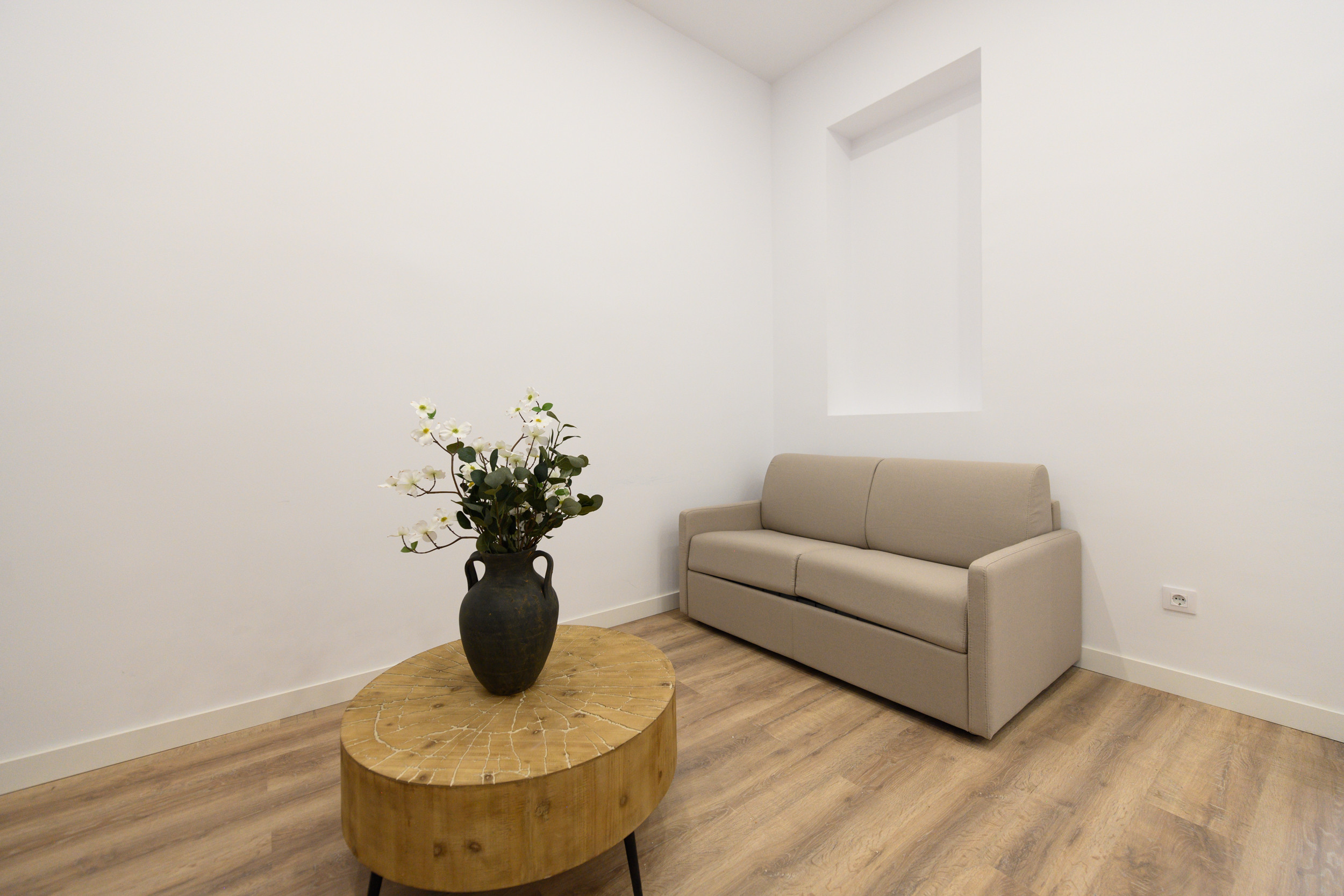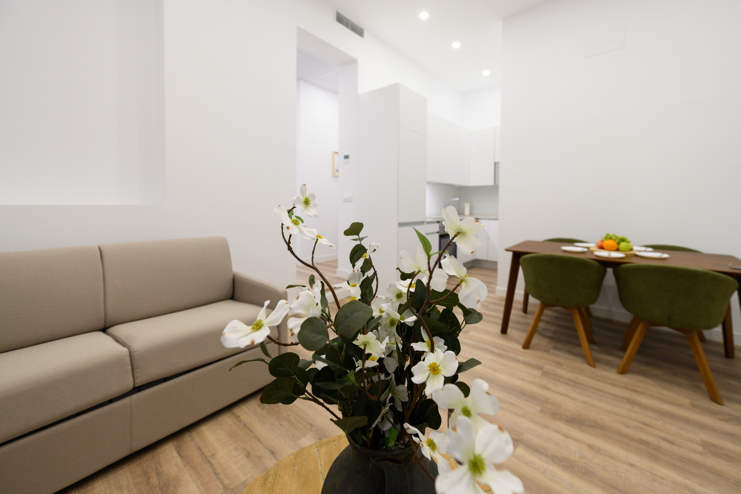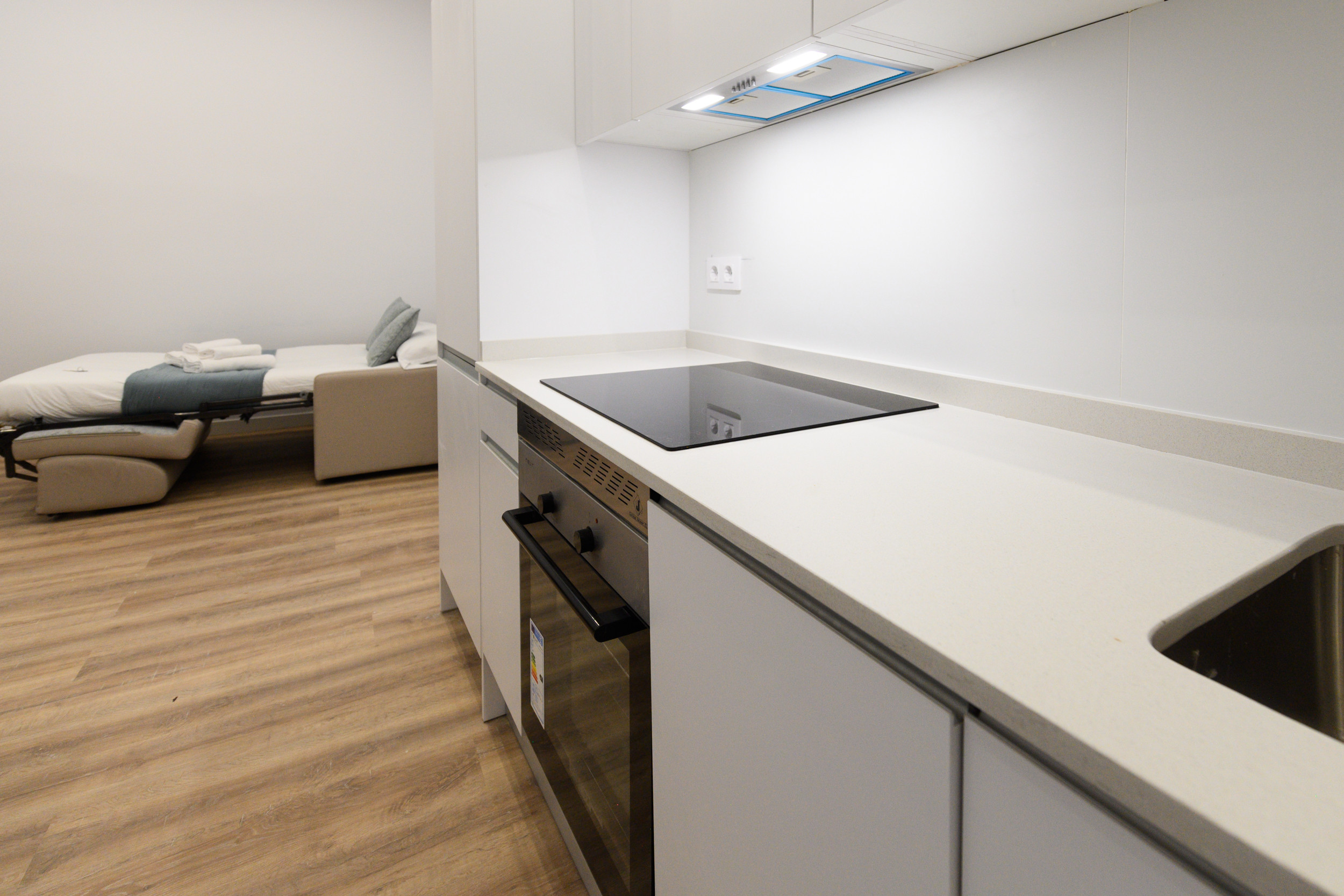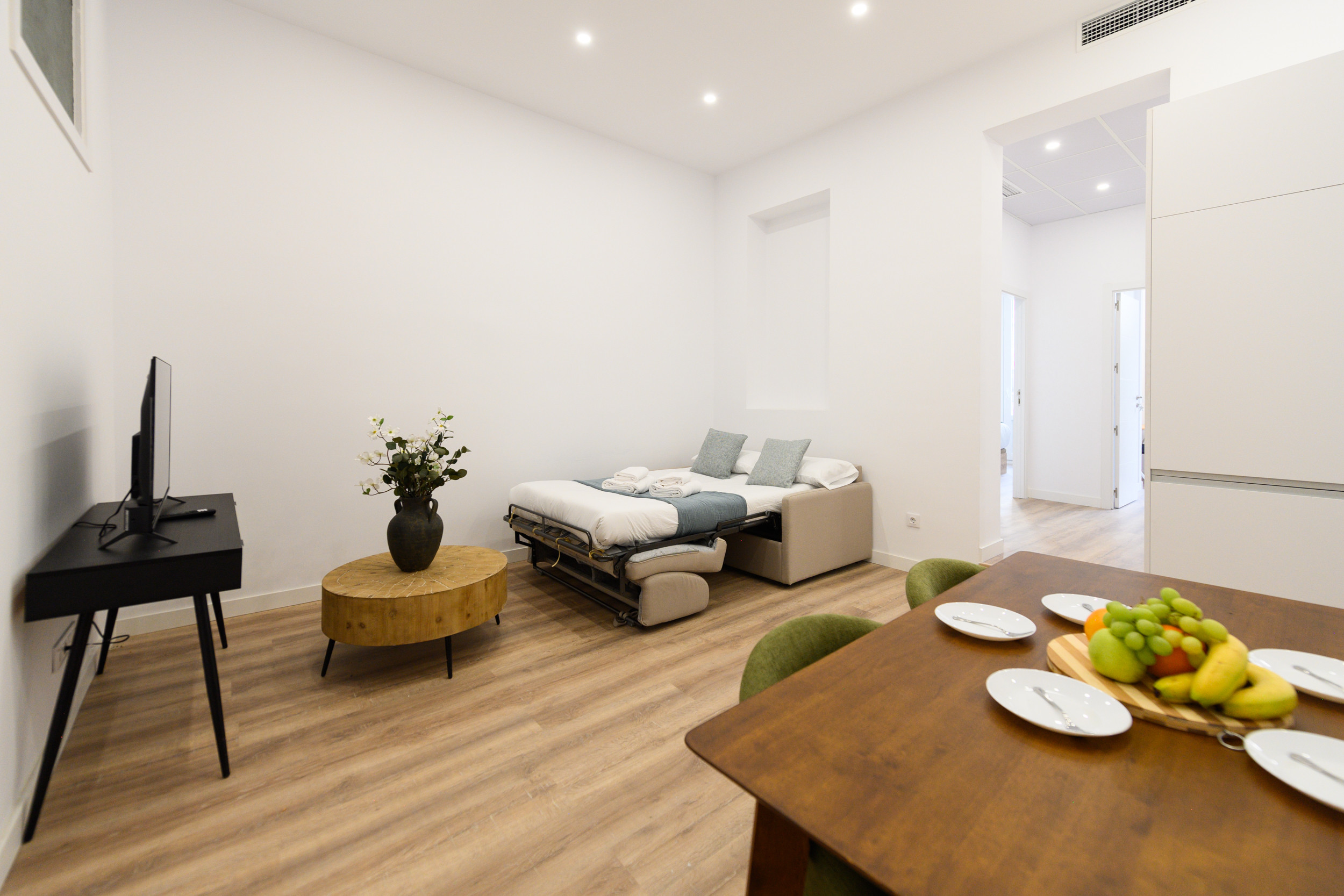 Living room: A large, open and perfectly integrated space, with a sofa bed. This room stands out for its modern and cozy design, designed to become the central place of the home. Its layout allows for the creation of separate areas for relaxation, entertainment and family gatherings.