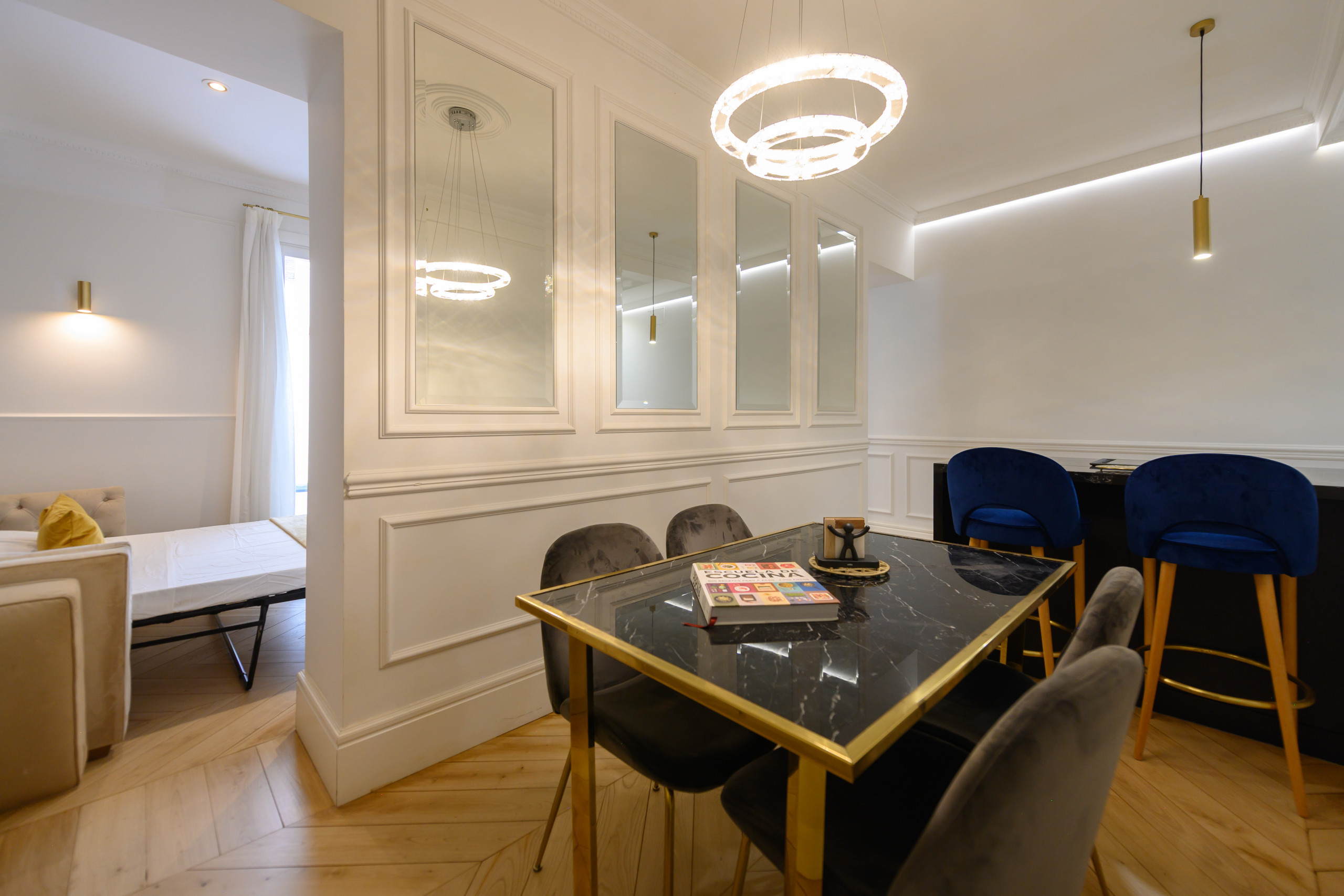 Temporary Rental Flat. Enjoy a unique experience in this elegant flat located in one of Madrid's most exclusive areas: the Salamanca Neighbourhood. This accommodation has been designed with a modern and sophisticated style, ideal for those seeking comfort, design, and an unbeatable location.