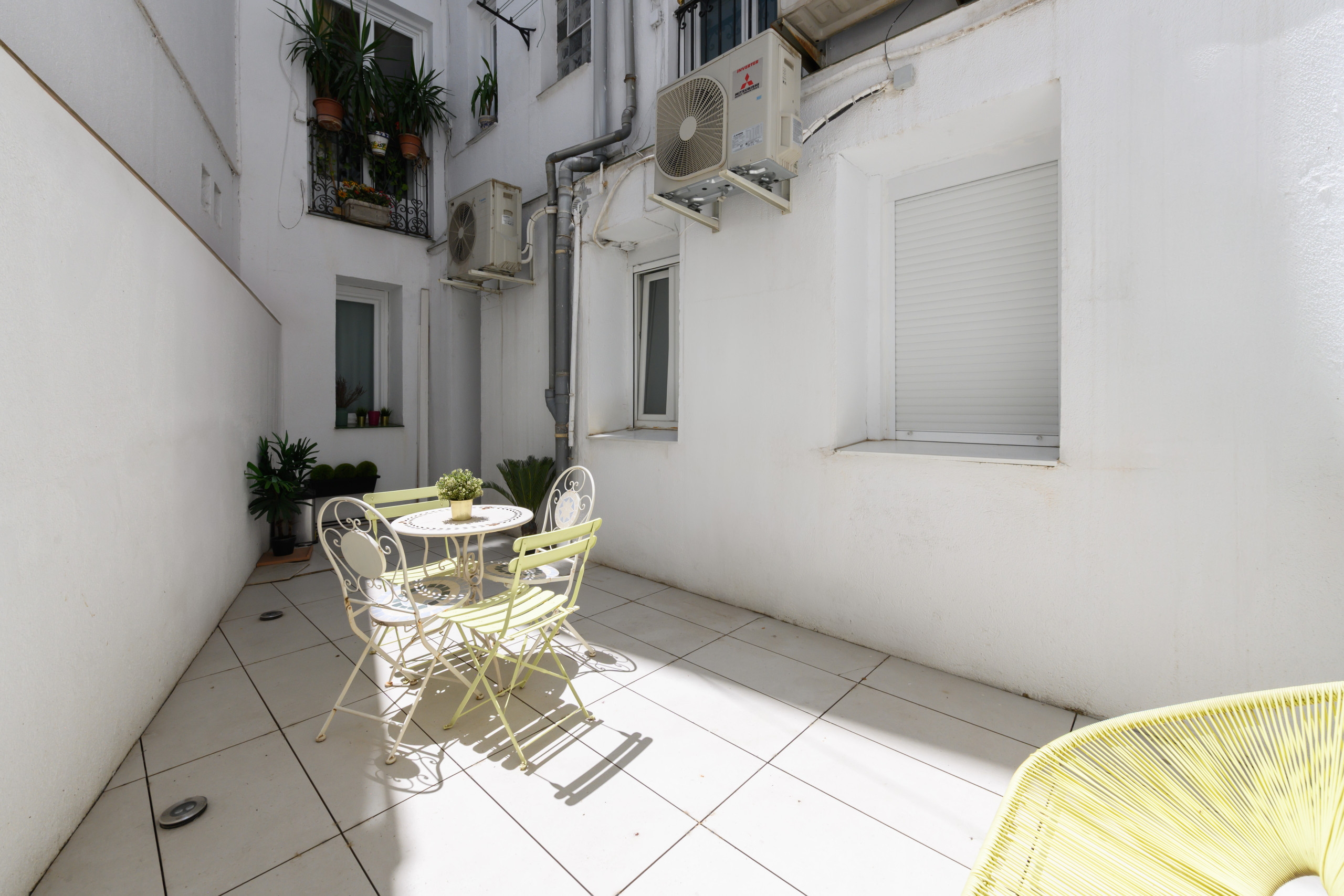 This apartment has a patio, outdoors, to have a glass of wine at sunset or simply disconnect after a day in the city. An oasis of tranquillity in the heart of the urban centre.
