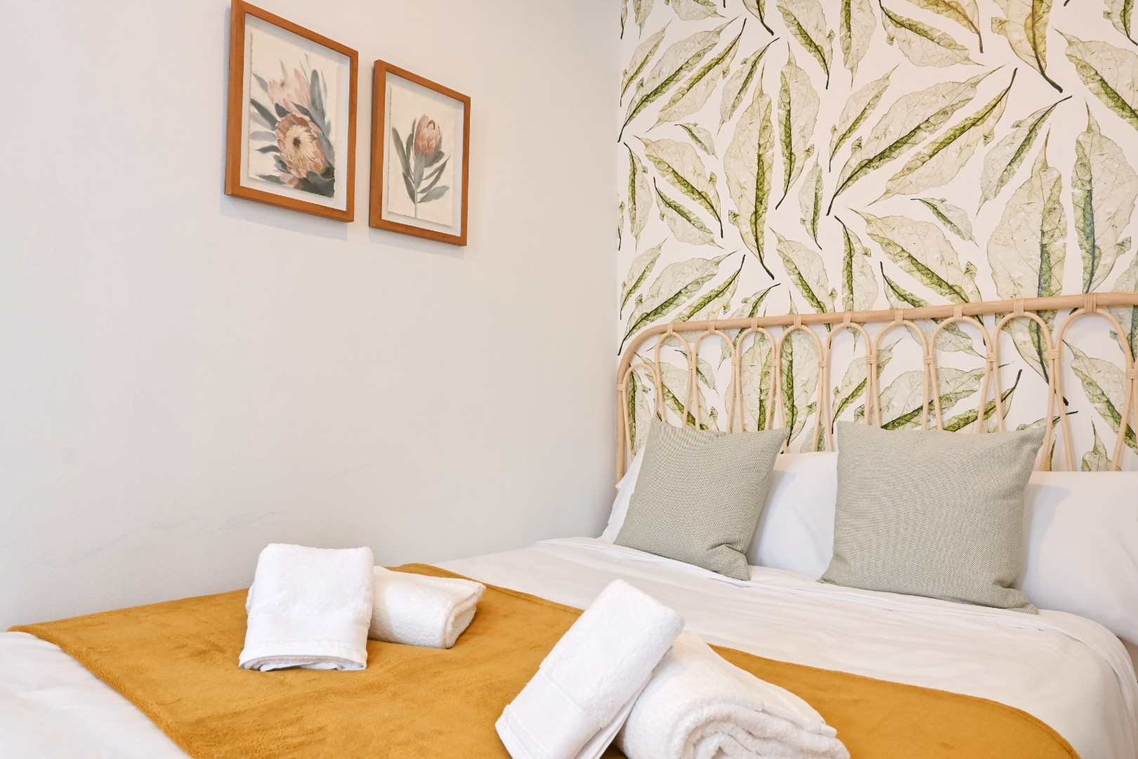 The two bedrooms are carefully decorated with comfortable furniture. The comfortable double beds are dressed with bedding.