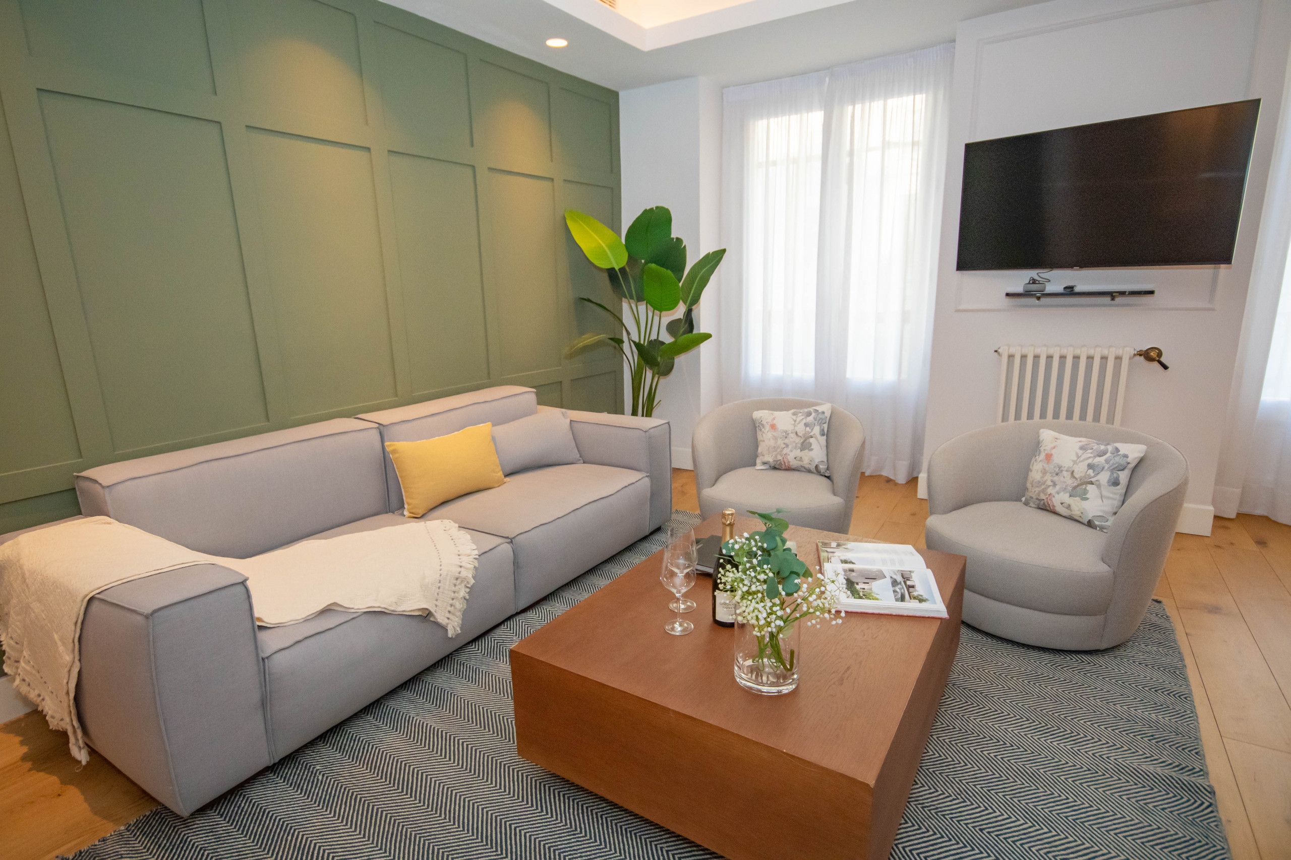 When you enter the apartment, you will be amazed at the amount of natural light that fills the entire space. The large windows allow sunlight to illuminate every corner, creating a warm and welcoming atmosphere. In addition, you can enjoy views from the balconies towards Calle Alcalá, where you can contemplate the Puerta del Sol and the Fuente de Cibeles.