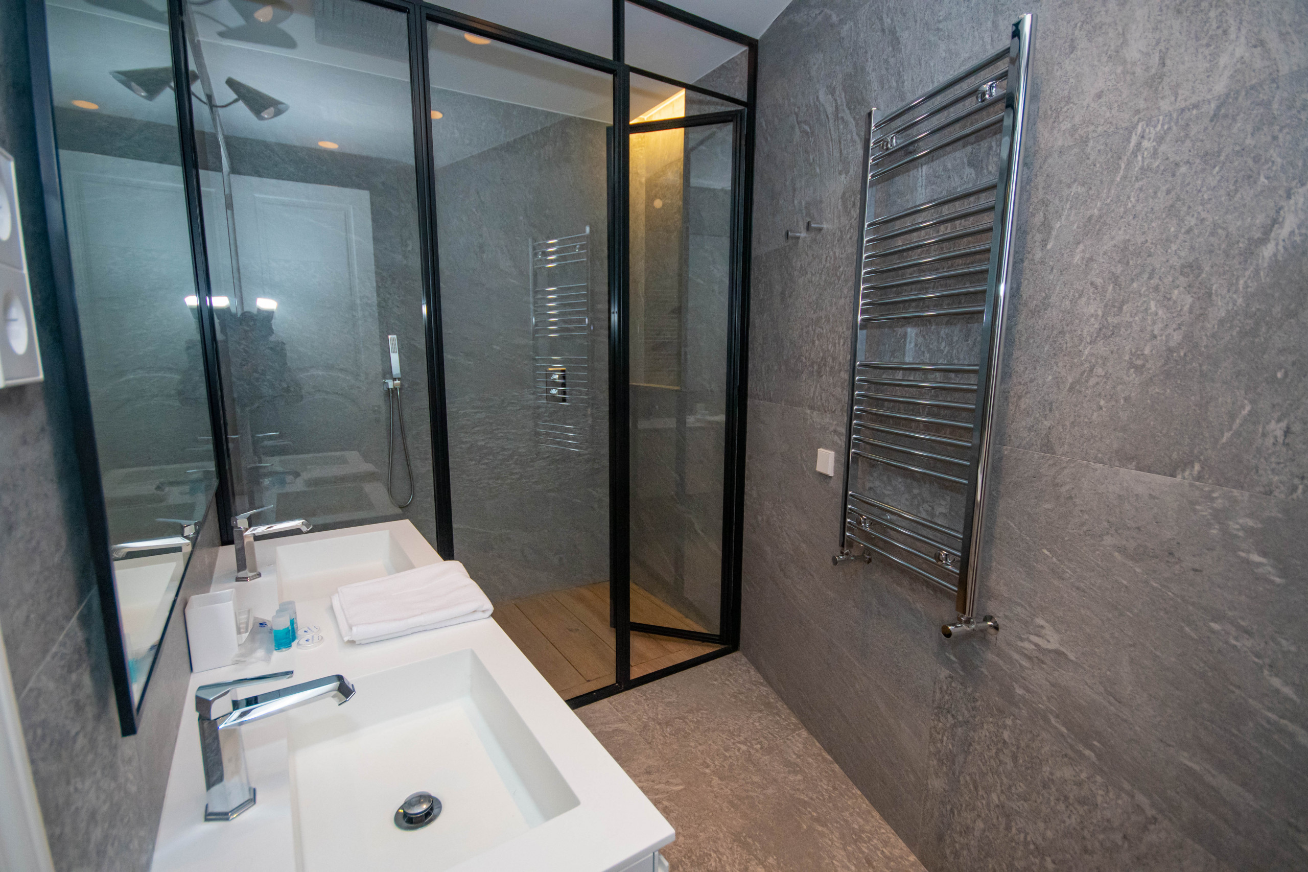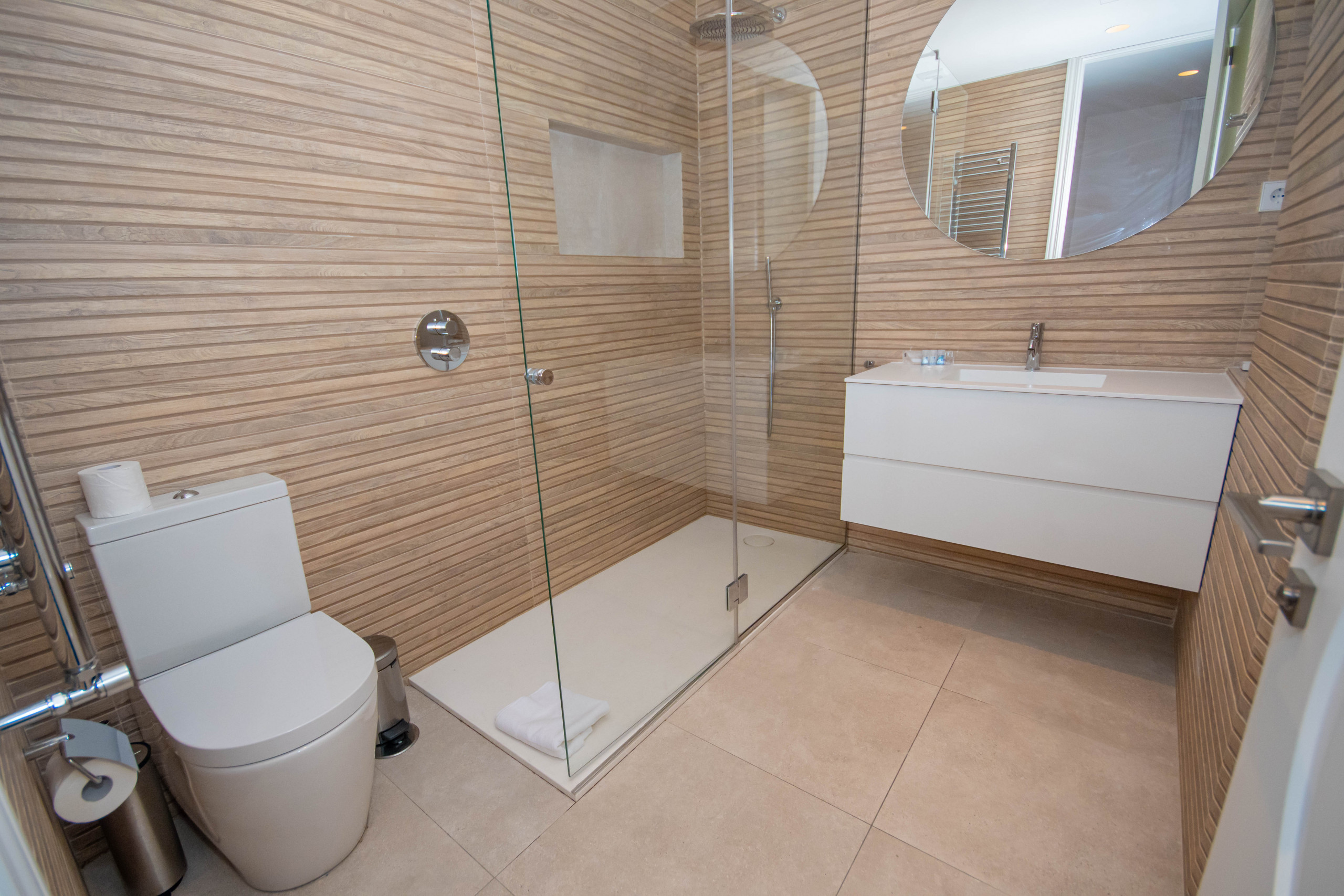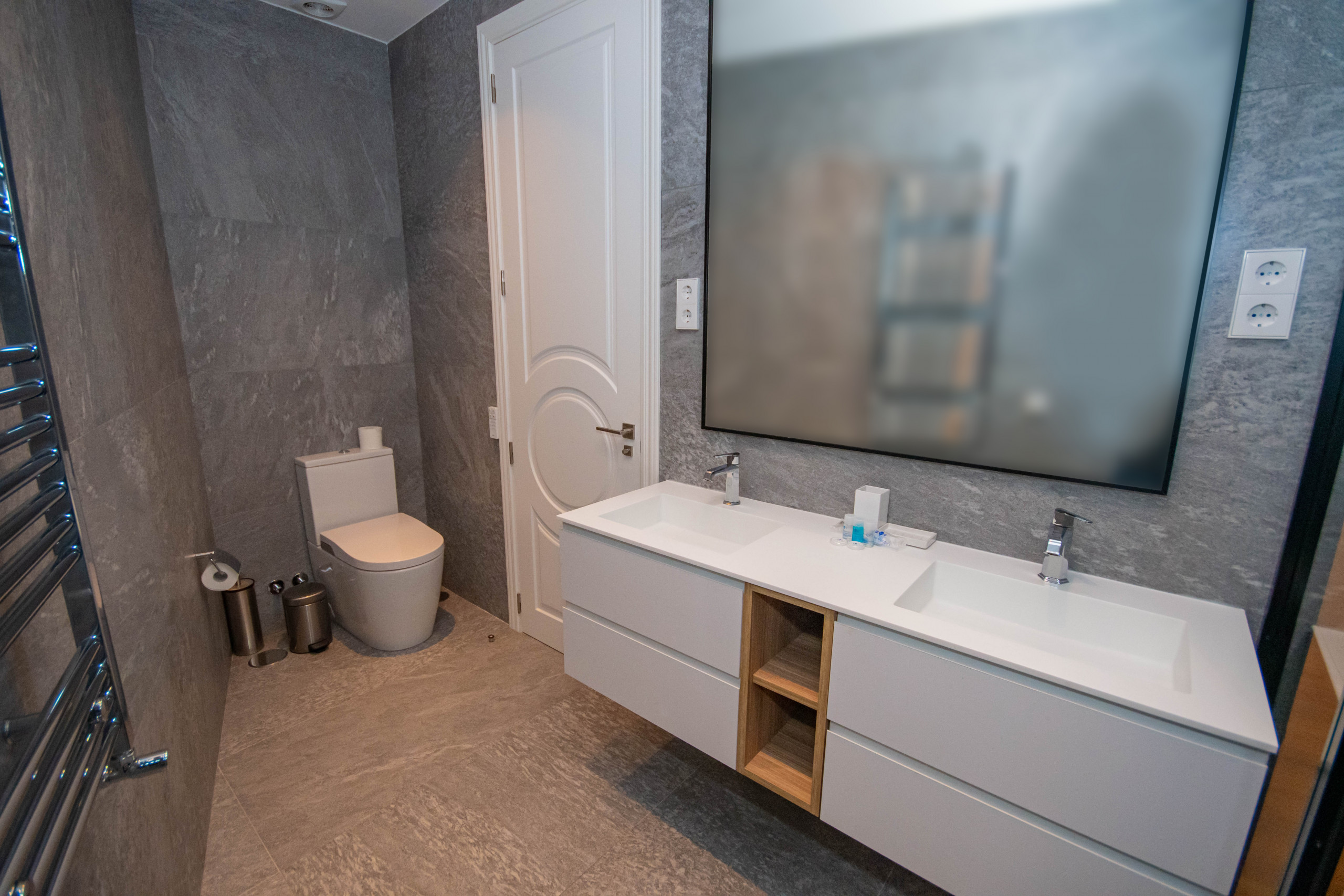 The apartment has two bathrooms, one of them en suite, which provides greater comfort and privacy. The bathrooms are equipped with all the necessary amenities, such as showers, sinks and vanities, to ensure you a pleasant experience during your stay. One being equipped with a Japanese toilet.